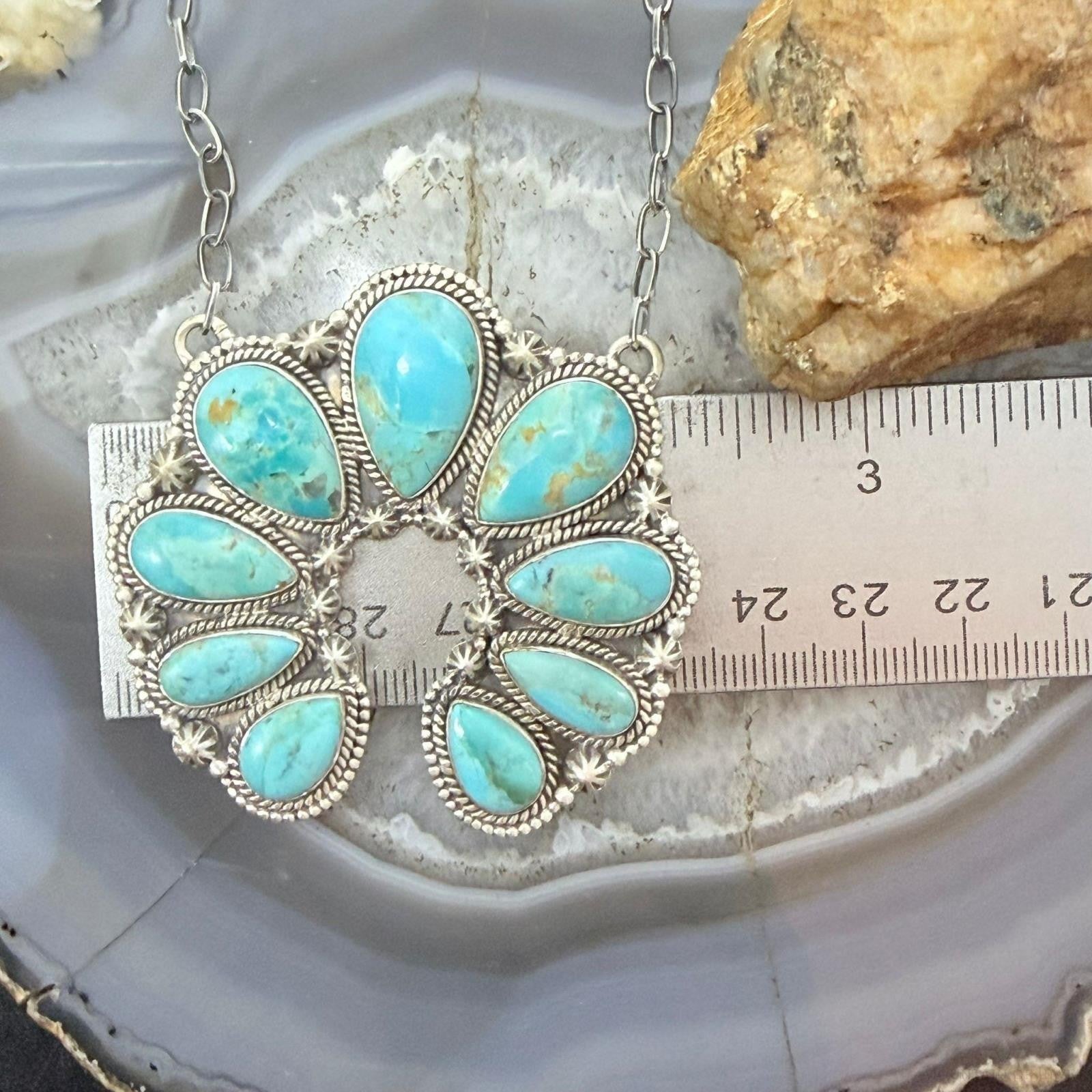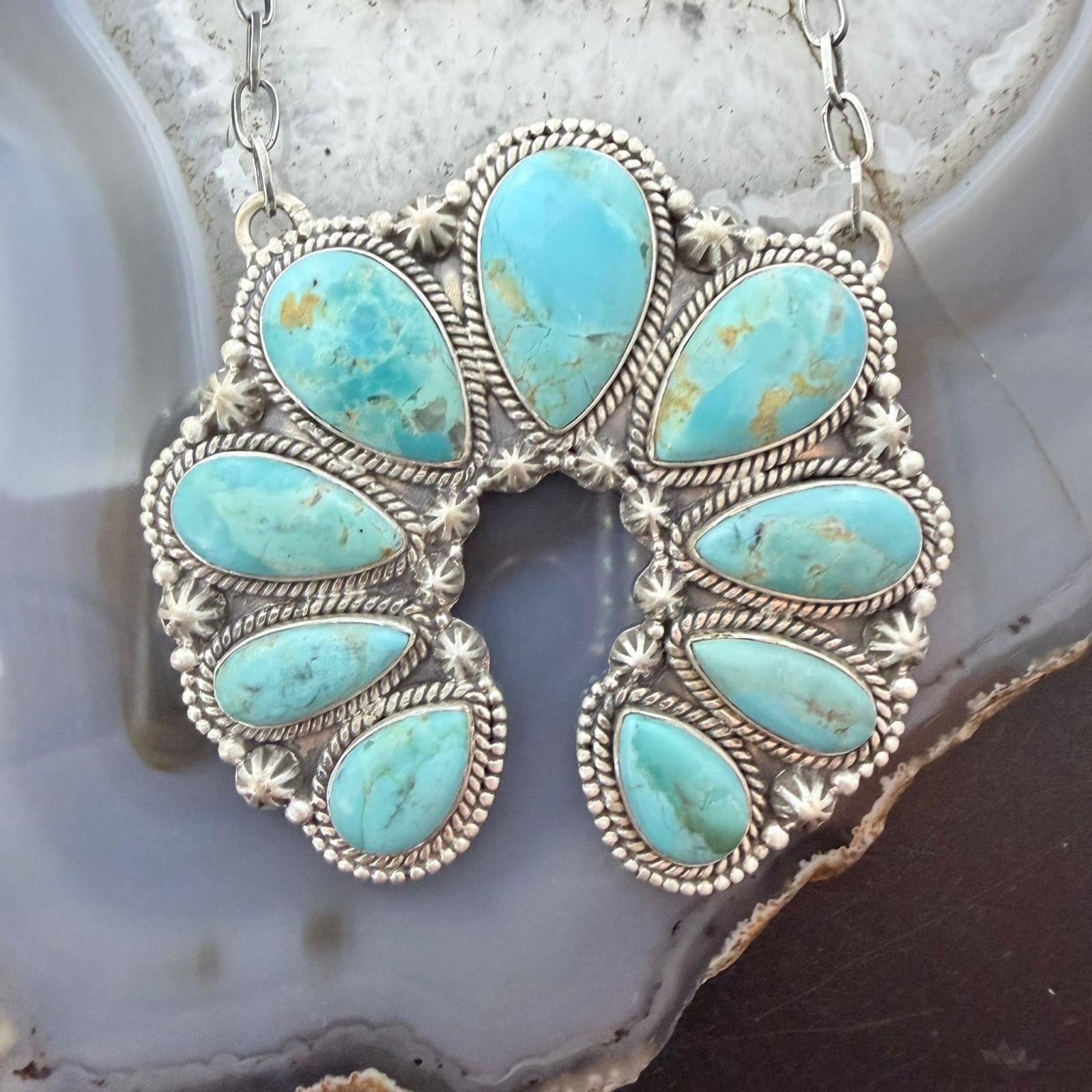 Sterling Silver Southwestern Style Teardrop Graduated Turquoise Naja Necklace For Women