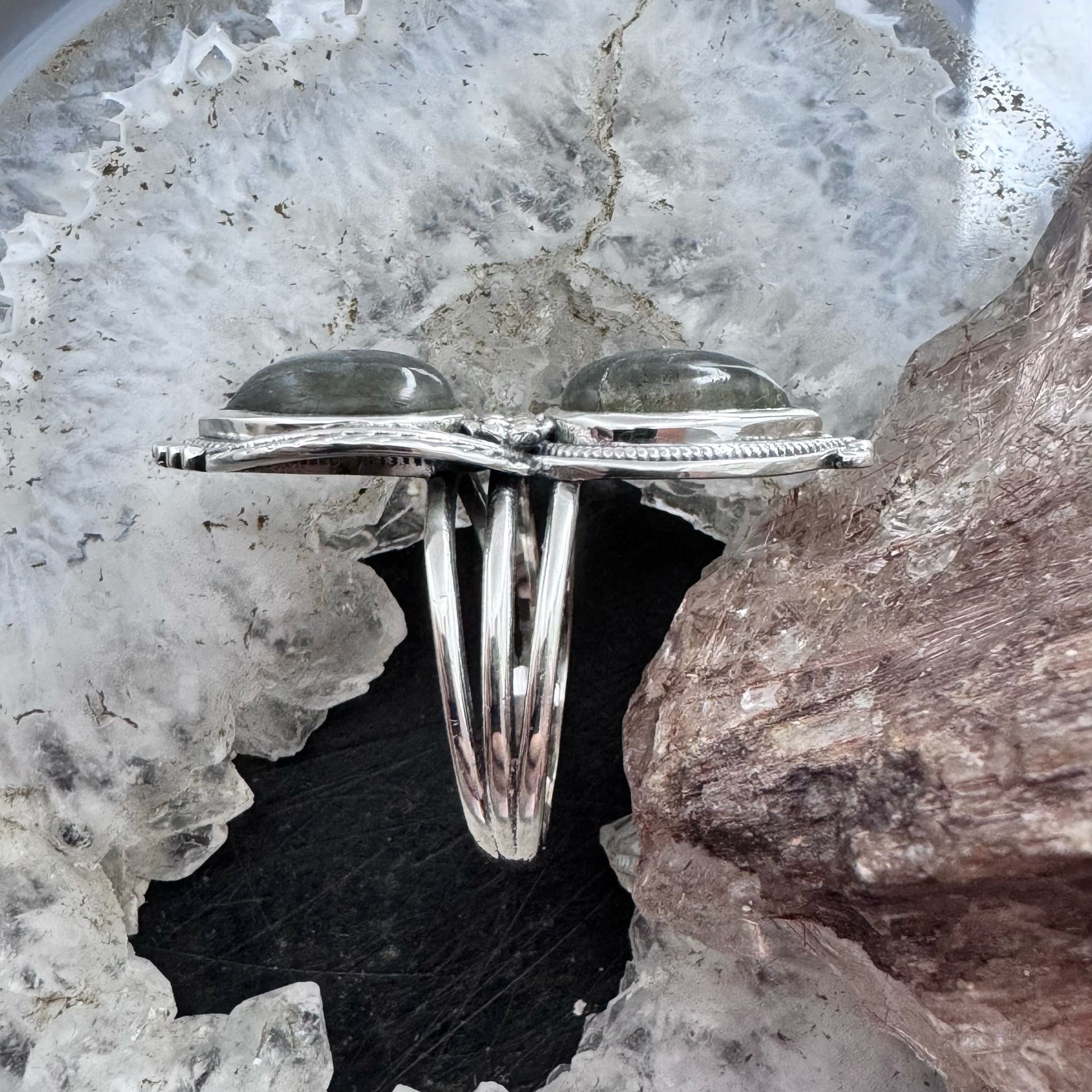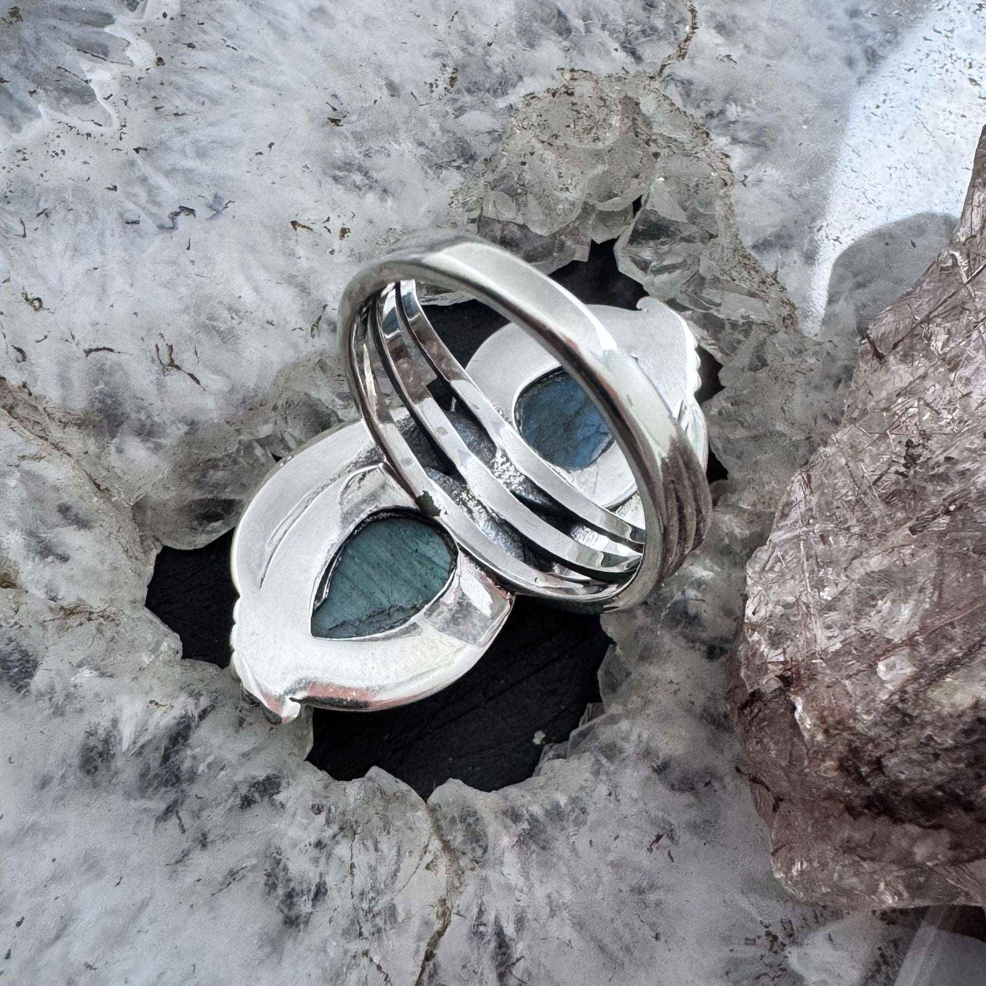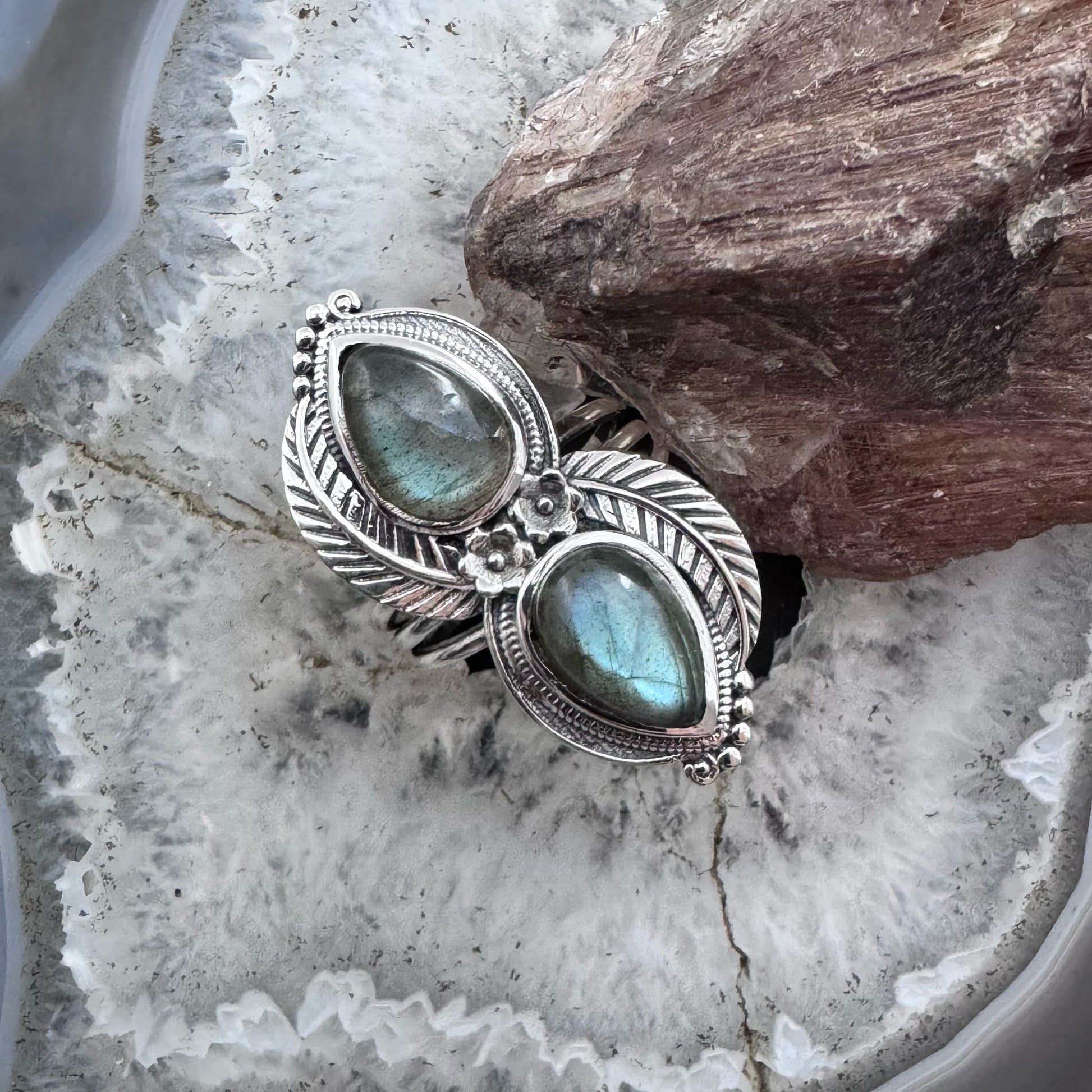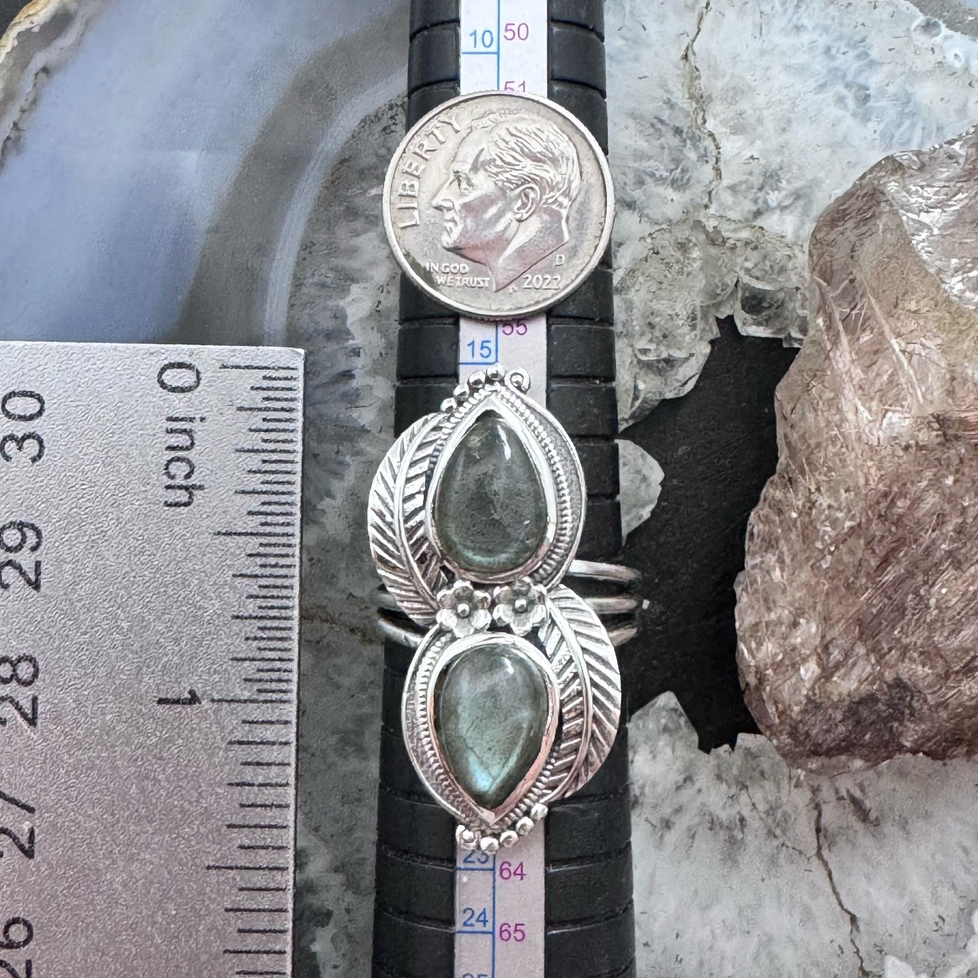 Sterling Southwestern Style Teardrop Labradorite Leaves Decorated Ring For Women