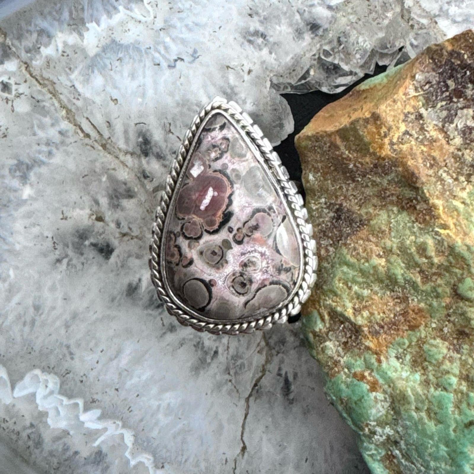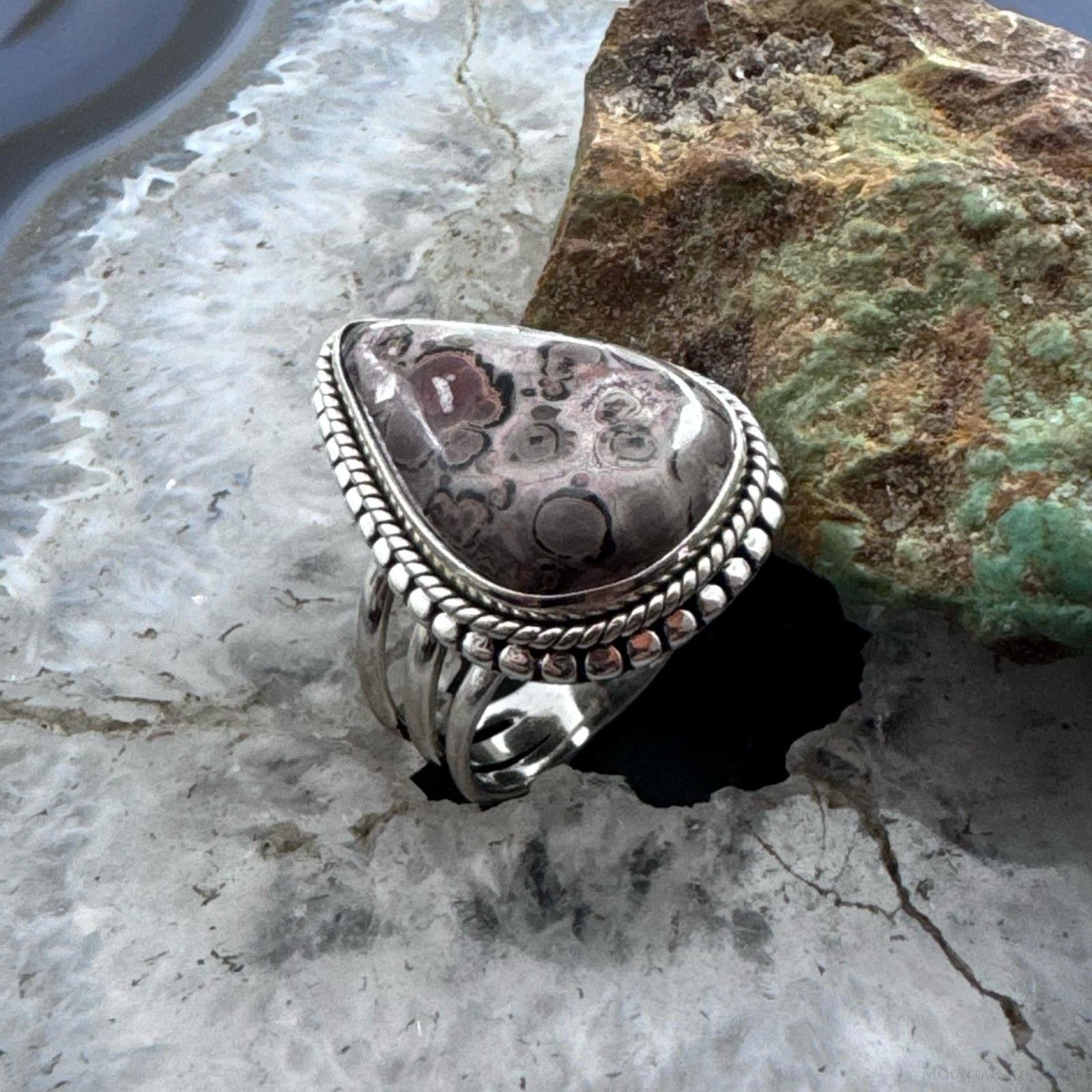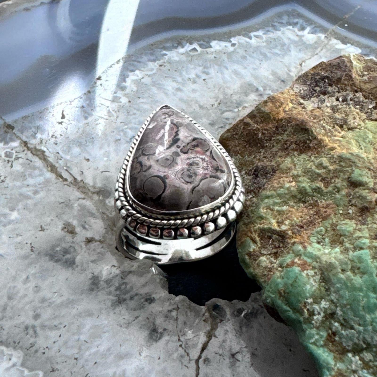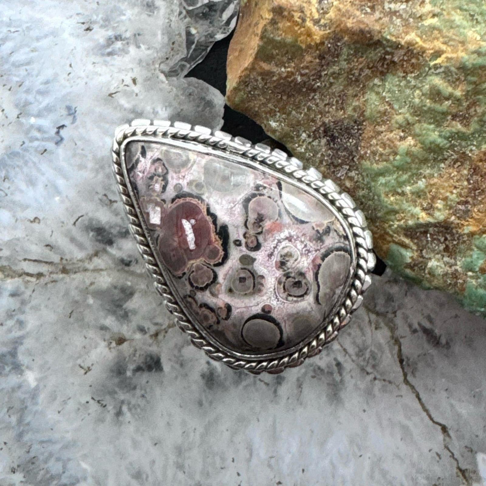 Sterling Southwestern Style Teardrop Leopard Skin Jasper Ring Size 7.75 For Women