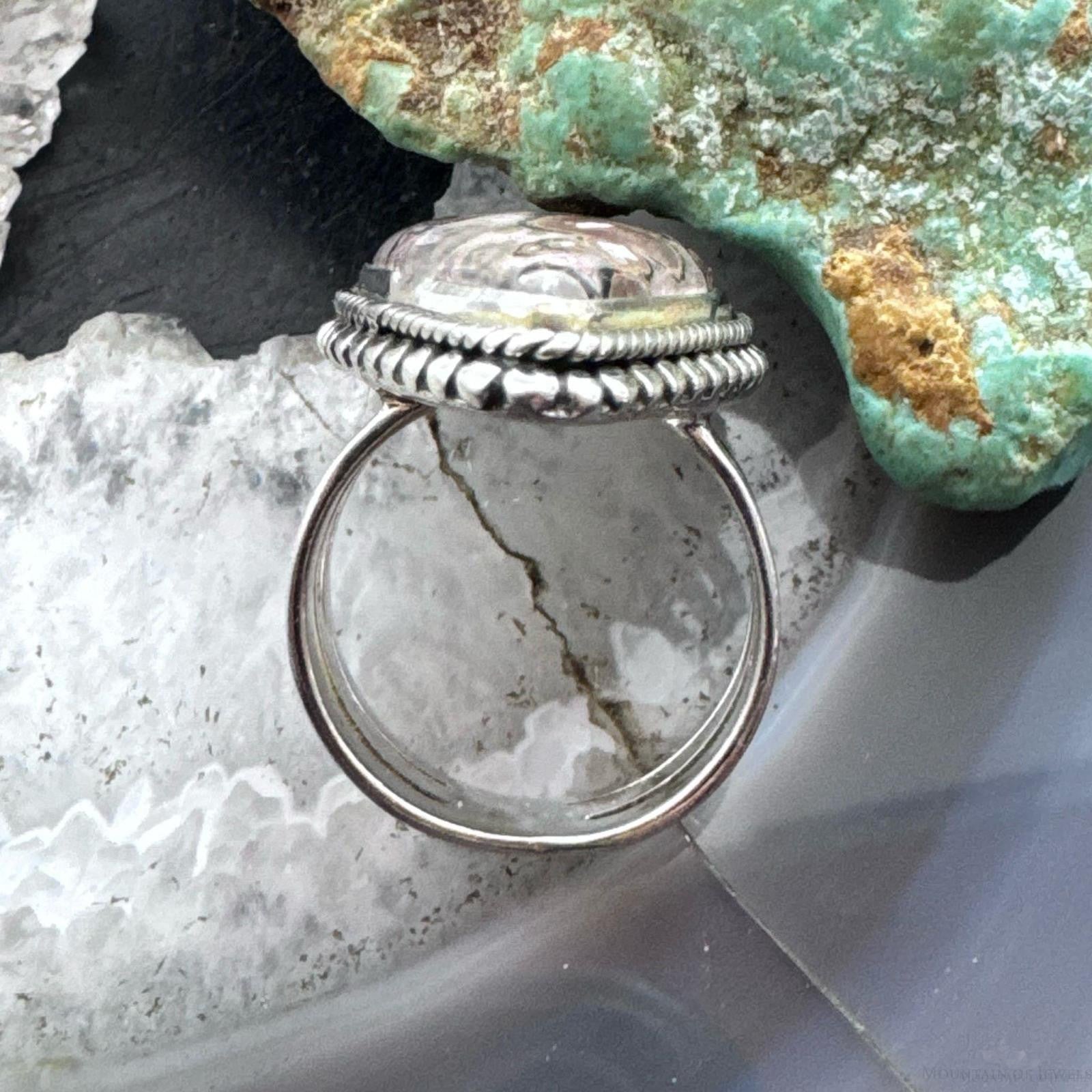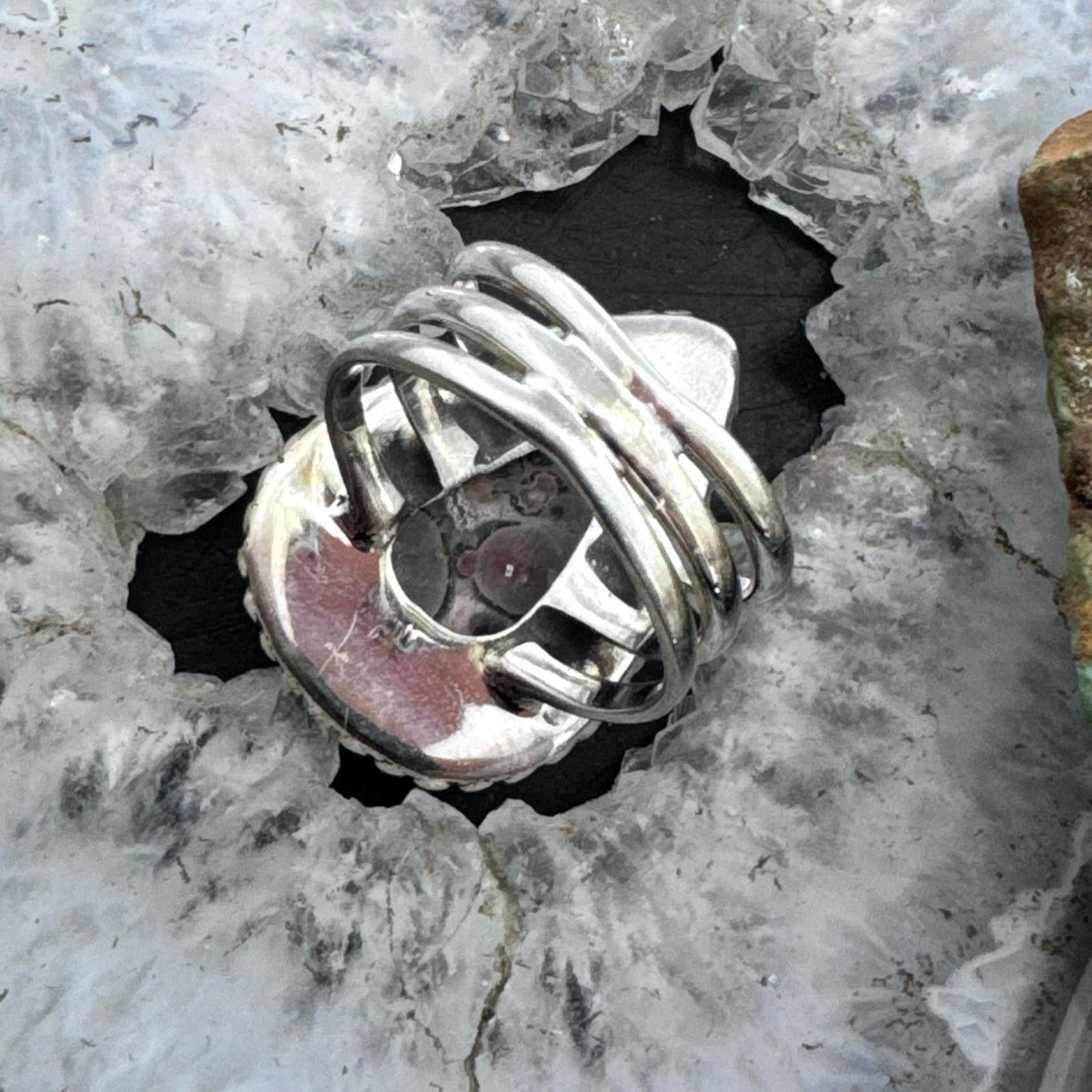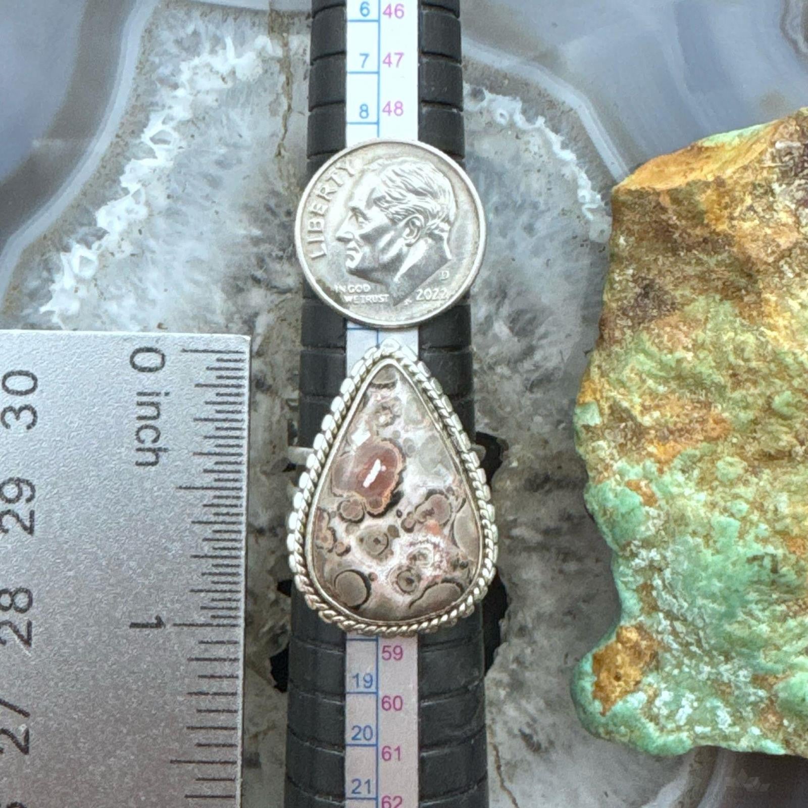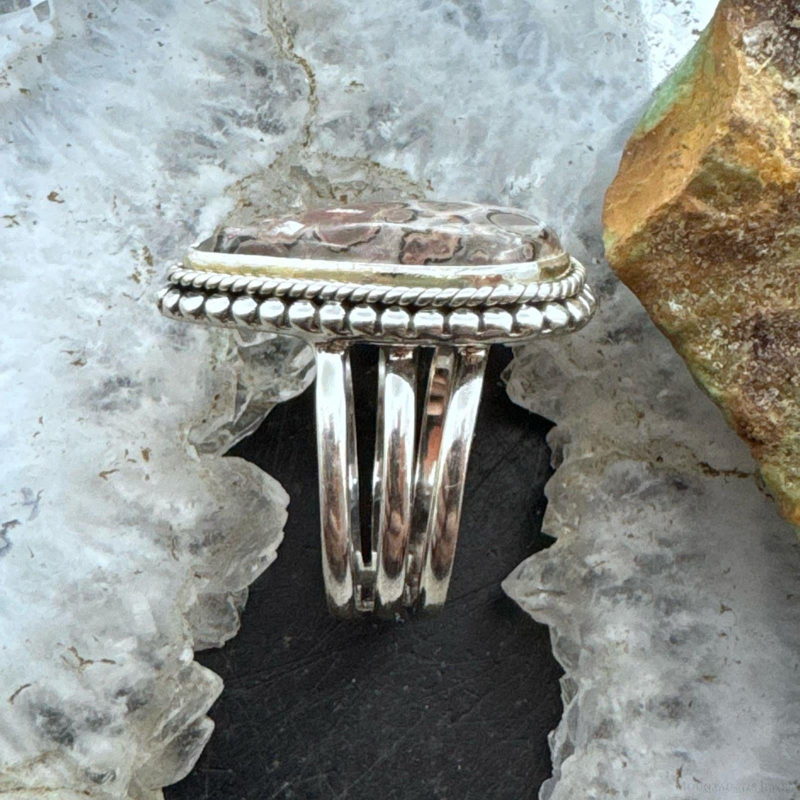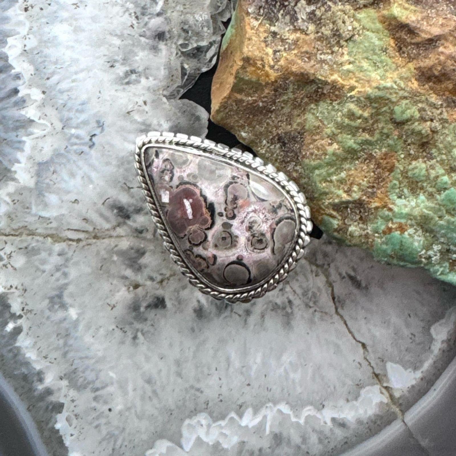 Sterling Southwestern Style Teardrop Leopard Skin Jasper Ring Size 7.75 For Women