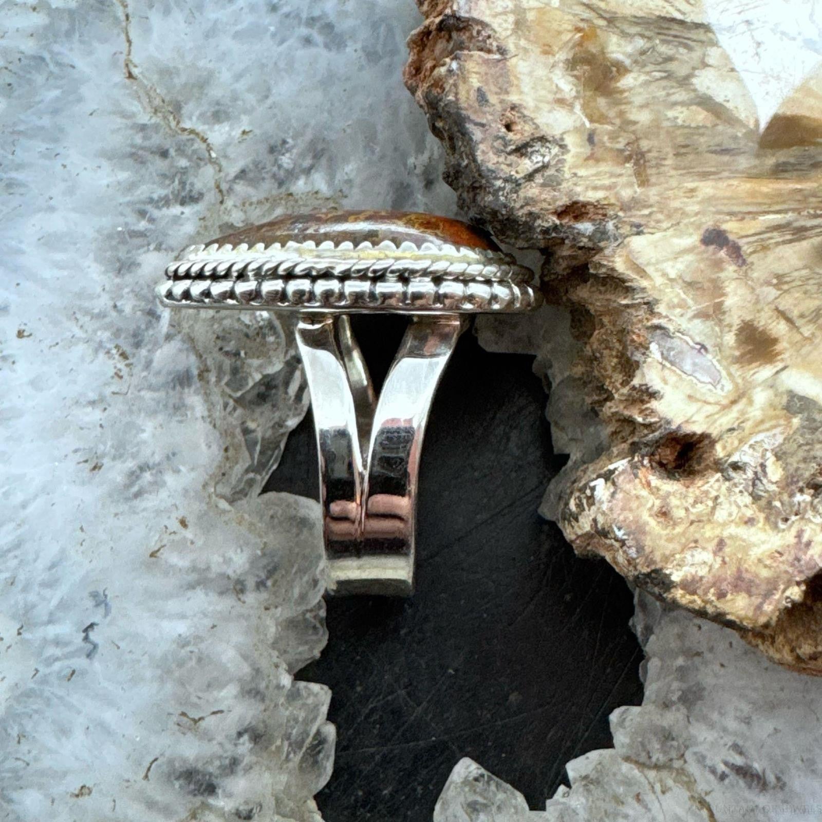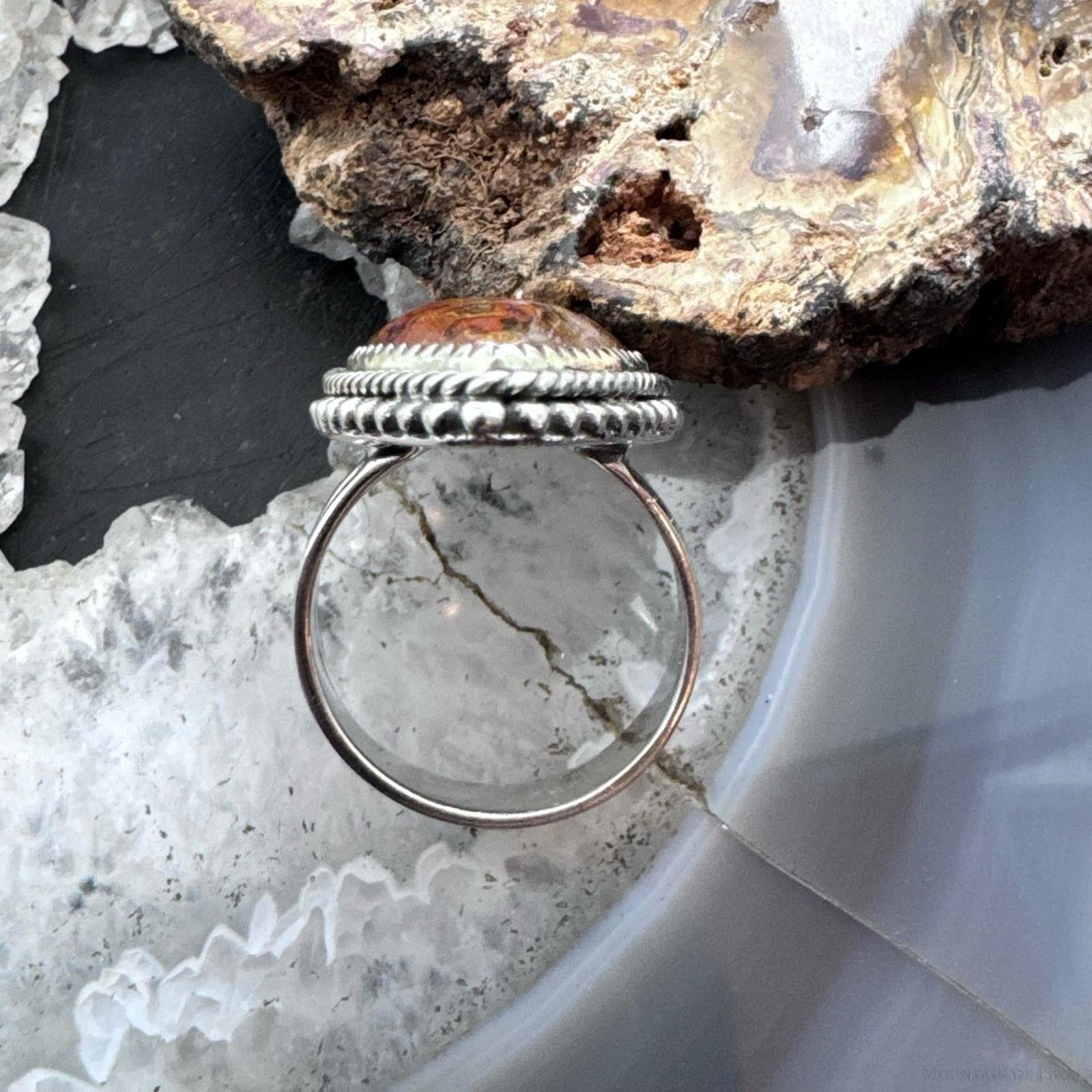 Sterling Southwestern Style Teardrop Moroccan Seam Agate Ring Size 7.75 For Women