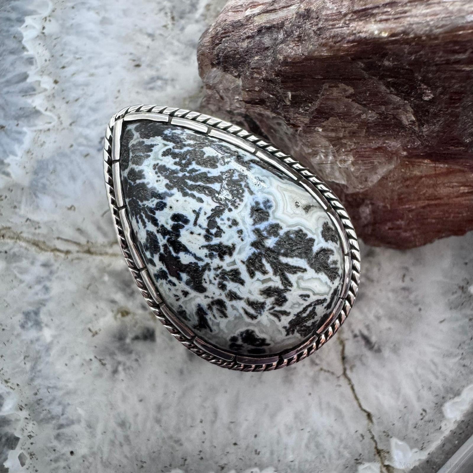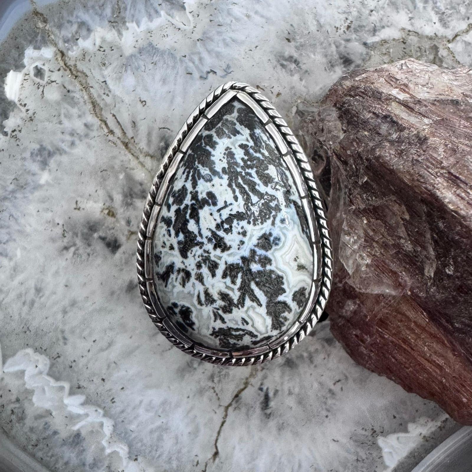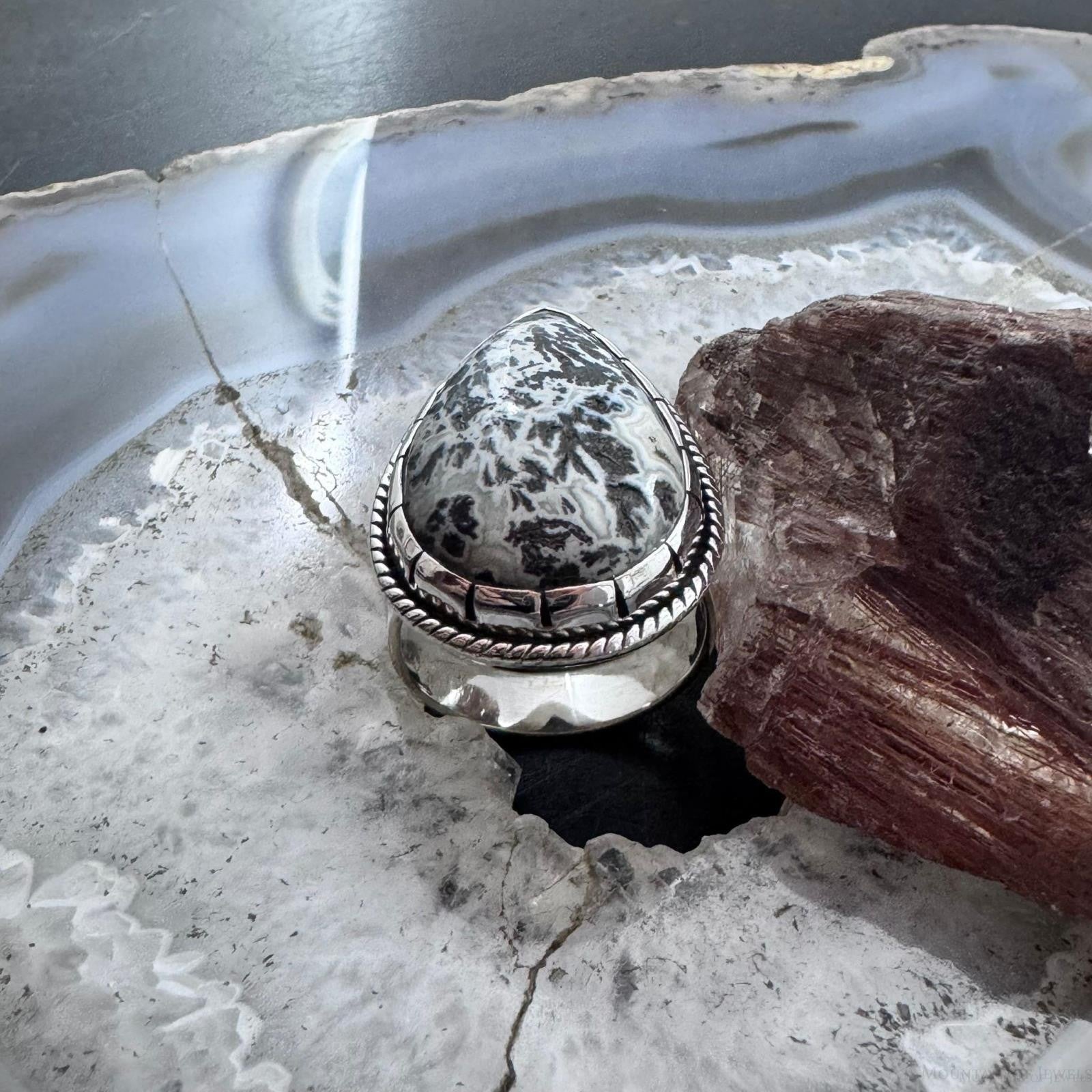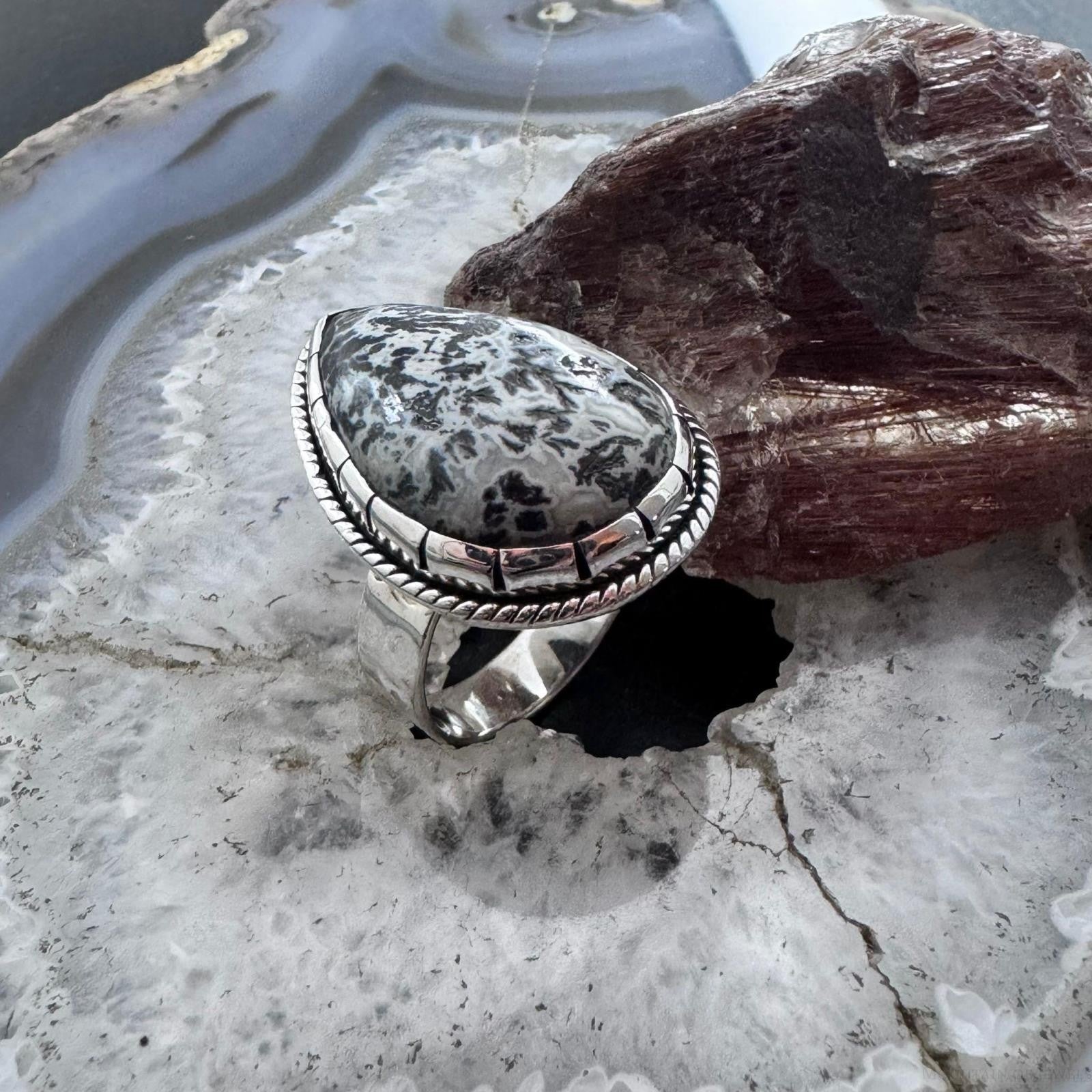 Sterling Silver Southwestern Style Teardrop Parral Dendritic Decorated Ring Size 10 For Women