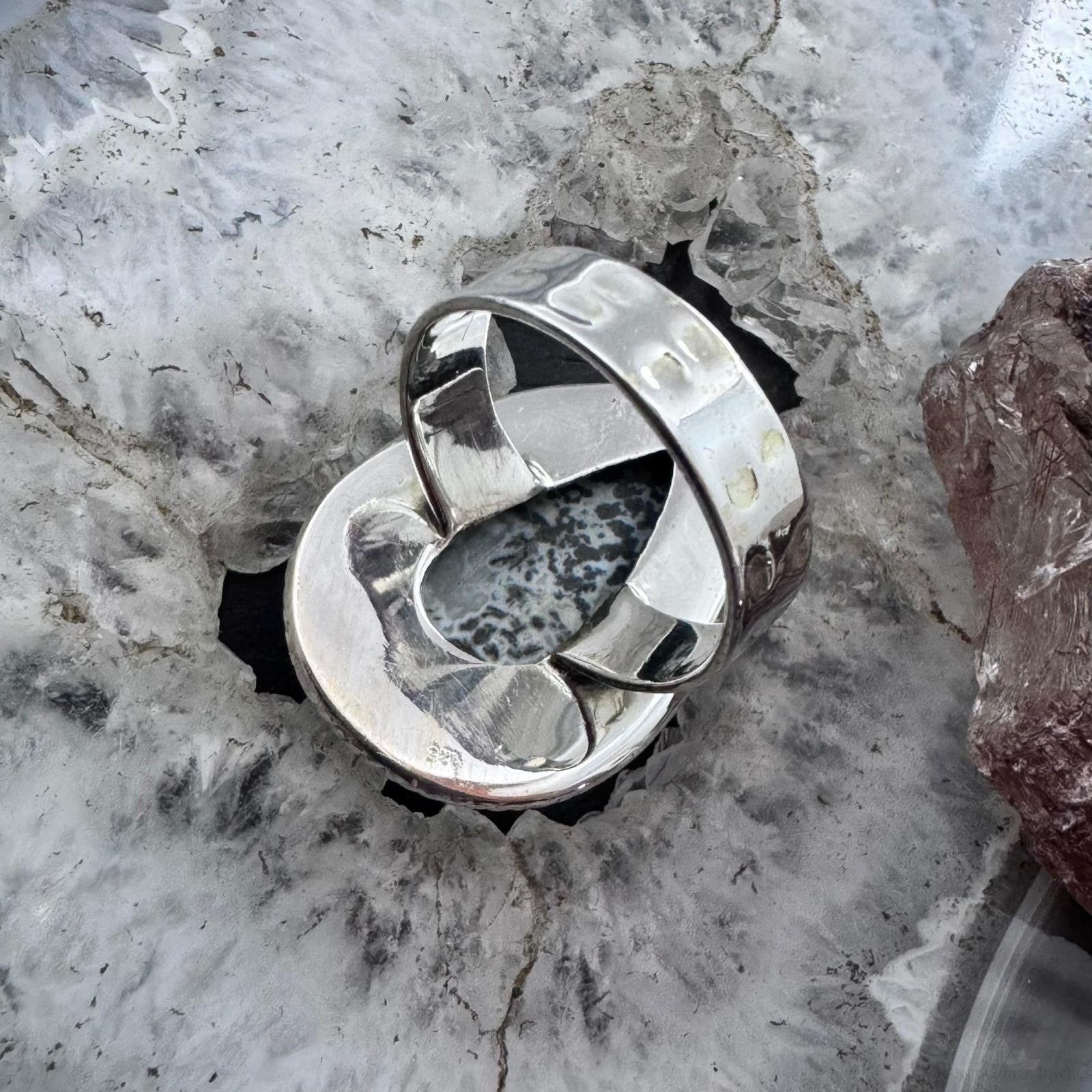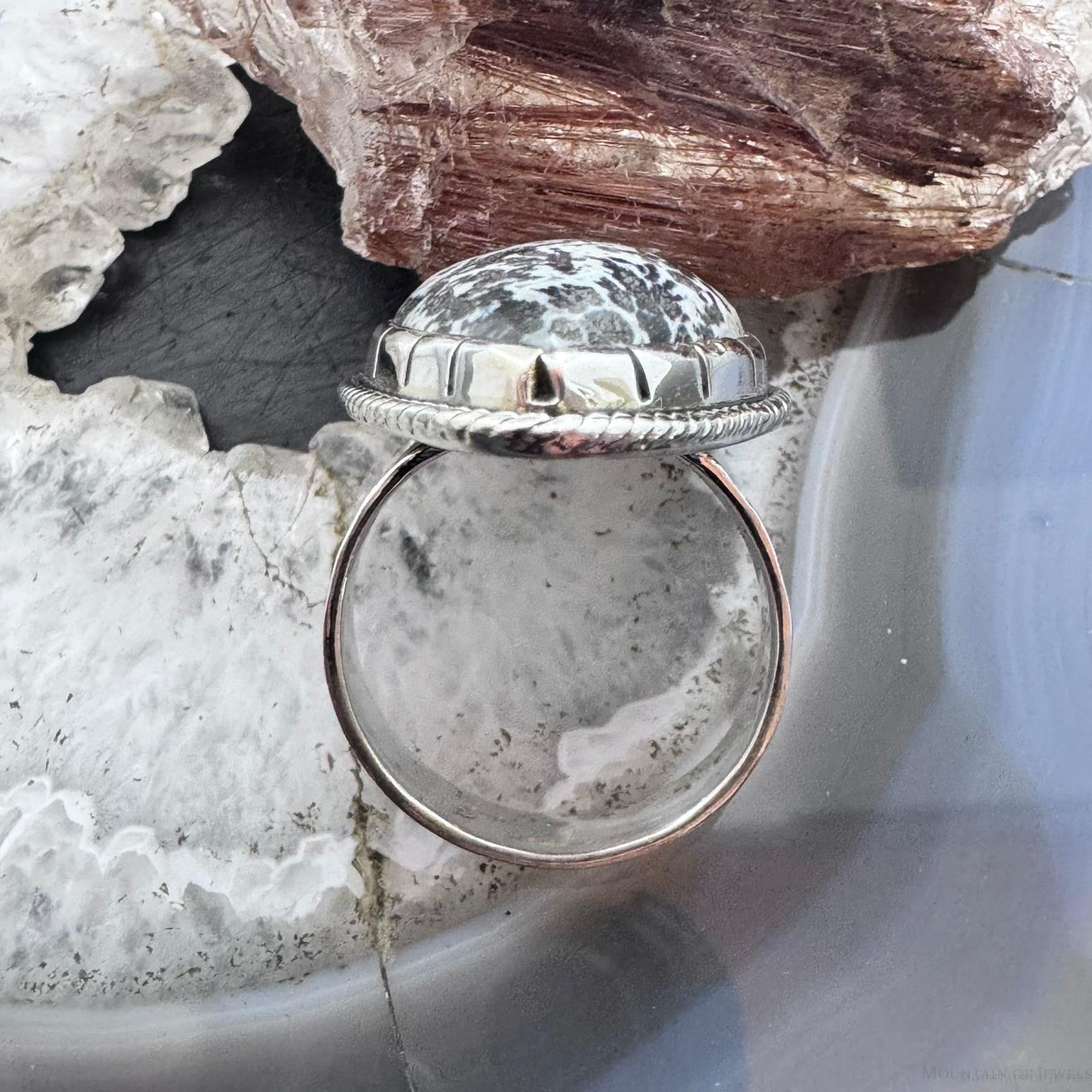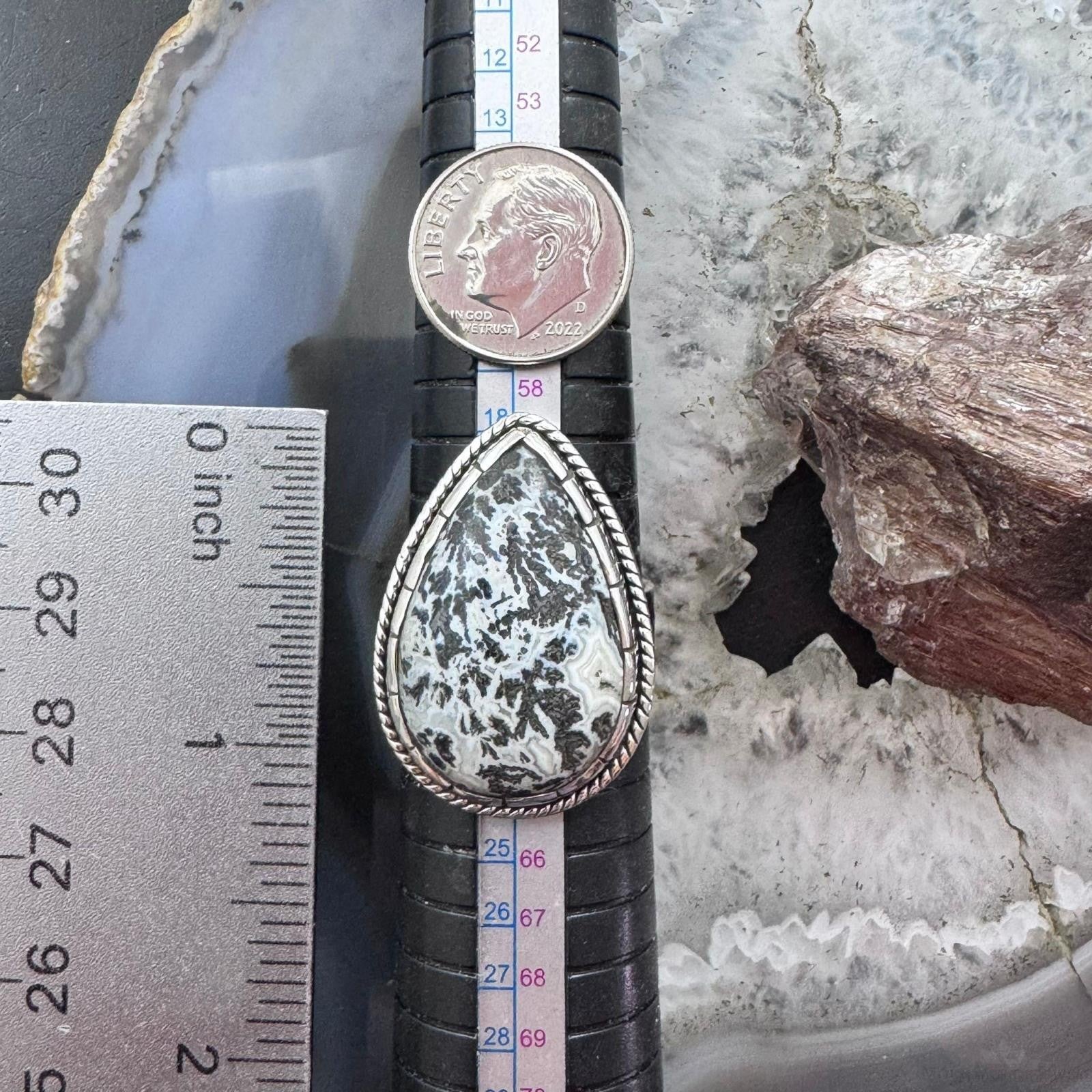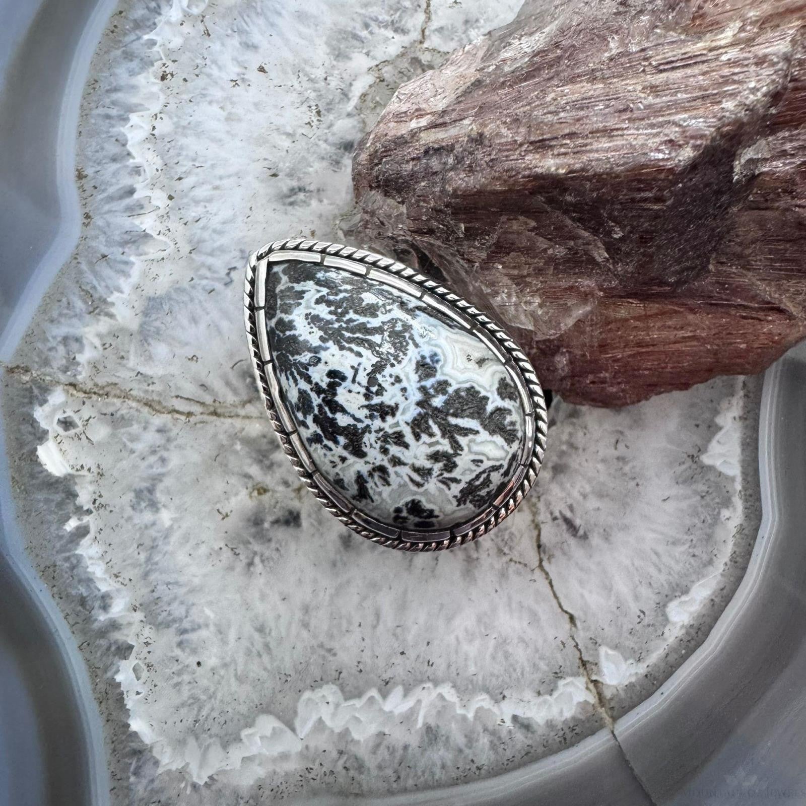 Sterling Silver Southwestern Style Teardrop Parral Dendritic Decorated Ring Size 10 For Women