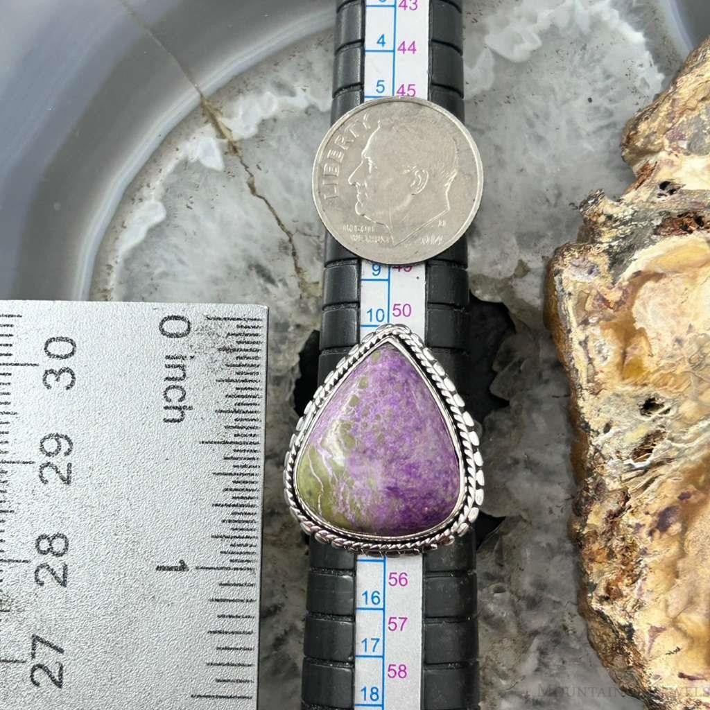 Sterling Silver Southwestern Style Teardrop Stichtite Decorated Ring Size 6.75 For Women