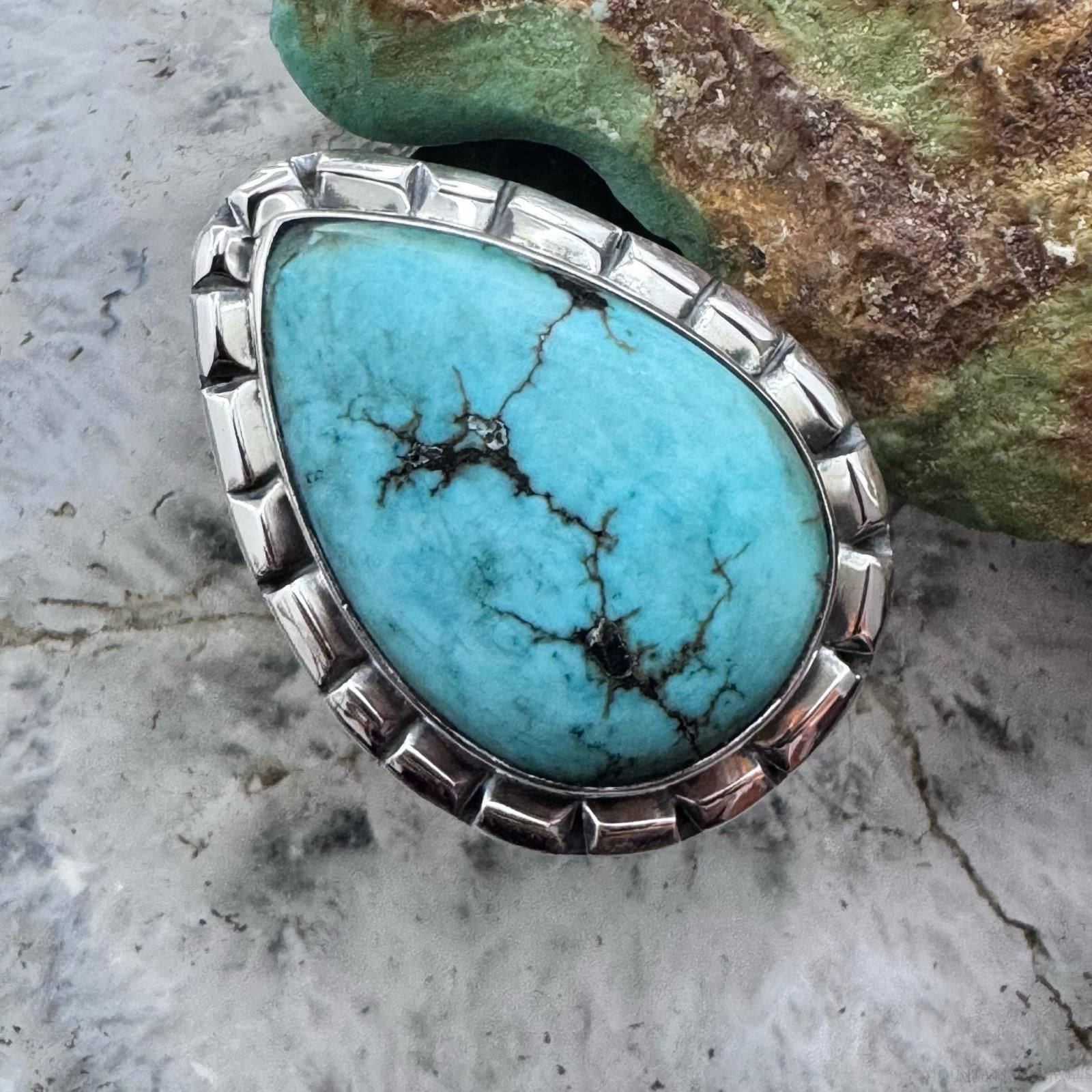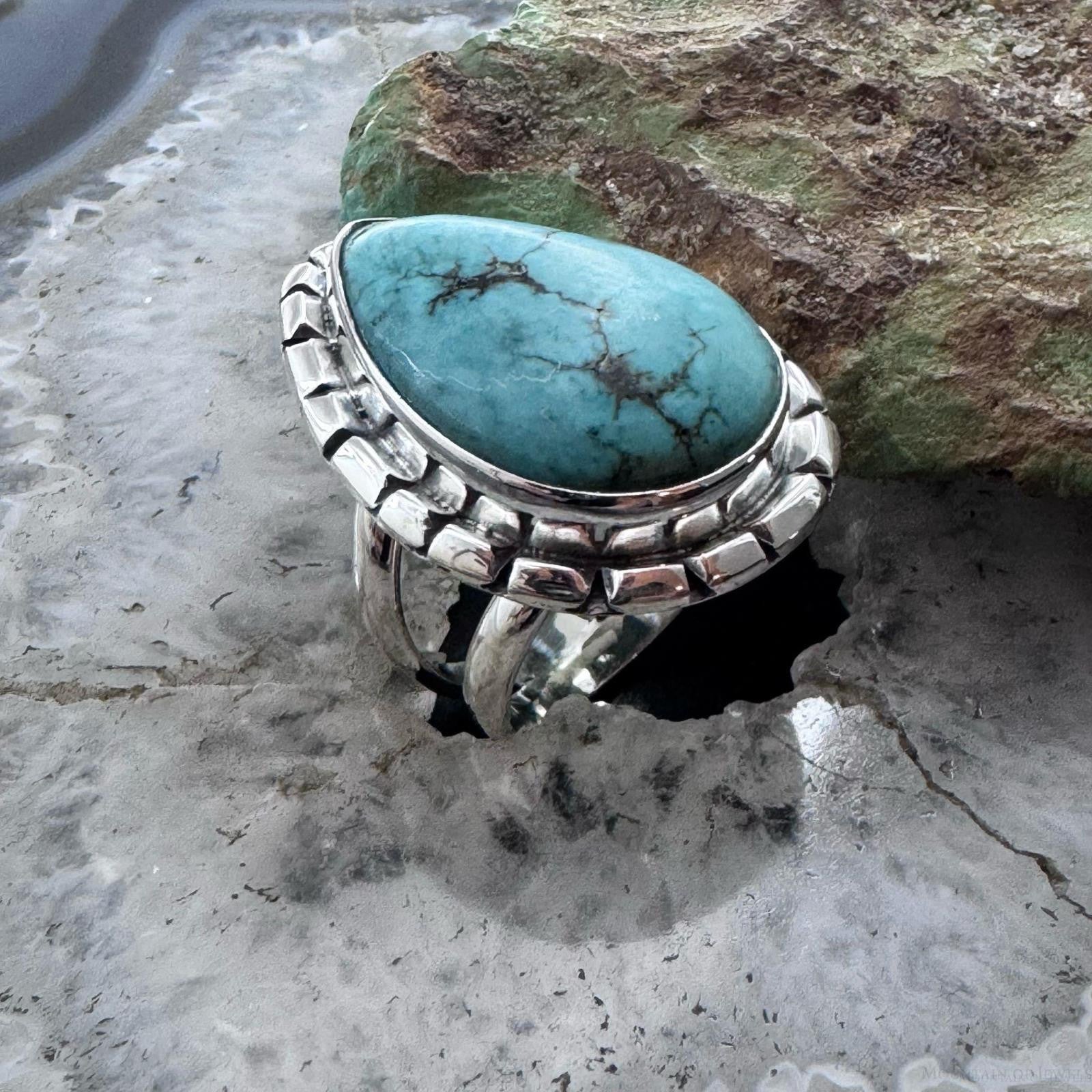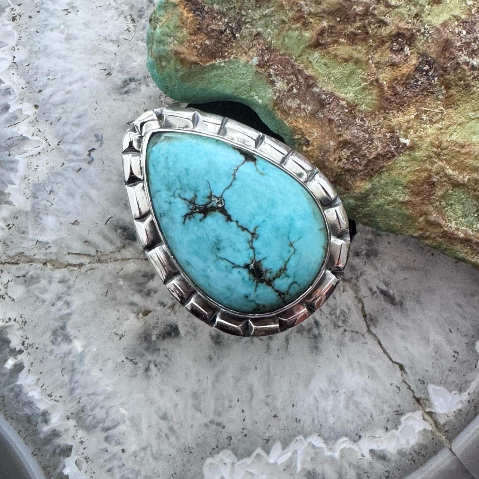 Sterling Silver Southwestern Style Teardrop Tibetan Turquoise Ring Size 7.75 For Women