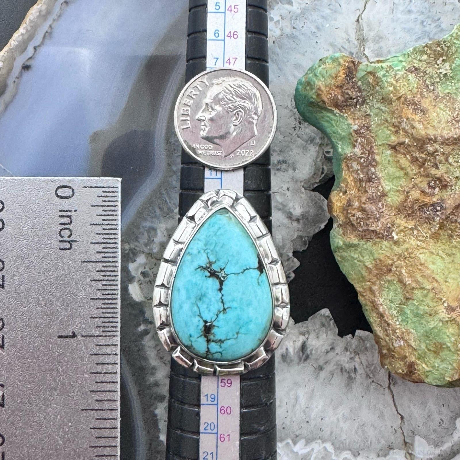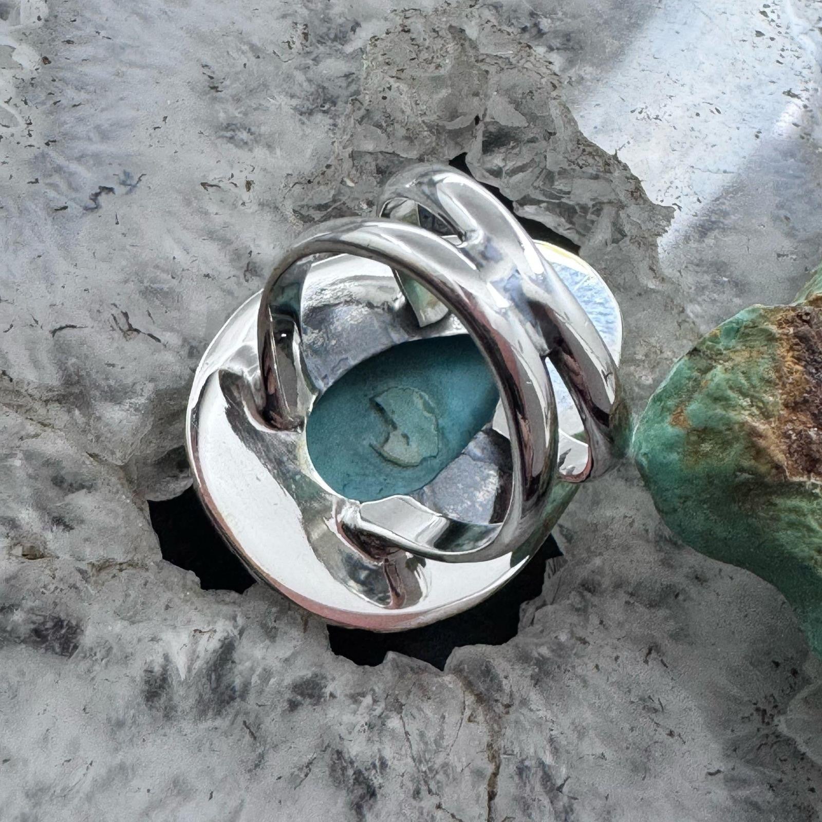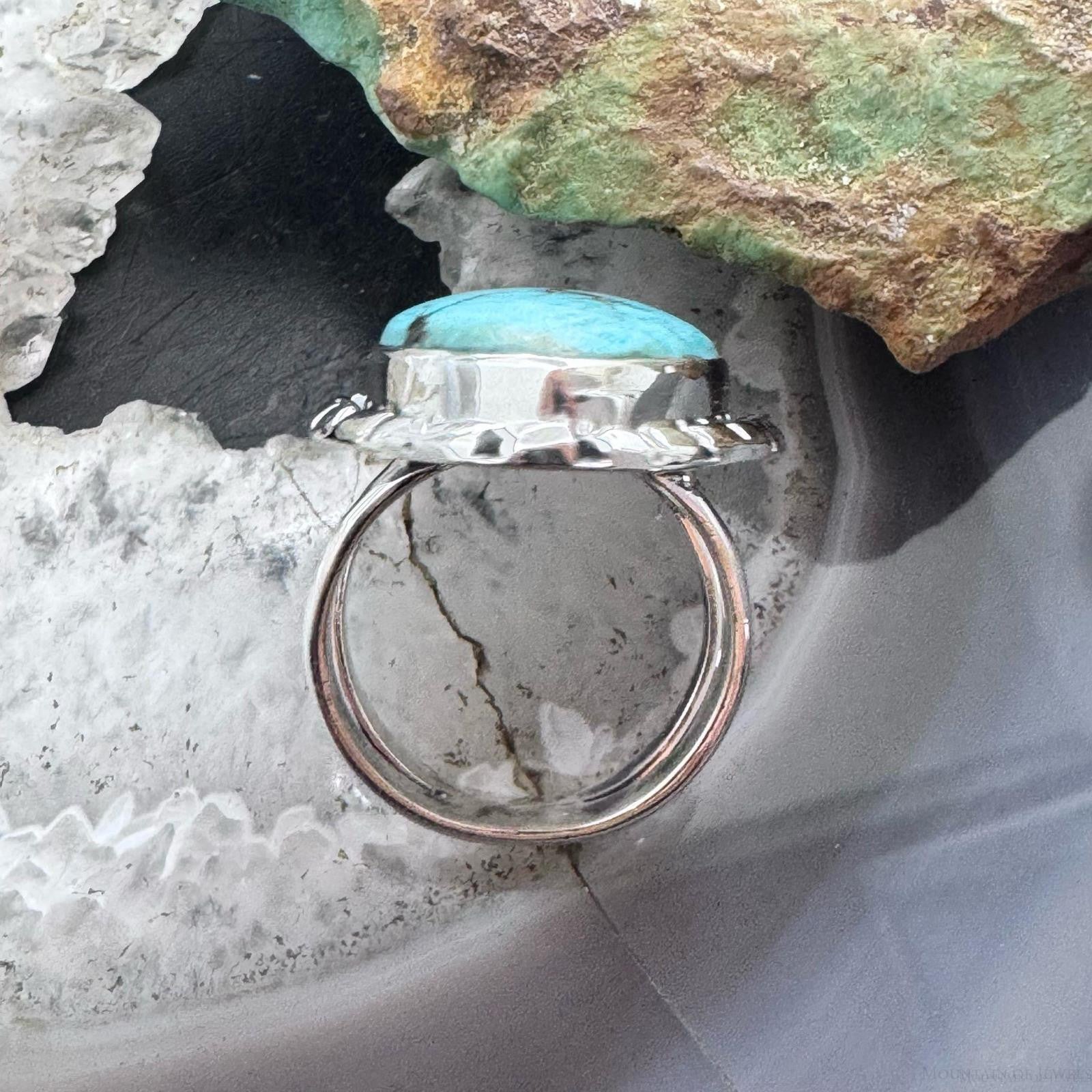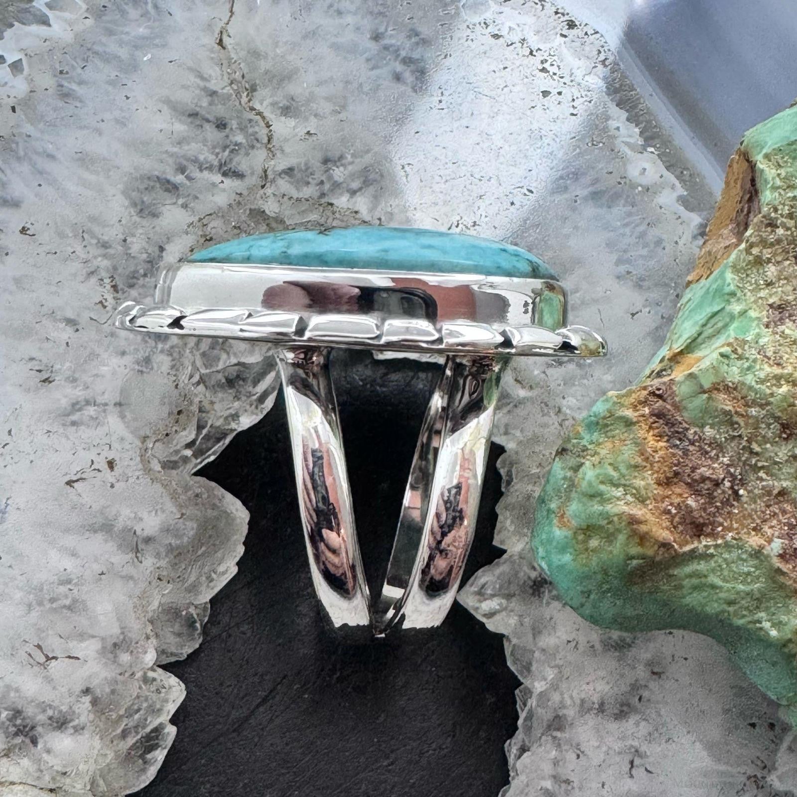 Sterling Silver Southwestern Style Teardrop Tibetan Turquoise Ring Size 7.75 For Women