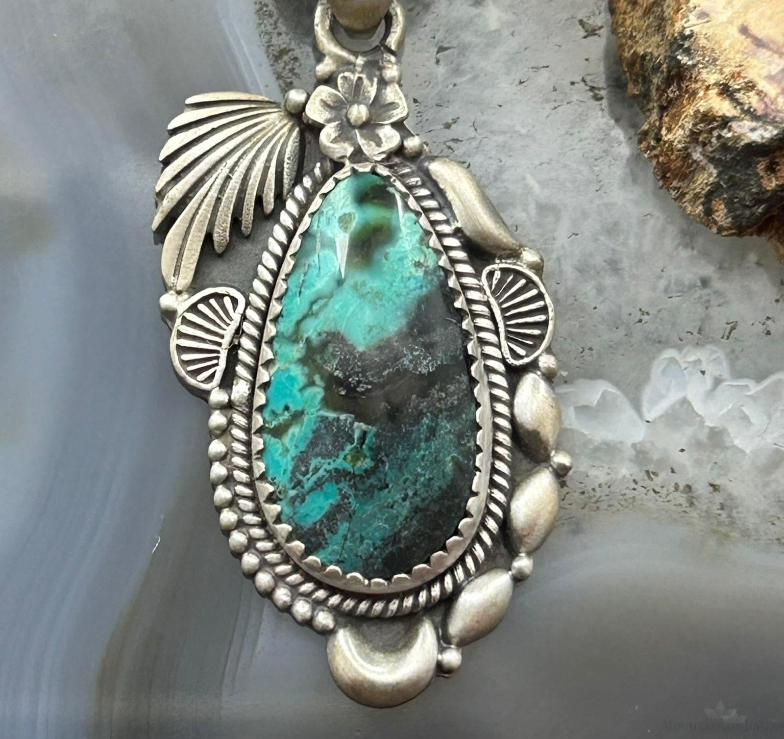 Sterling Silver Southwestern Style Teardrop Turquoise Decorated Pendant For Women