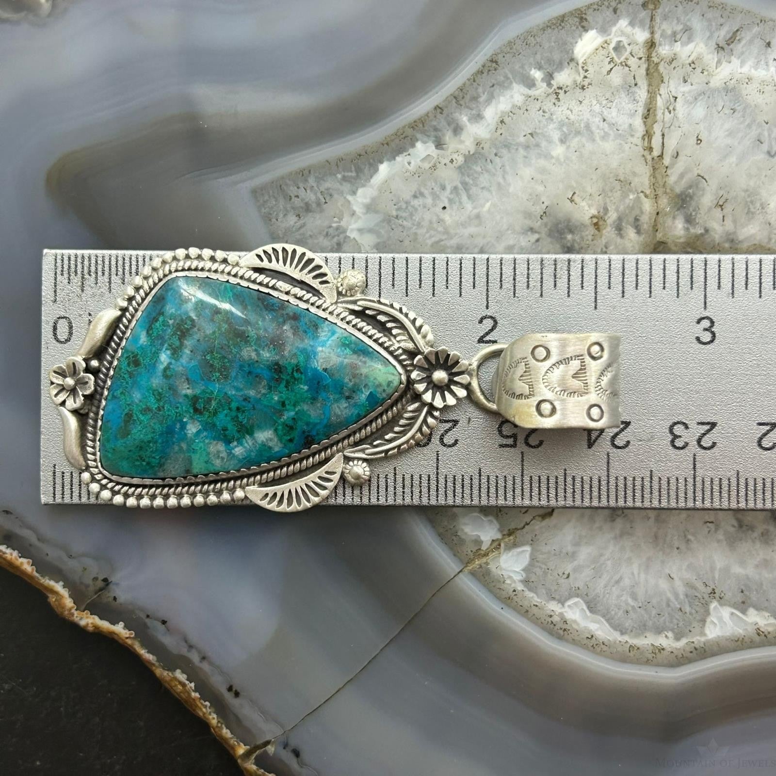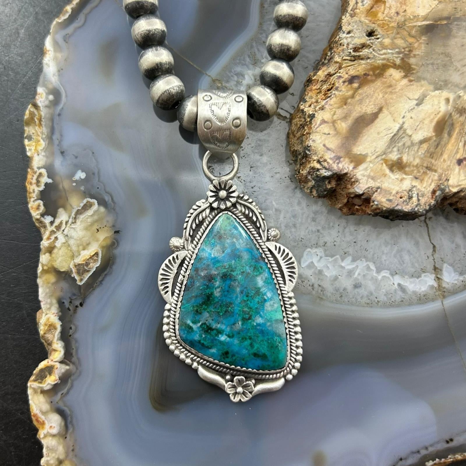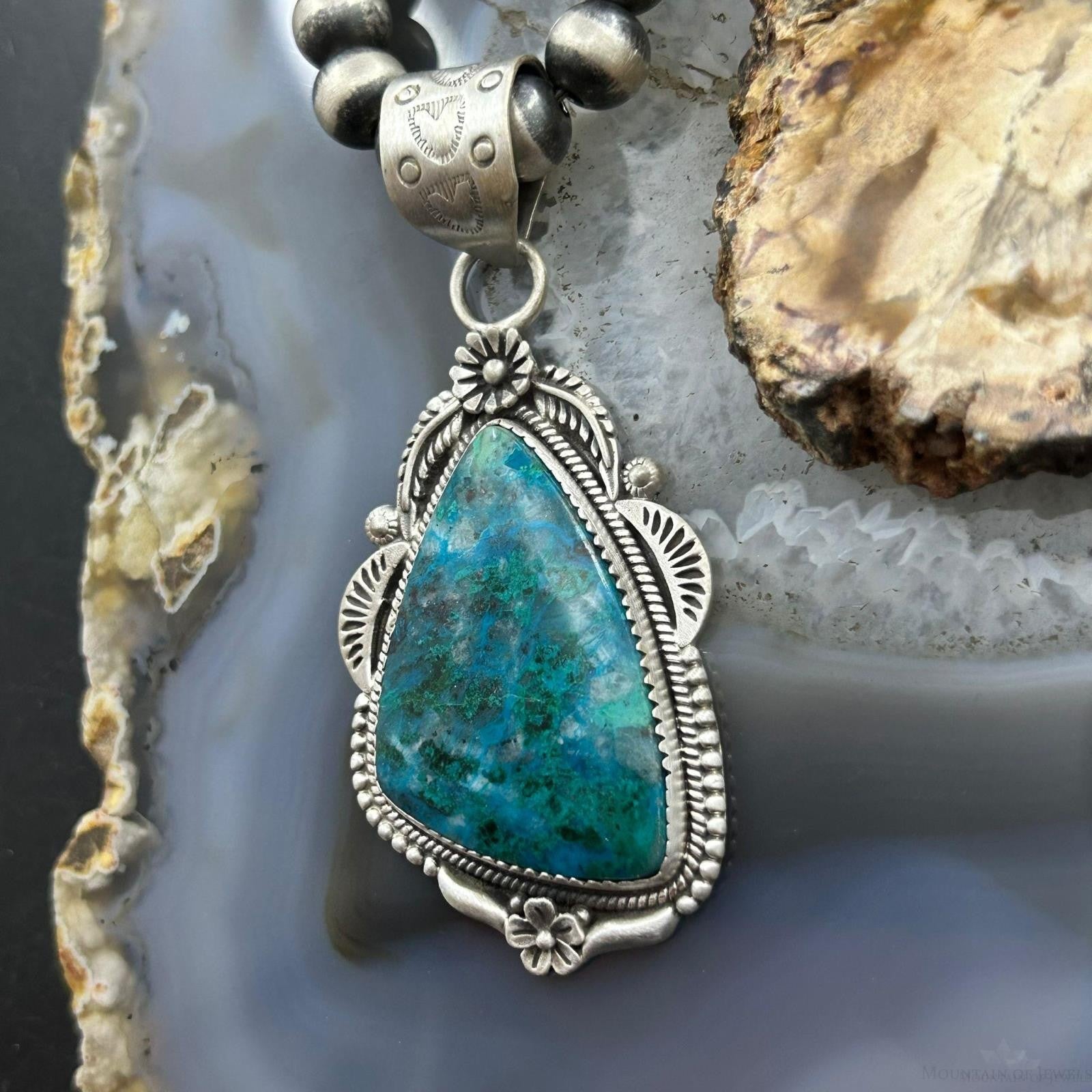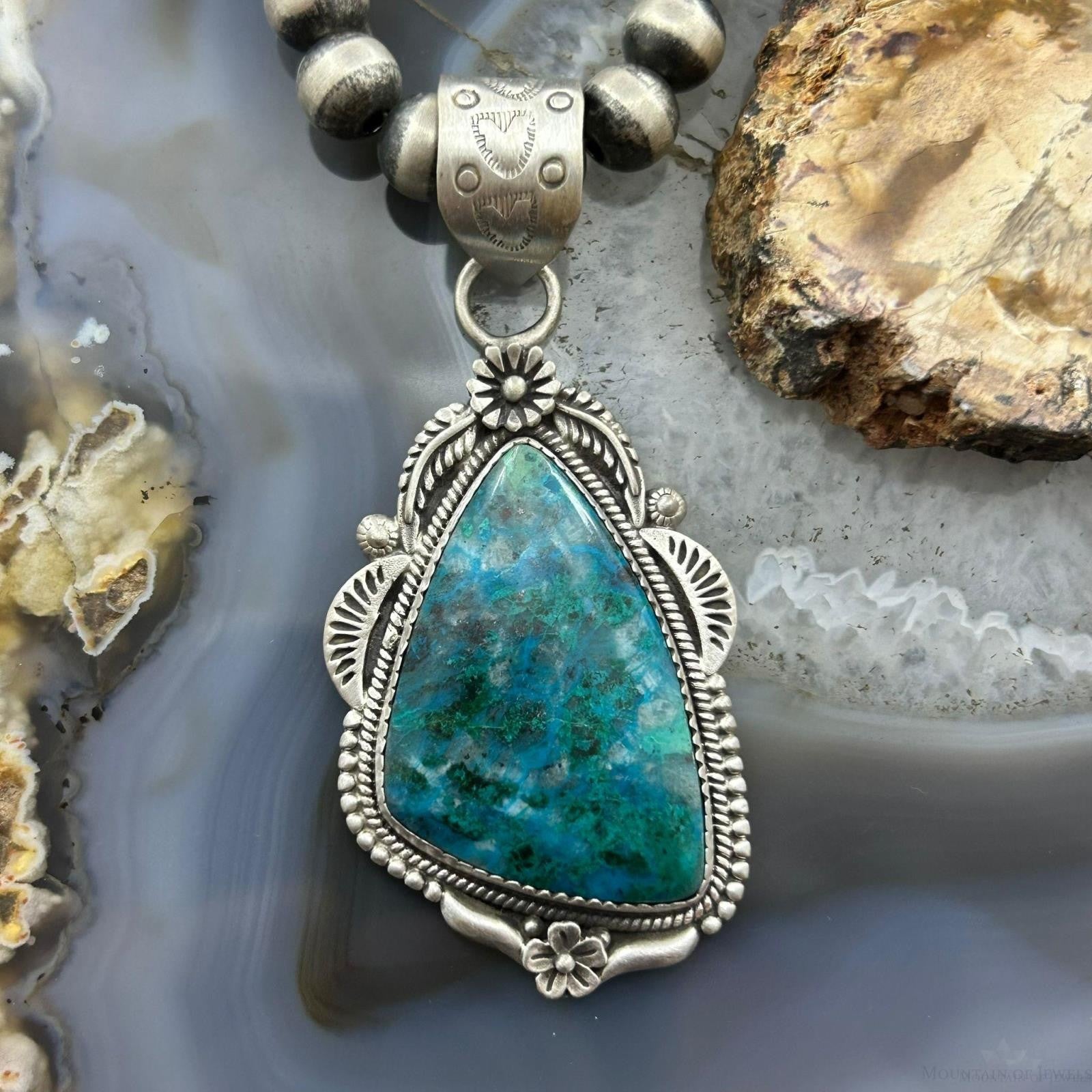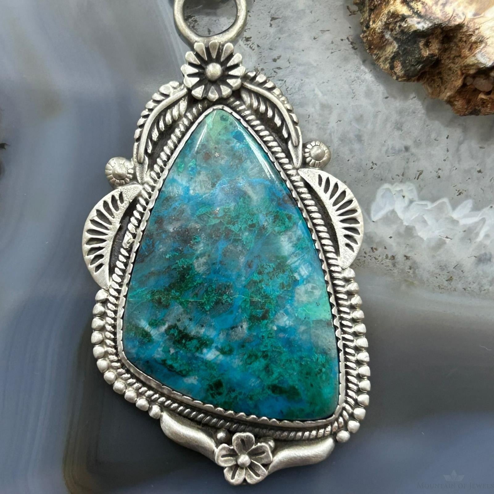 Sterling Silver Southwestern Style Triangle Shattuckite Decorated Pendant For Women