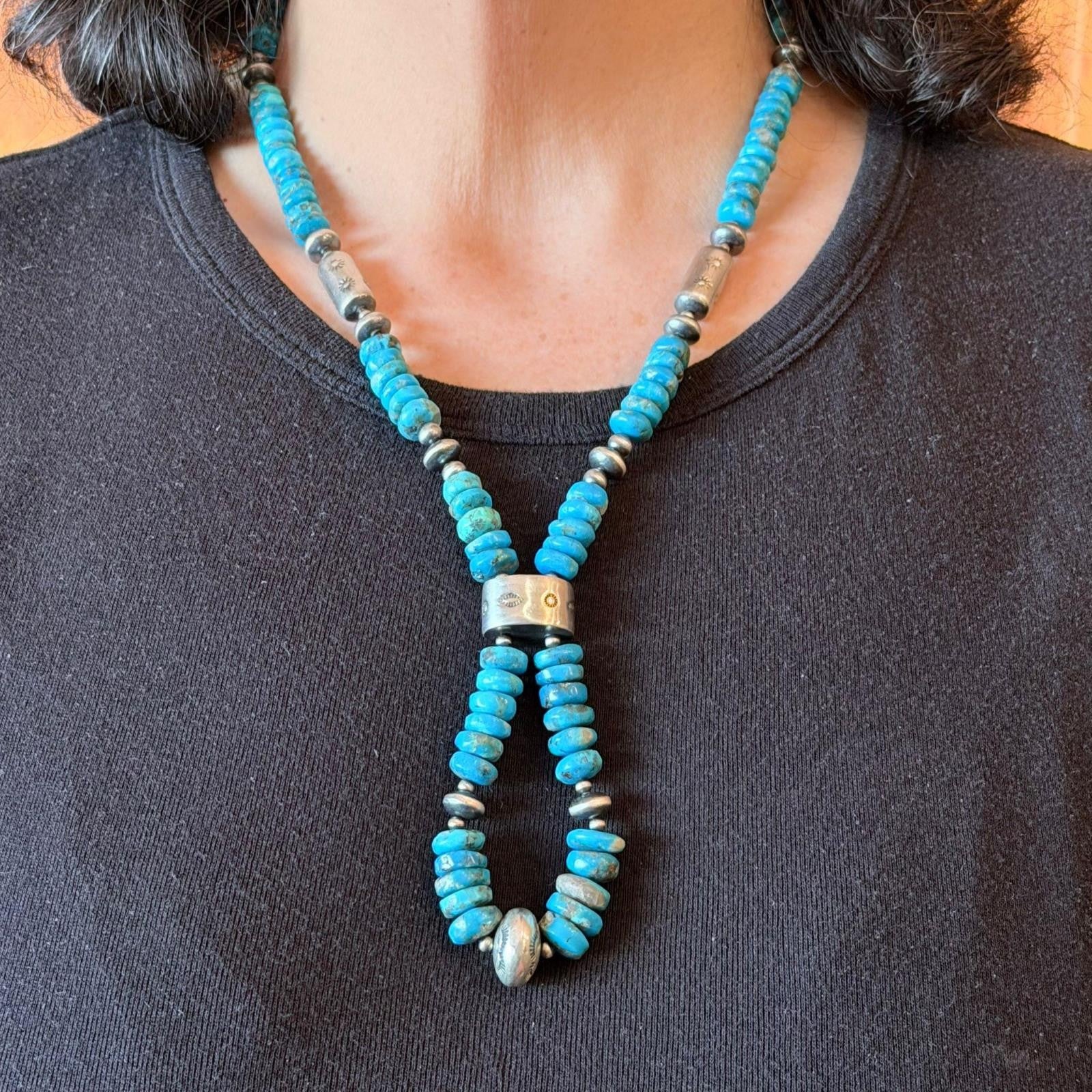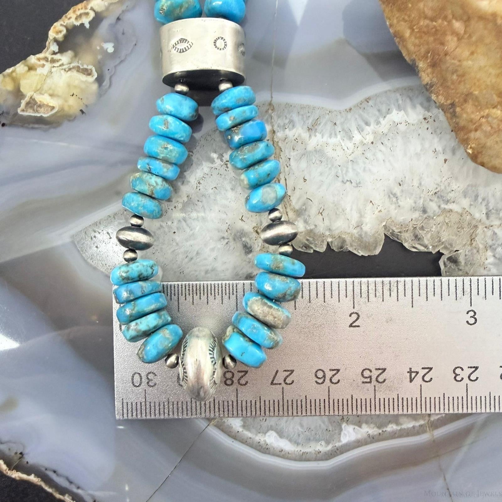 Sterling Silver Southwestern Style Turquoise Disk Beads & Starling Beads 20" Necklace For Women