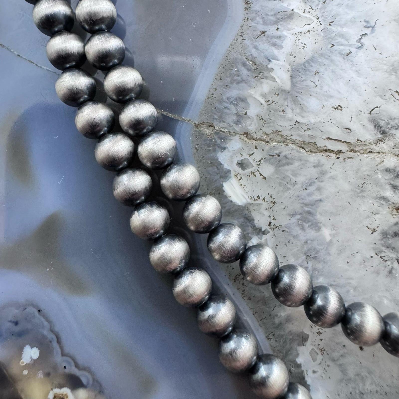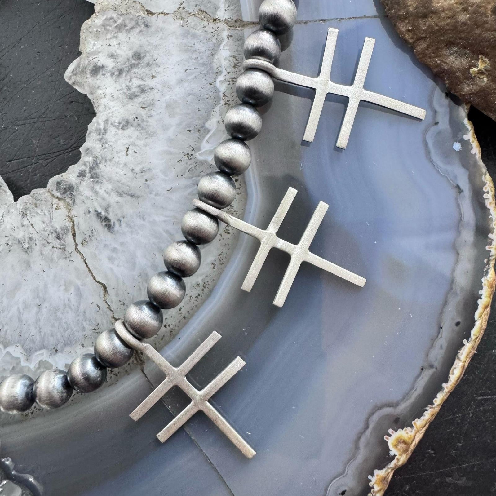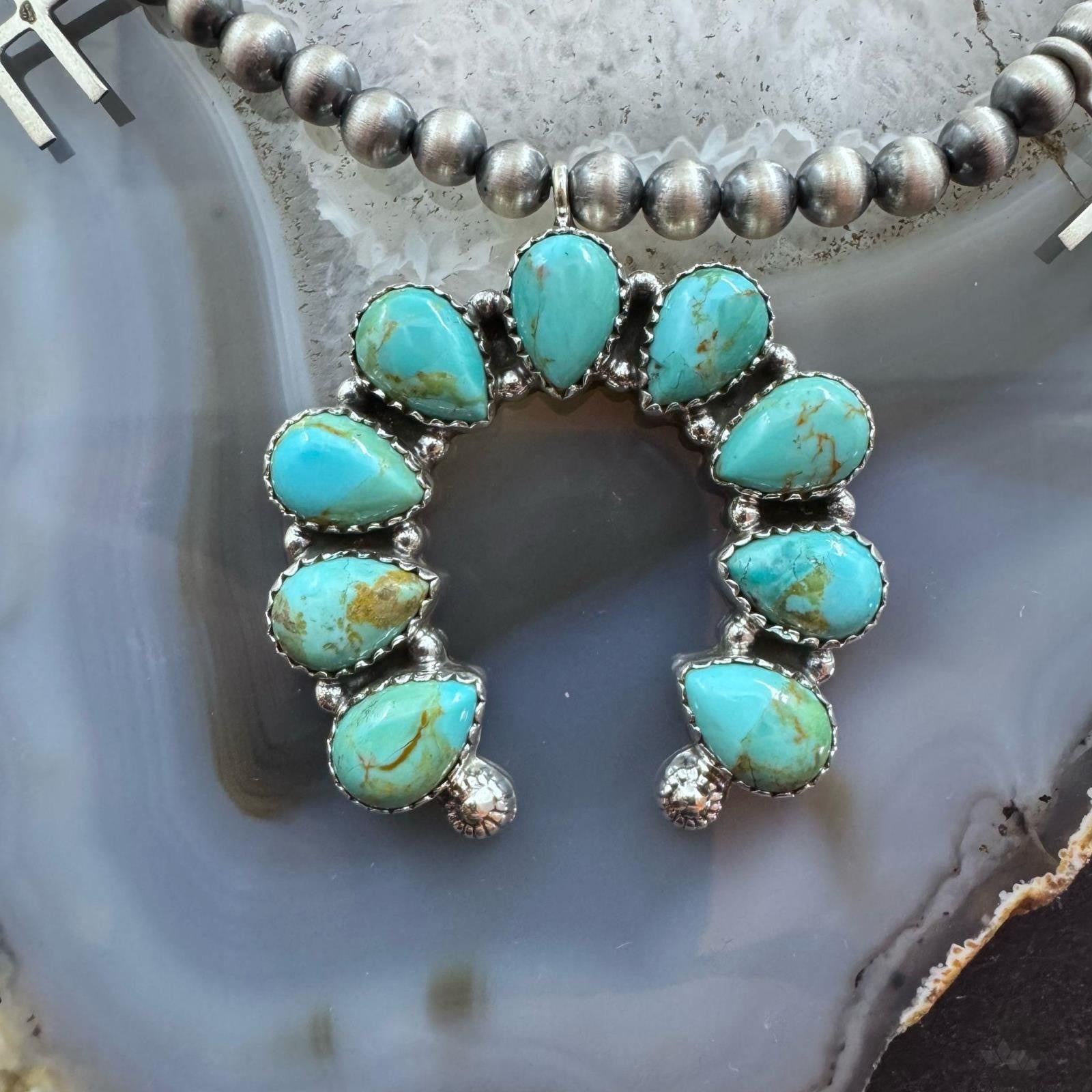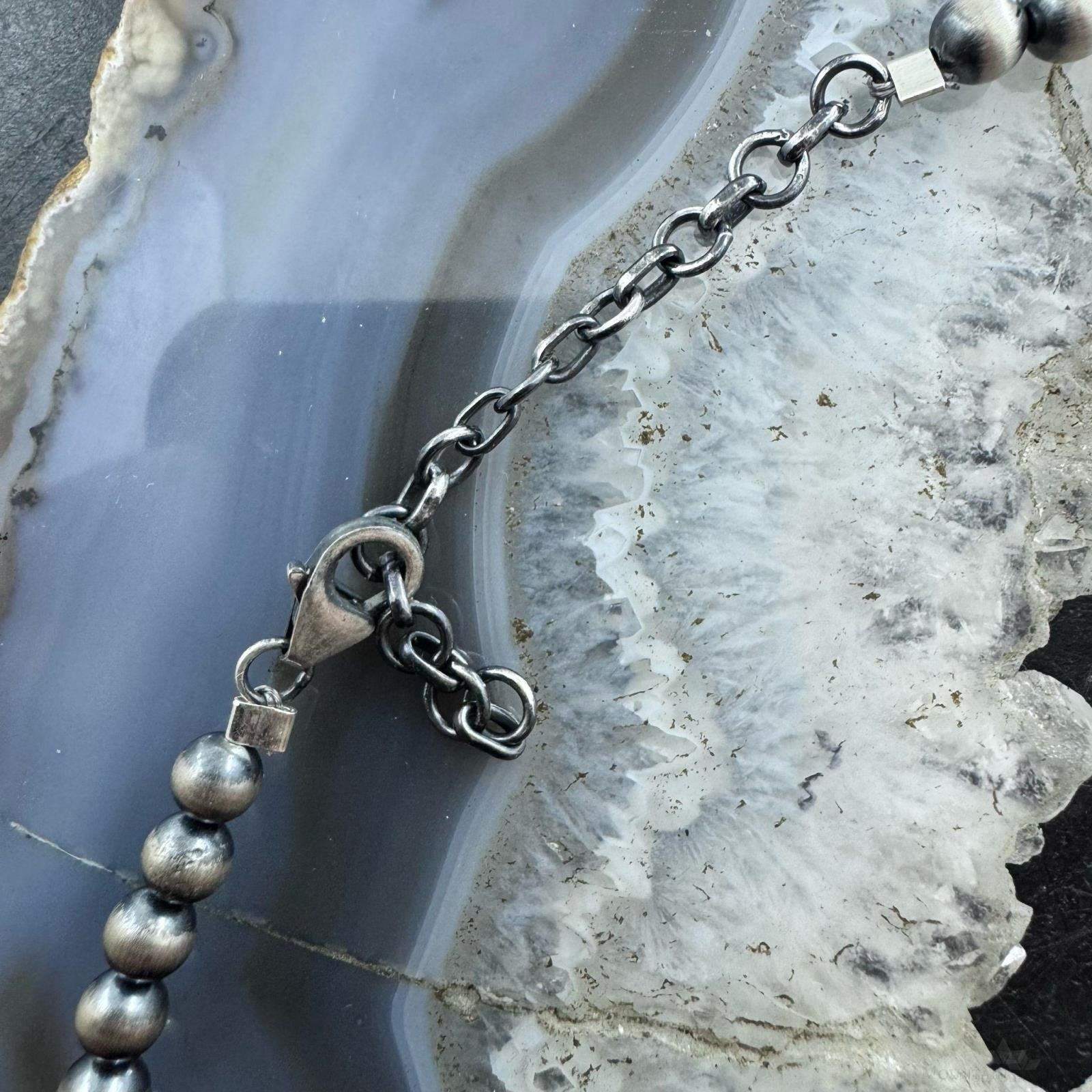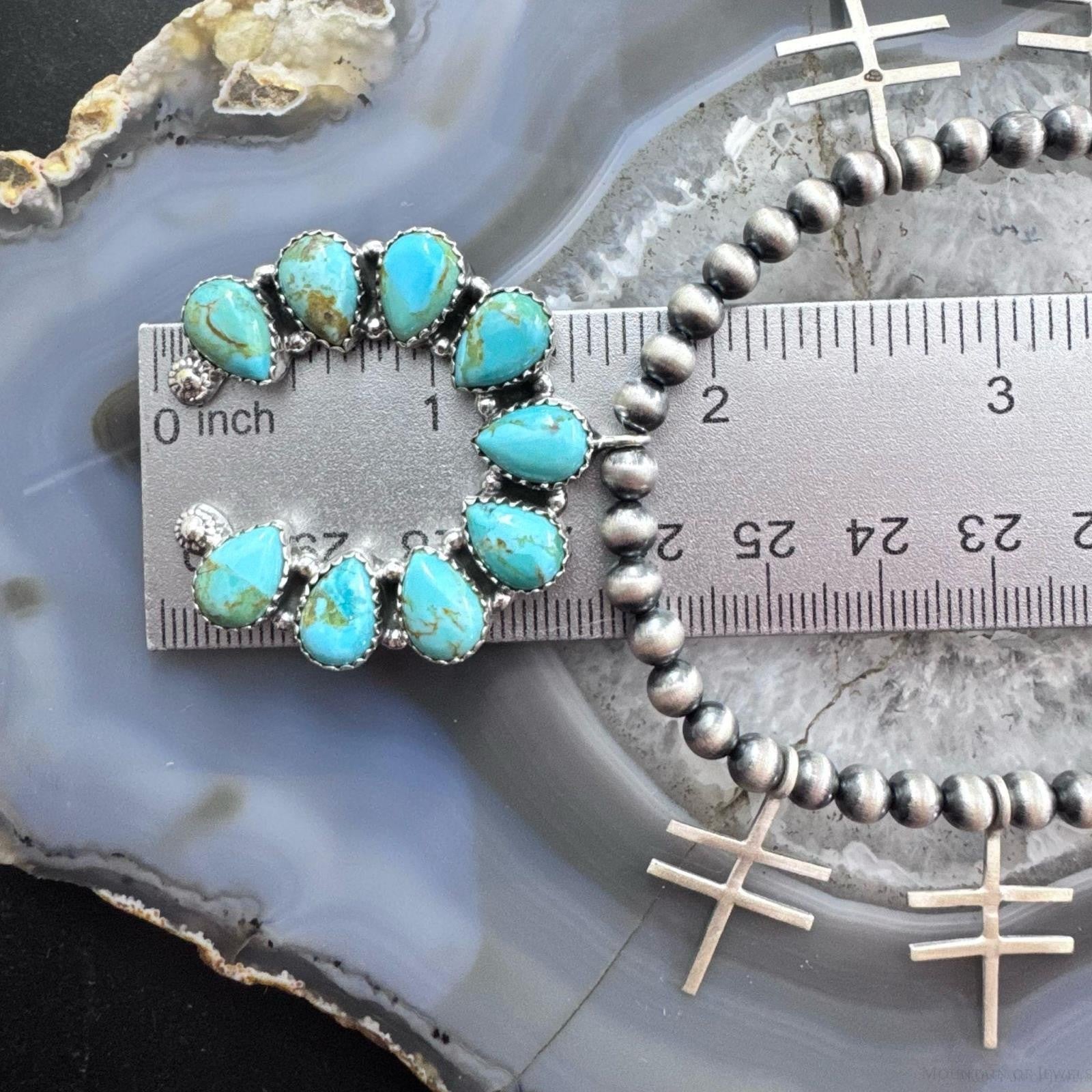 Sterling Silver Southwestern Style Turquoise Naja w/Native Cross Adjustable Navajo Pearl Beads Necklace For Women.