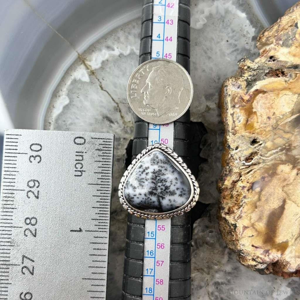 Sterling Silver Southwestern Style Wide Teardrop Dendrite Agate Ring Size 6.5 For Women