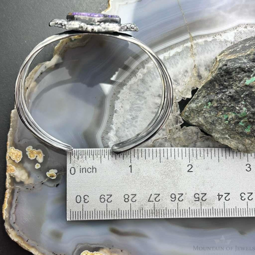 Sterling Silver Southwestern Style Teardrop Charoite Decorated Bracelet For Women