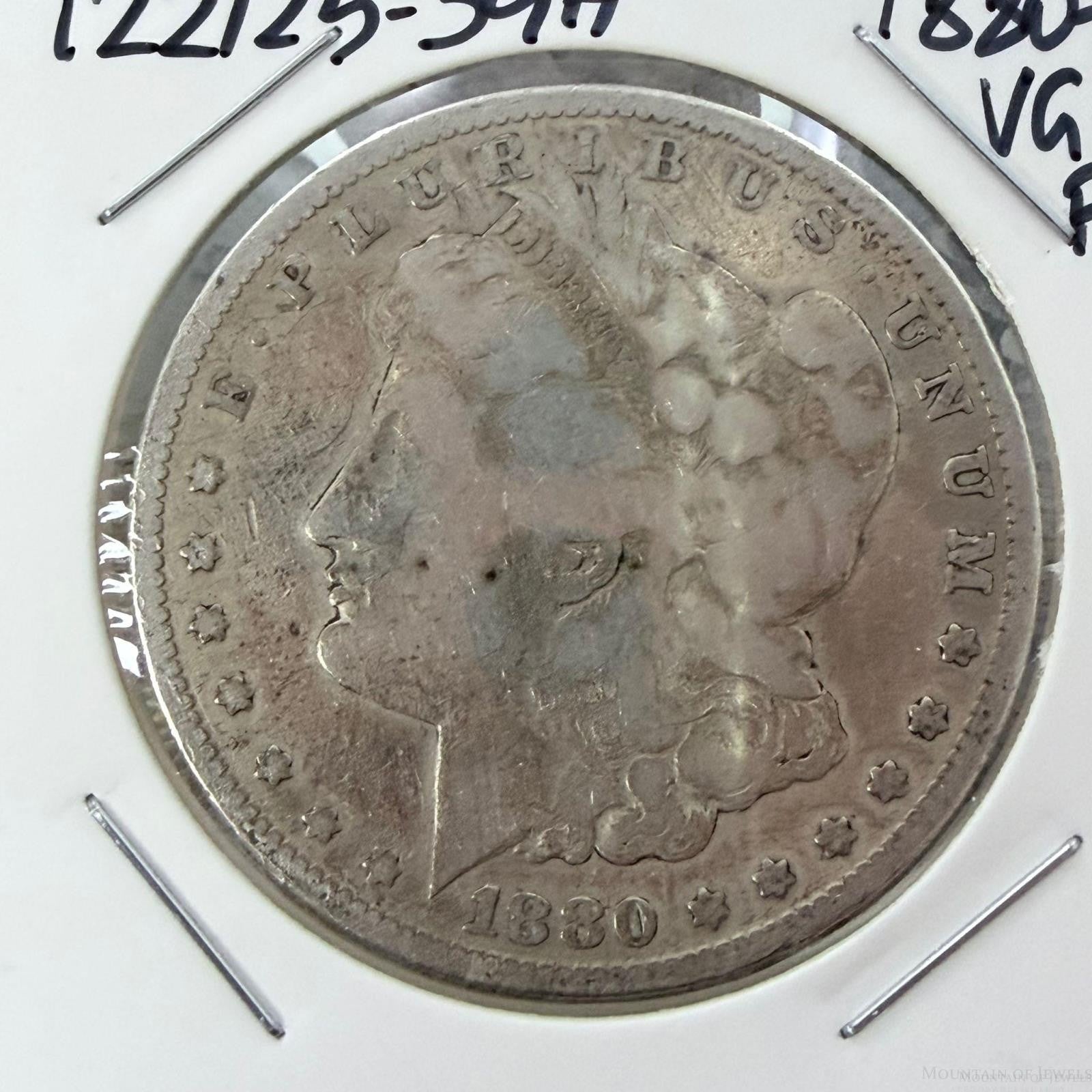 US 1880-S 90% Morgan Silver Dollar VG-F #122125-3GH.