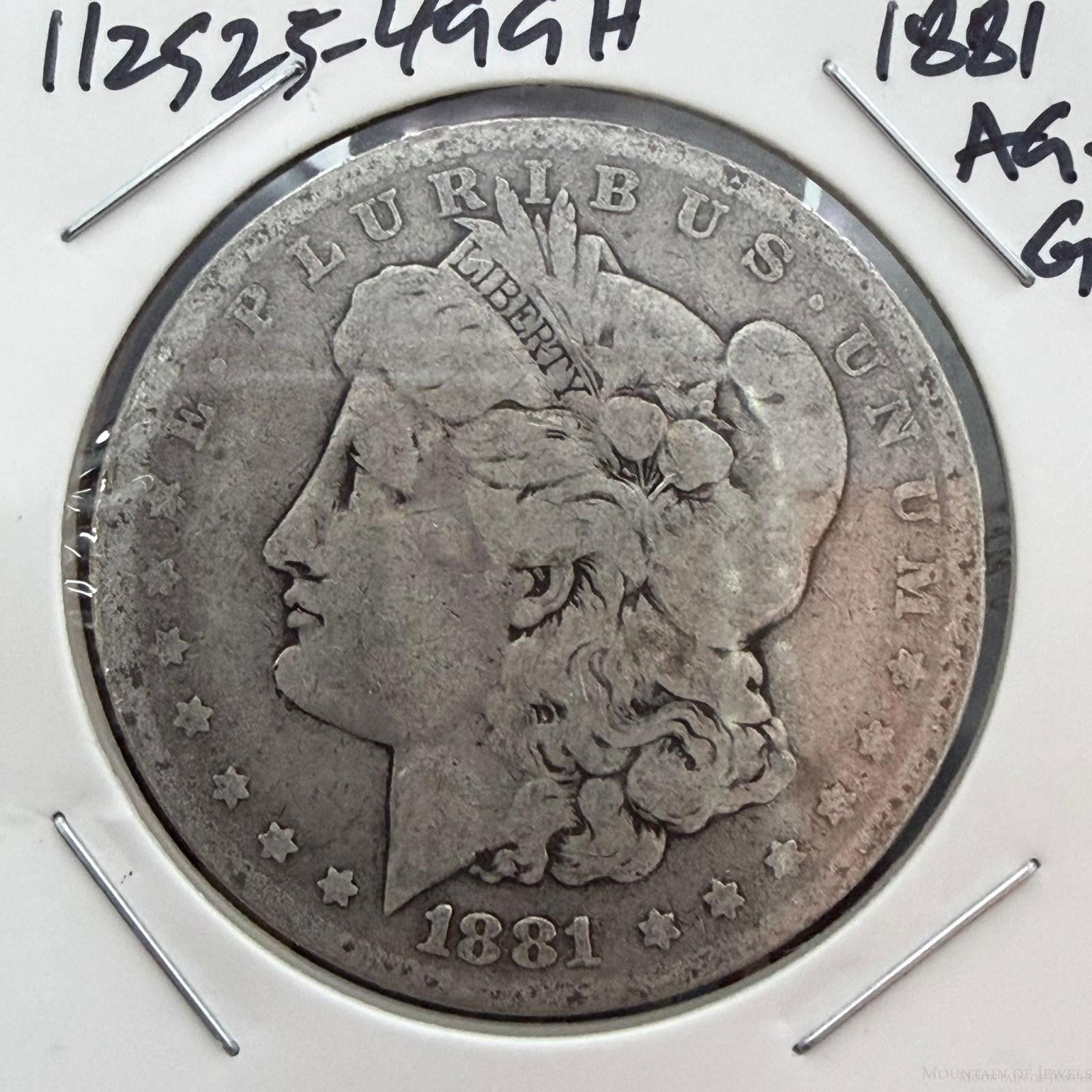 US 1881 90% Morgan Silver Dollar AG-G #112525-49GH.