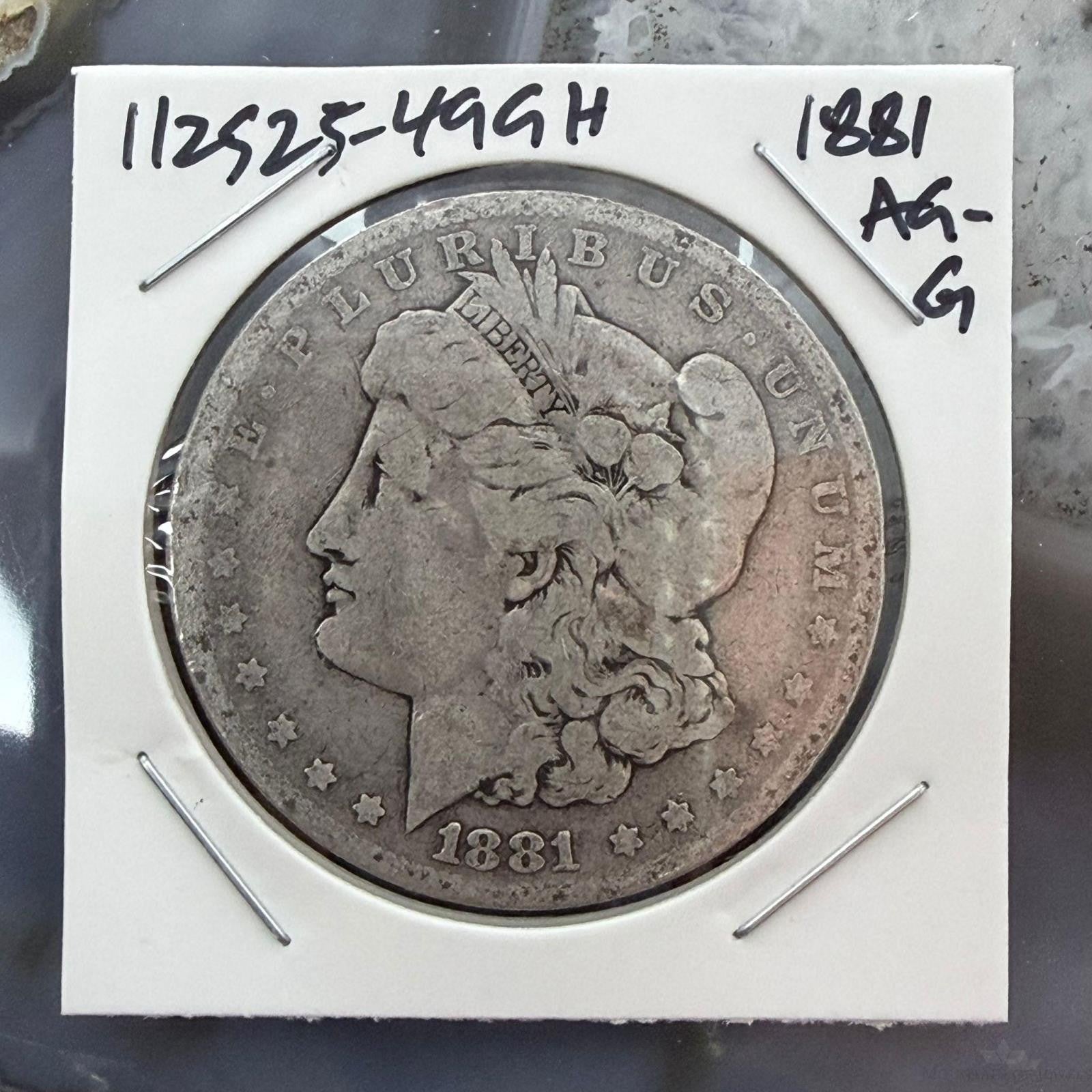 US 1881 90% Morgan Silver Dollar AG-G #112525-49GH