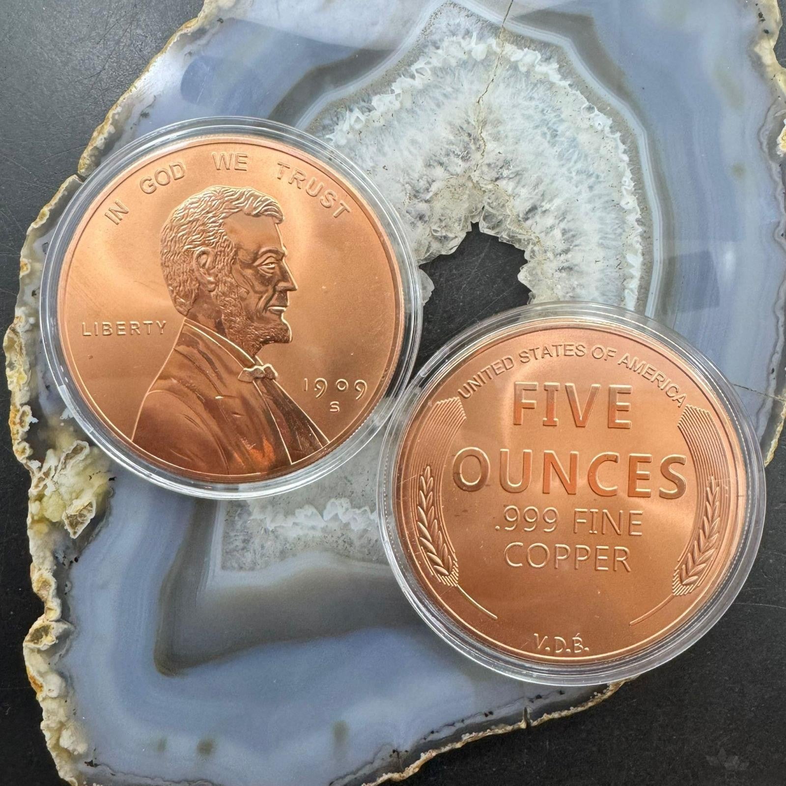 US 5 Ounces .999 Fine Copper Round Lincoln Penny Mint