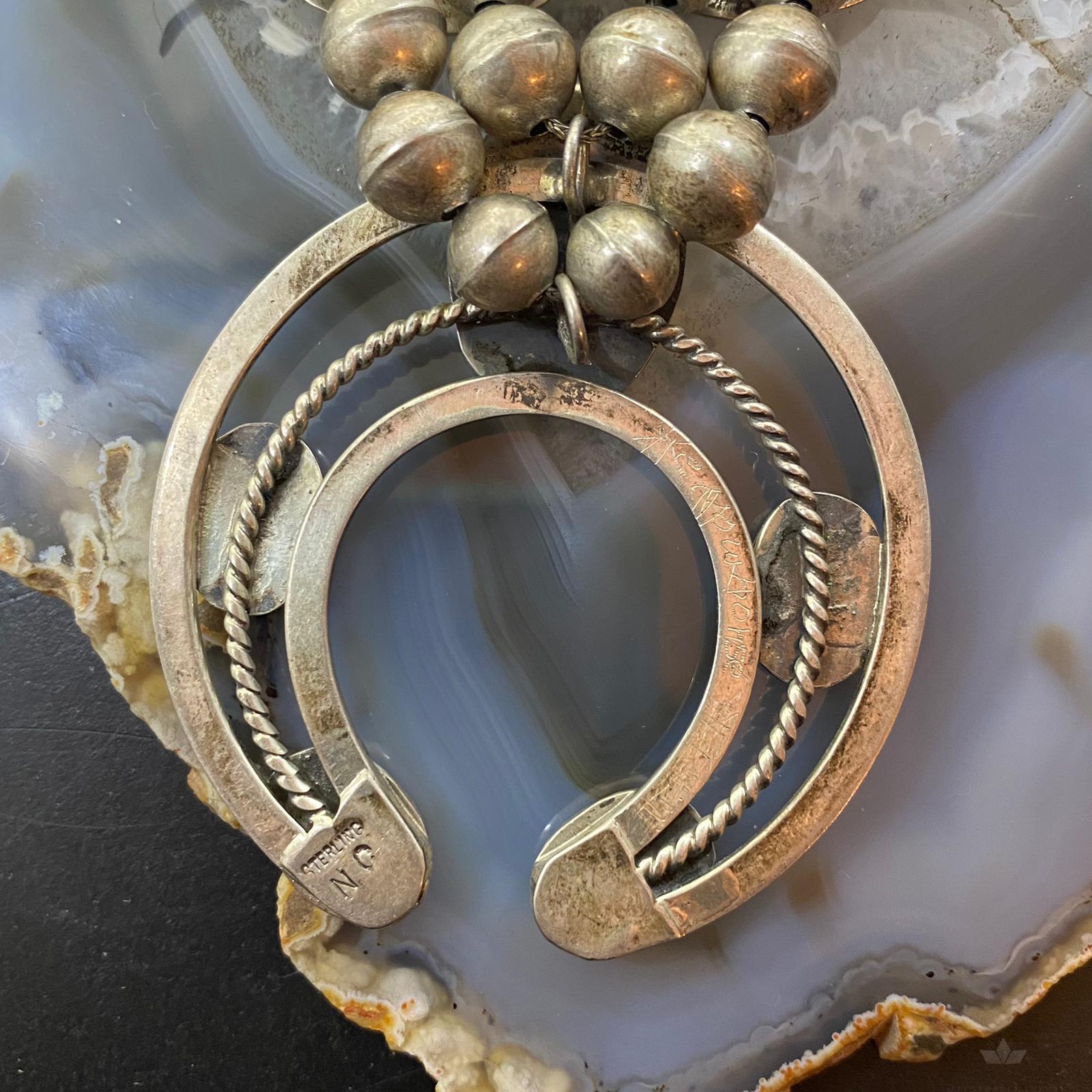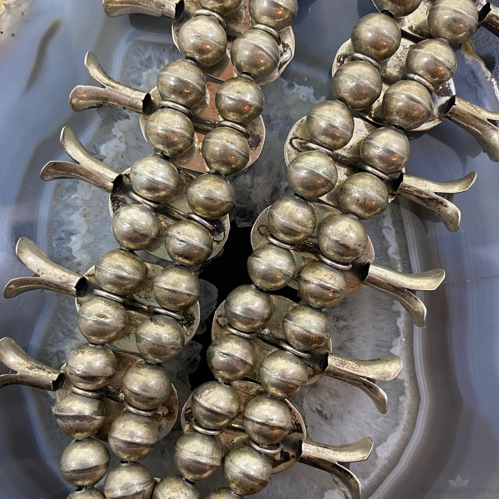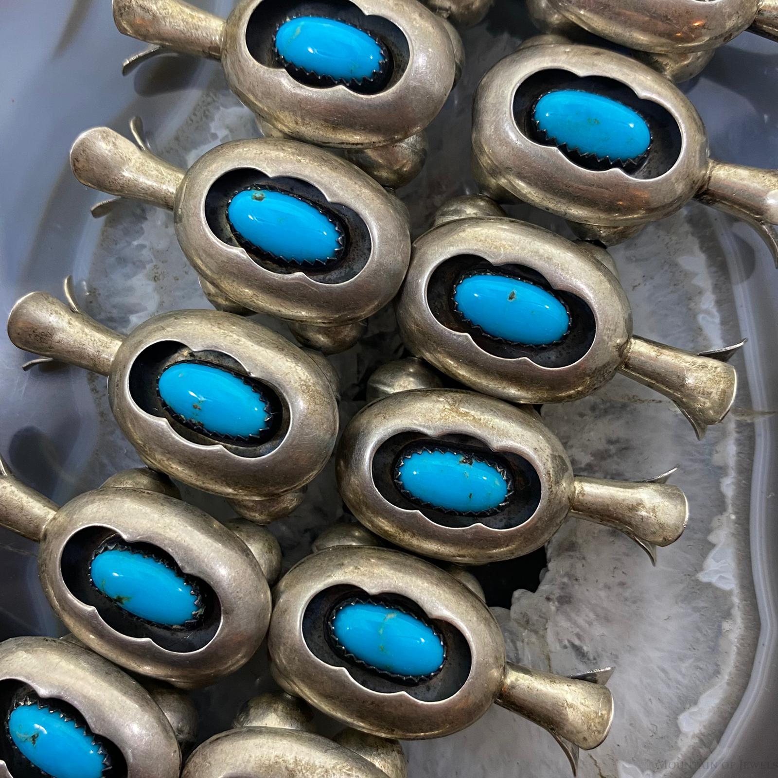 Vintage Signed Native American Sterling Shadow Box Turquoise Squash Blossom
