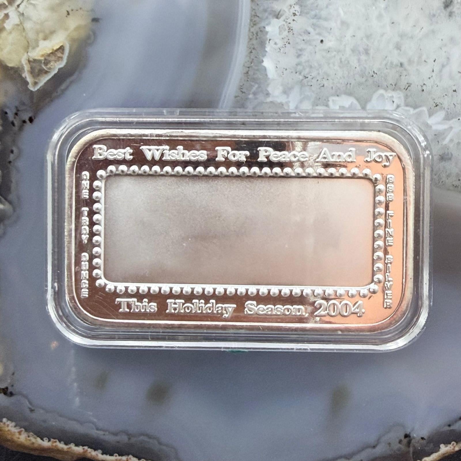 Vintage US 2004 1 Troy Ounce of .999 Fine Silver Bar Holiday Greetings #102525-15HHEX.