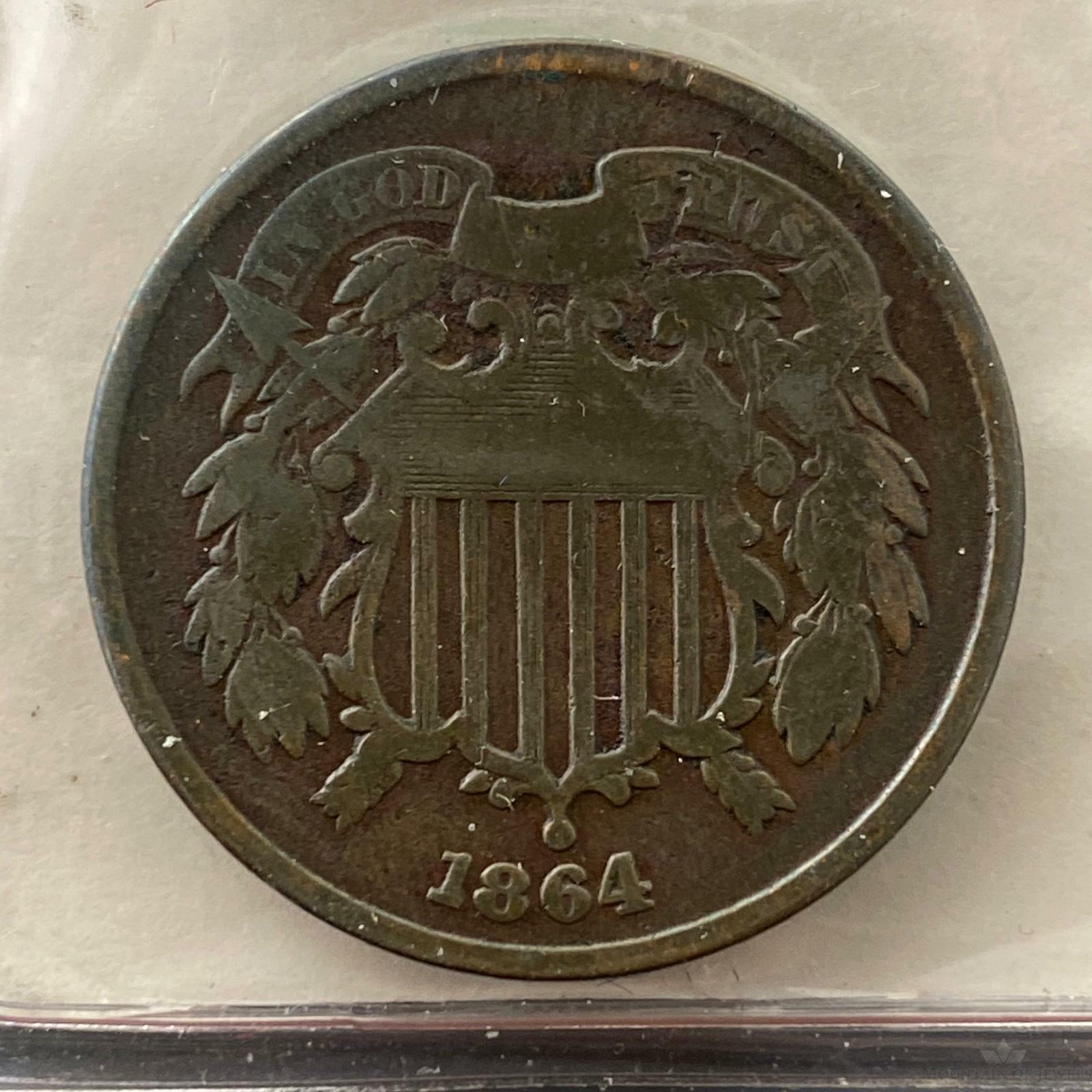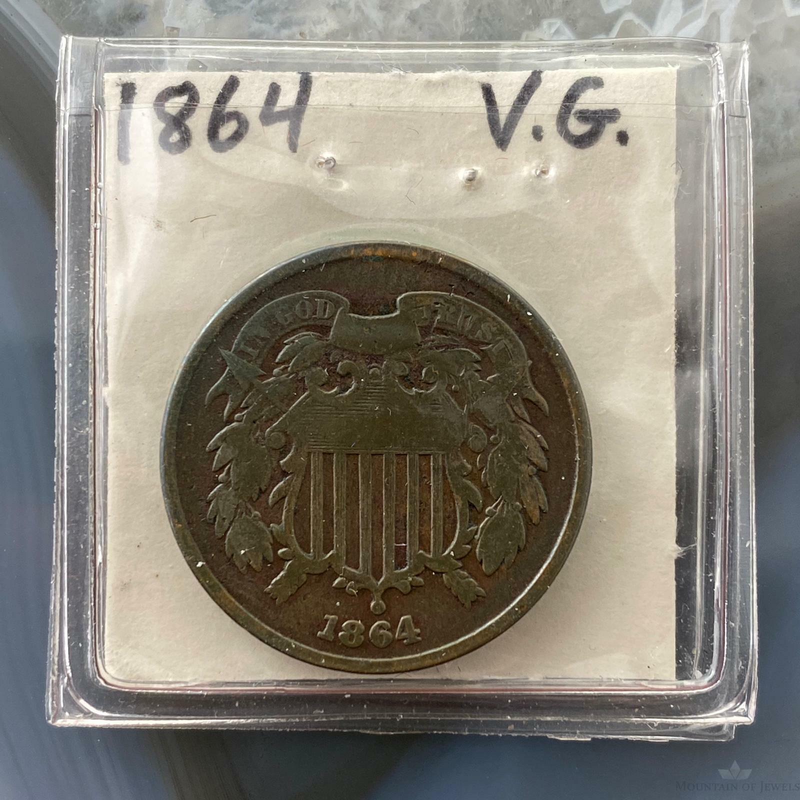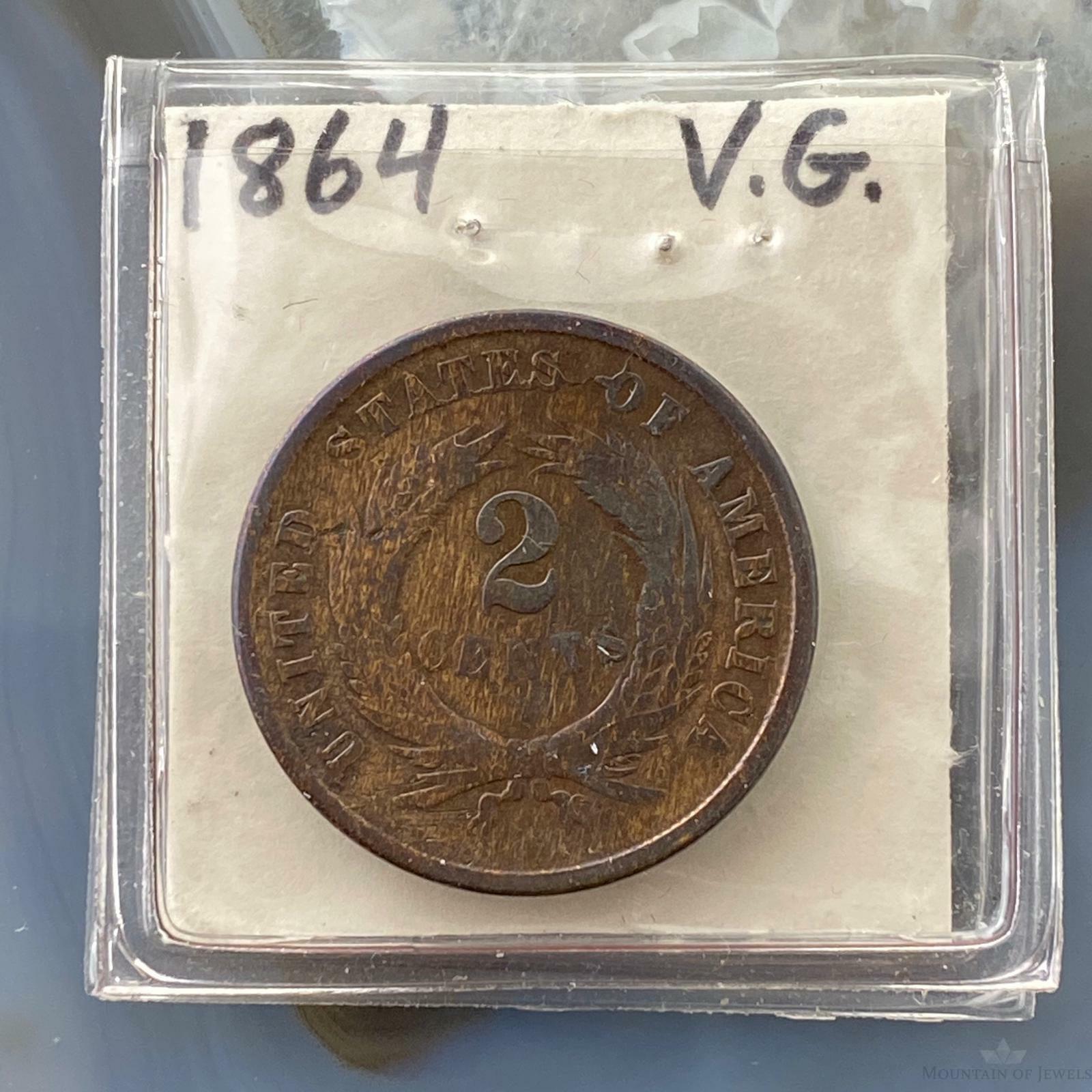 1864 US Two (2) Cent Piece Circulation Strike VG Collectible Coin