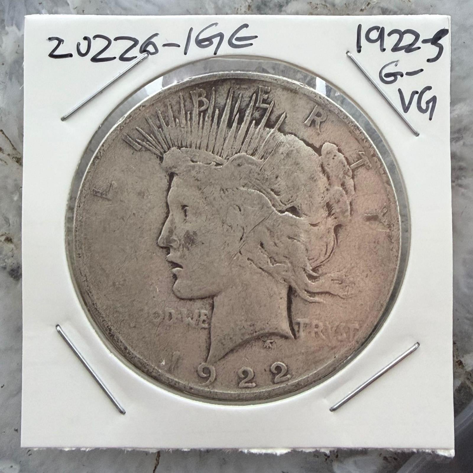 1922-S US 90% Peace Silver Dollar G-VG #20226-1GE