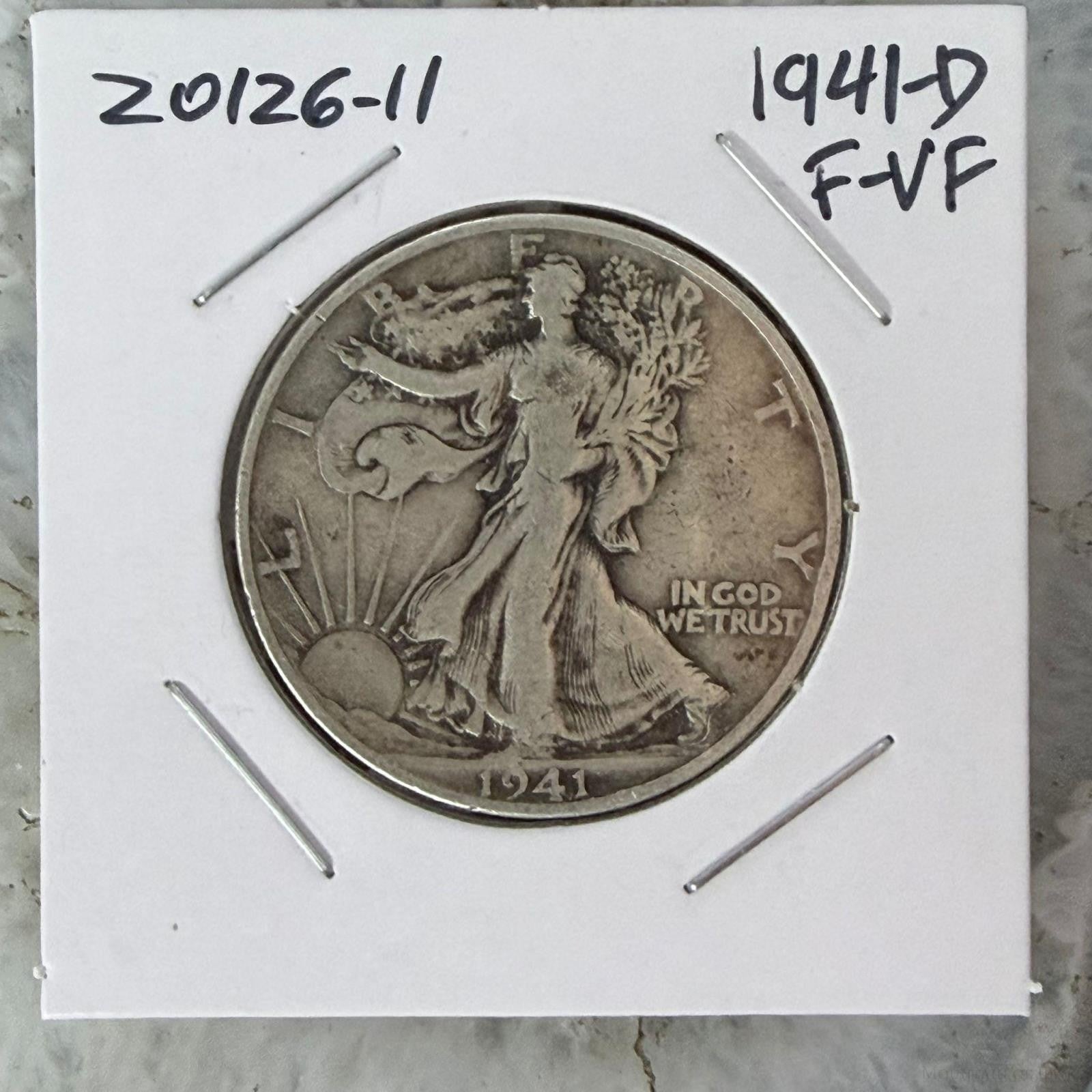 1941-D US Walking Liberty Half Dollar 90% Silver F-VF #20126-11