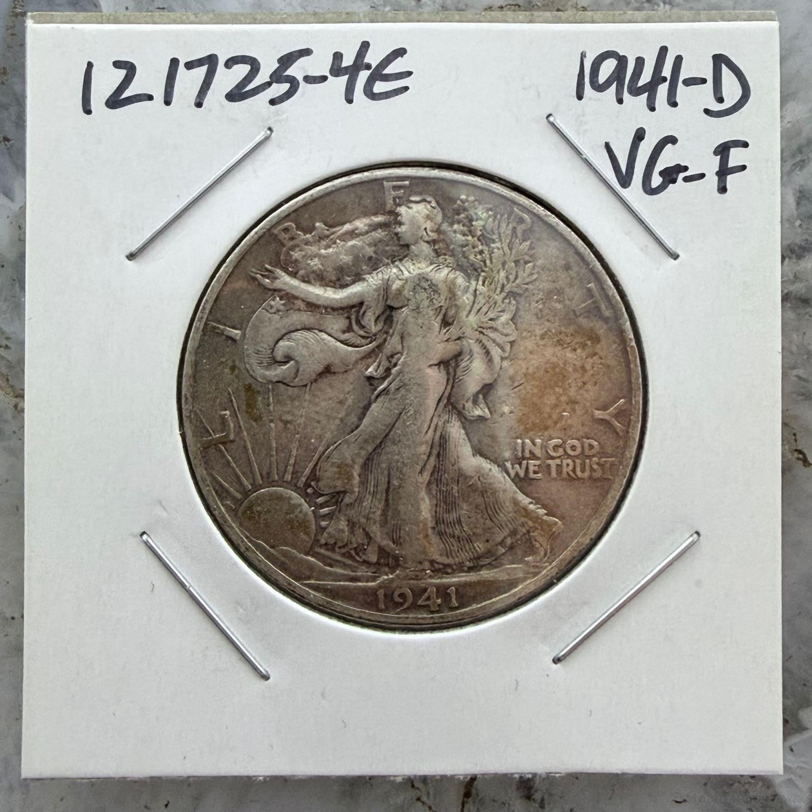 1941-D US Walking Liberty Half Dollar 90% Silver VG-F #121725-4E.