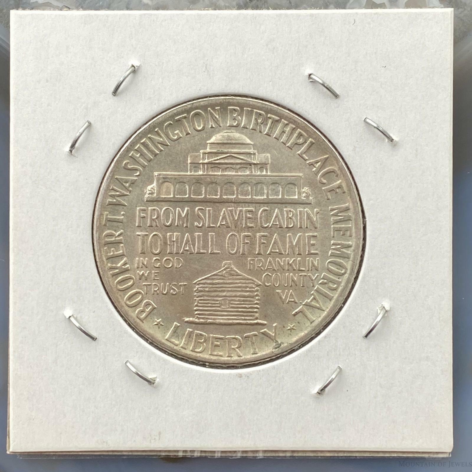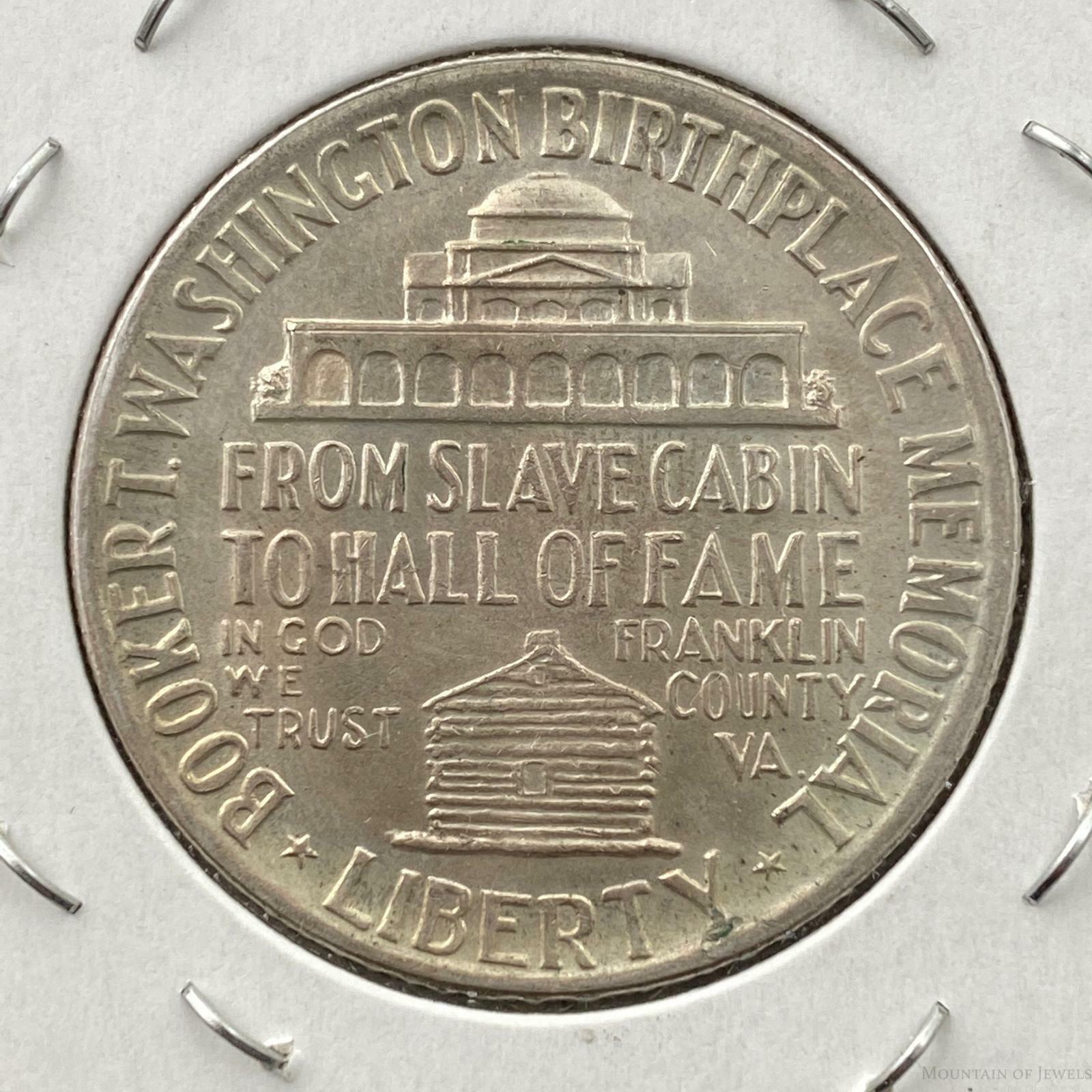 Coin was minted between 1946 to 1951. Coin was issued to perpetuate the ideals and teachings of Booker Washington. The reverse has the legend FROM SLAVE CABIN TO HALL OF FAME.