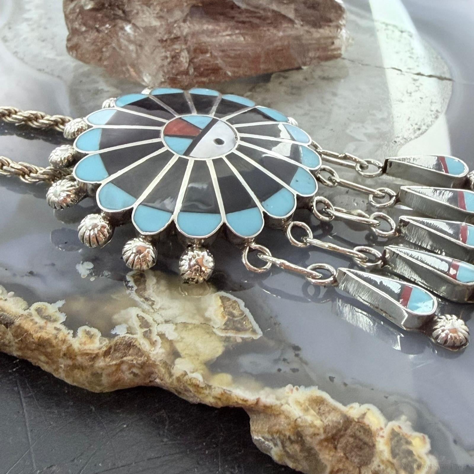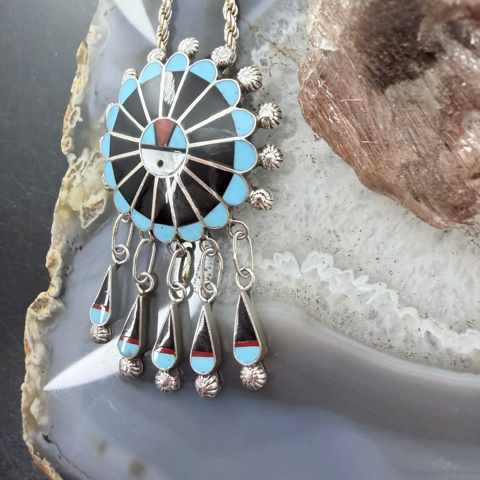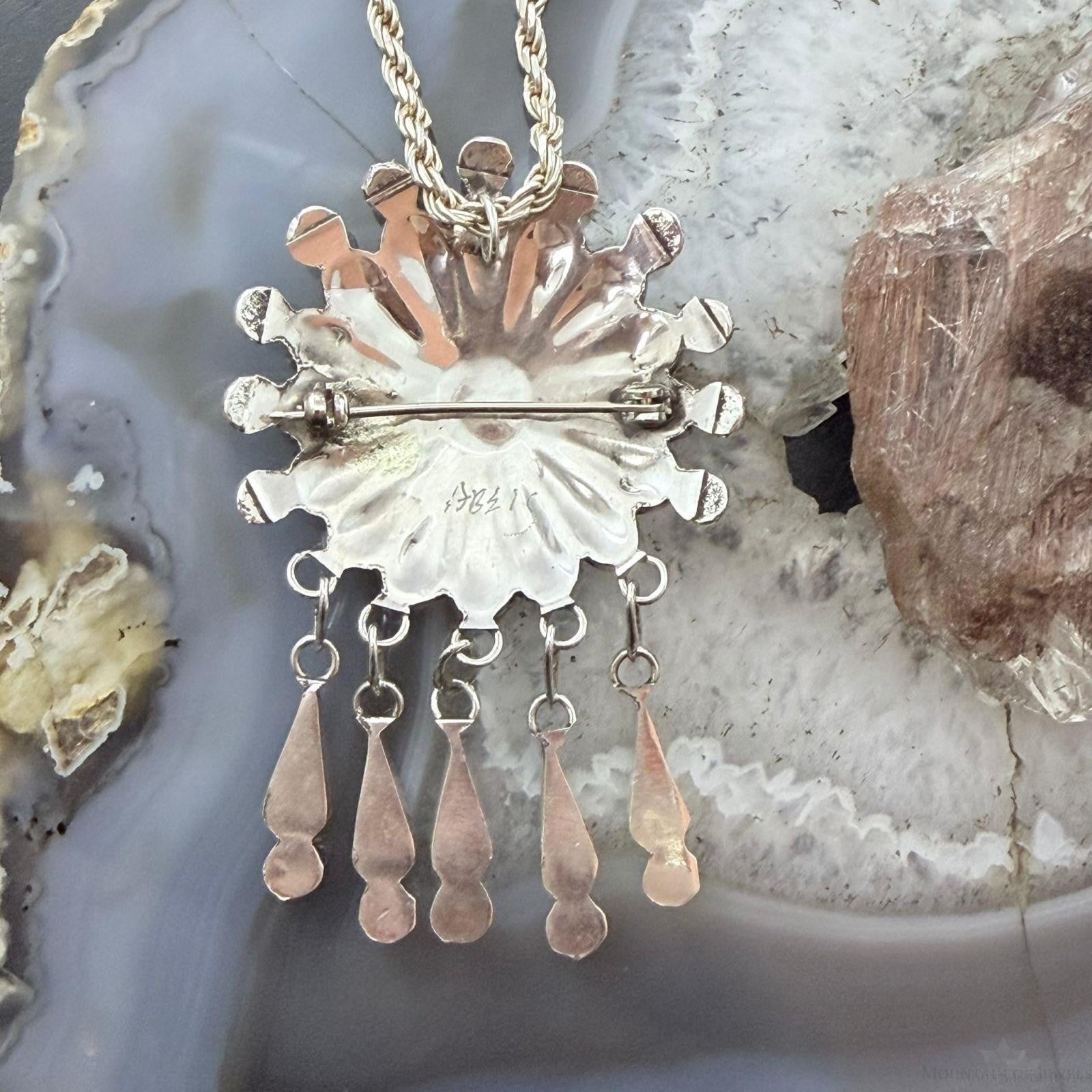 Abel Soseeah Native American Sterling Silver Zuni Inlay Sunface Pendant/Brooch For Women
