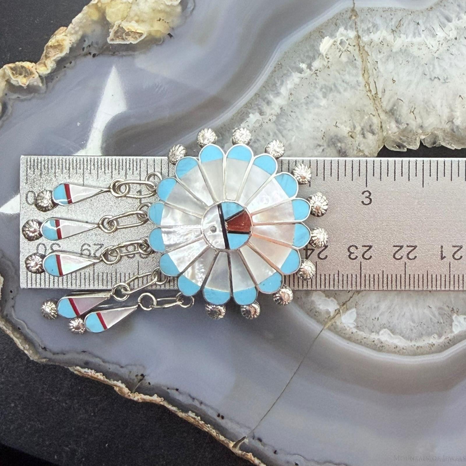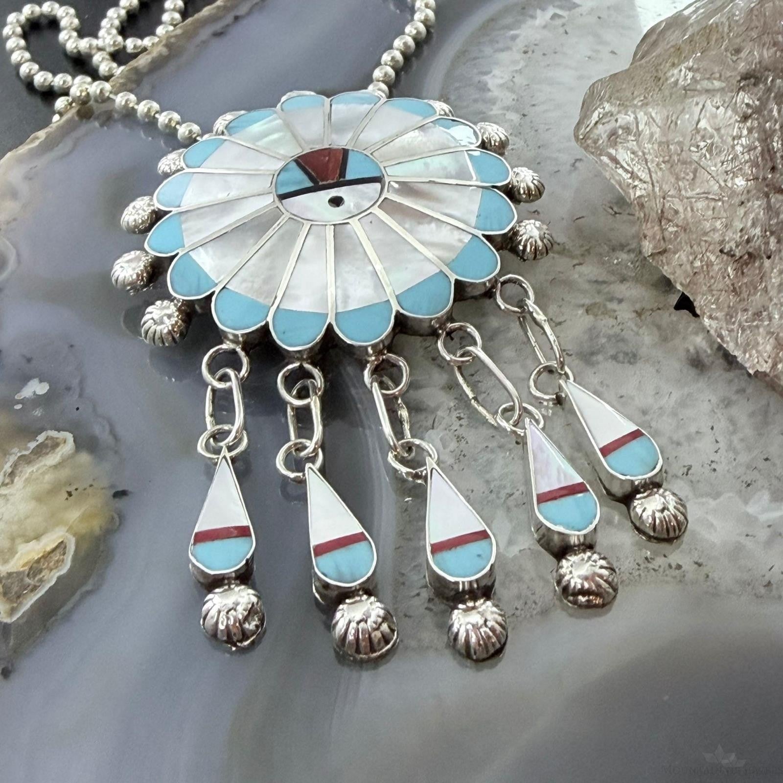 Abel Soseeah Zuni Native American Sterling Silver Inlay Sunface Pendant/Brooch For Women