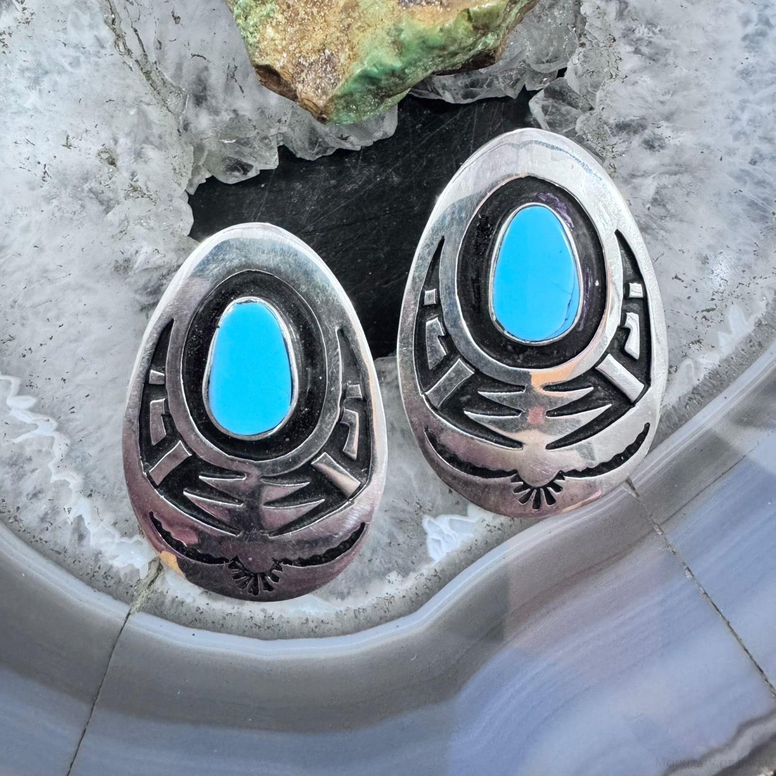 Abraham Begay Native American Sterling Silver Turquoise Overlay Post Earrings For Women
