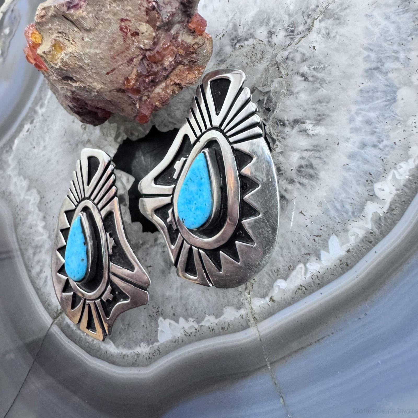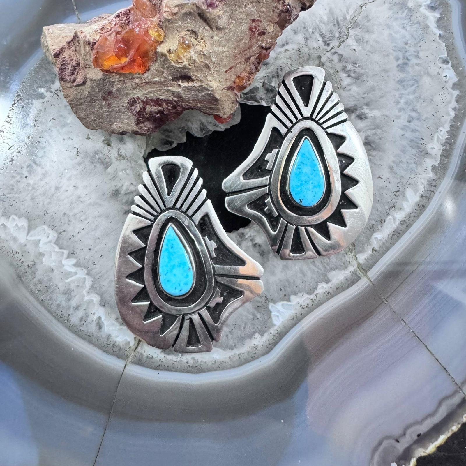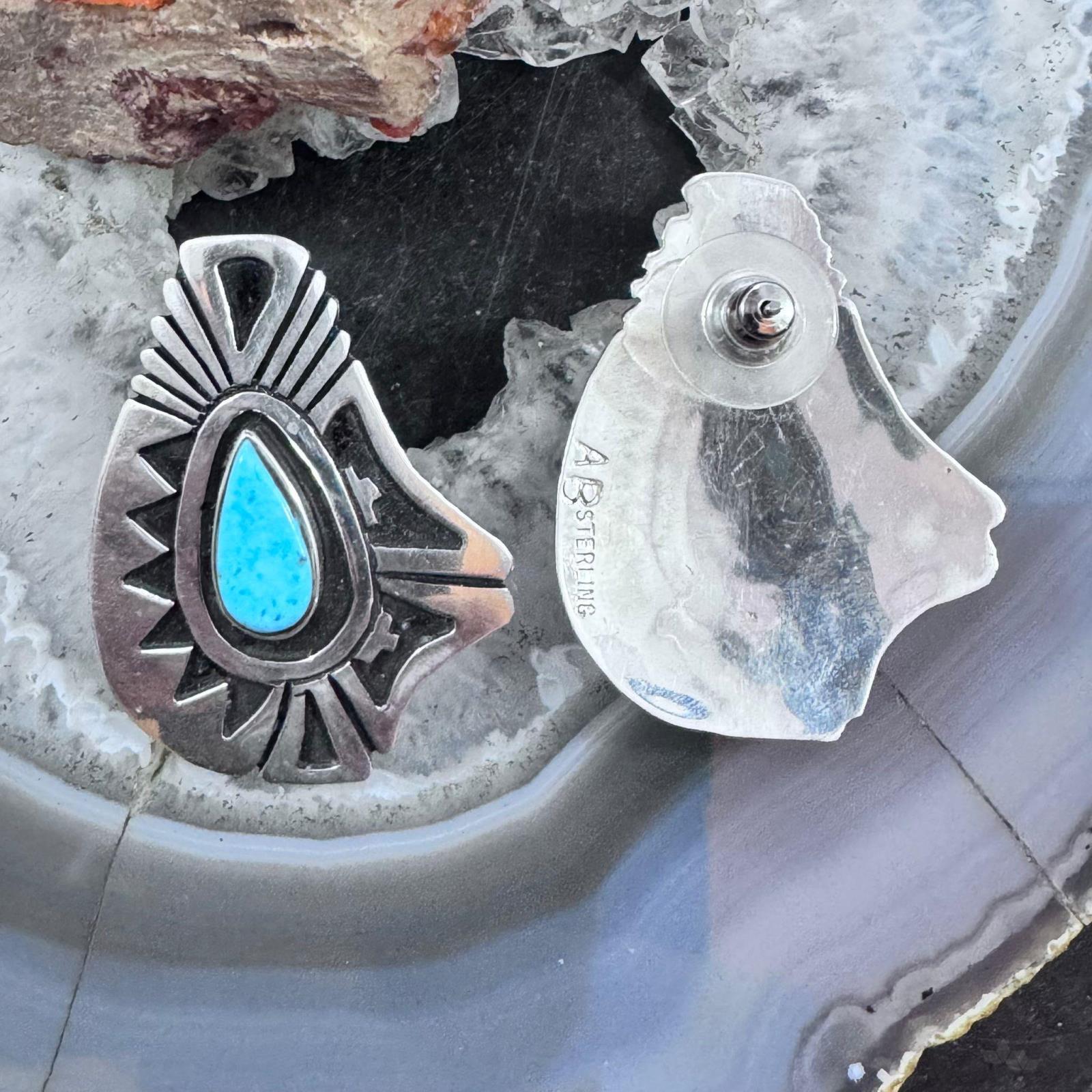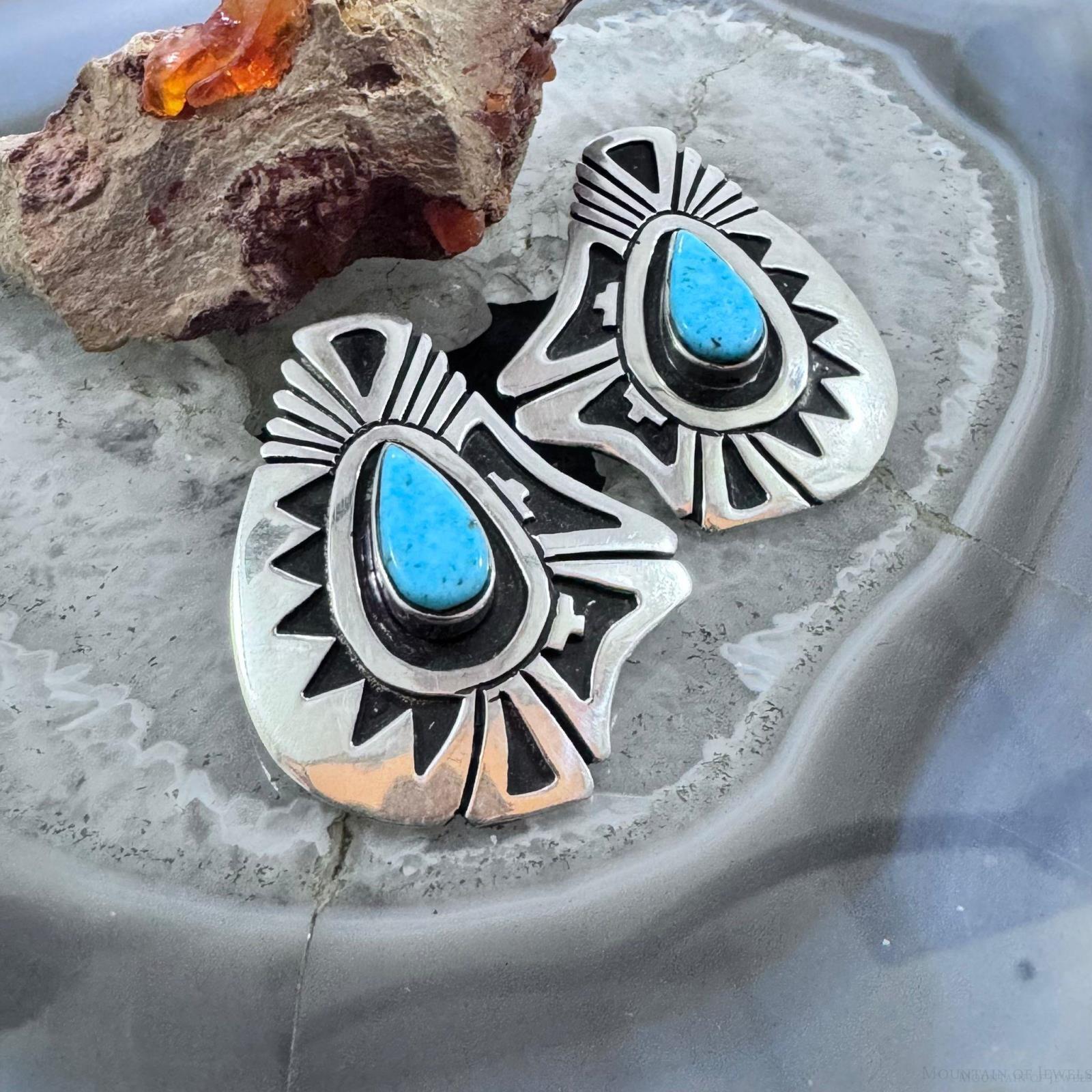 Abraham Begay Native American Sterling Silver Teardrop Turquoise Overlay Post Earrings For Women