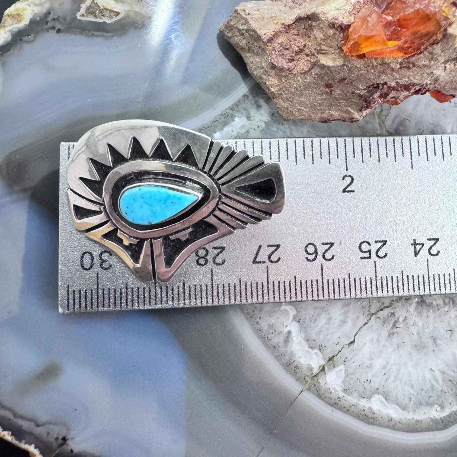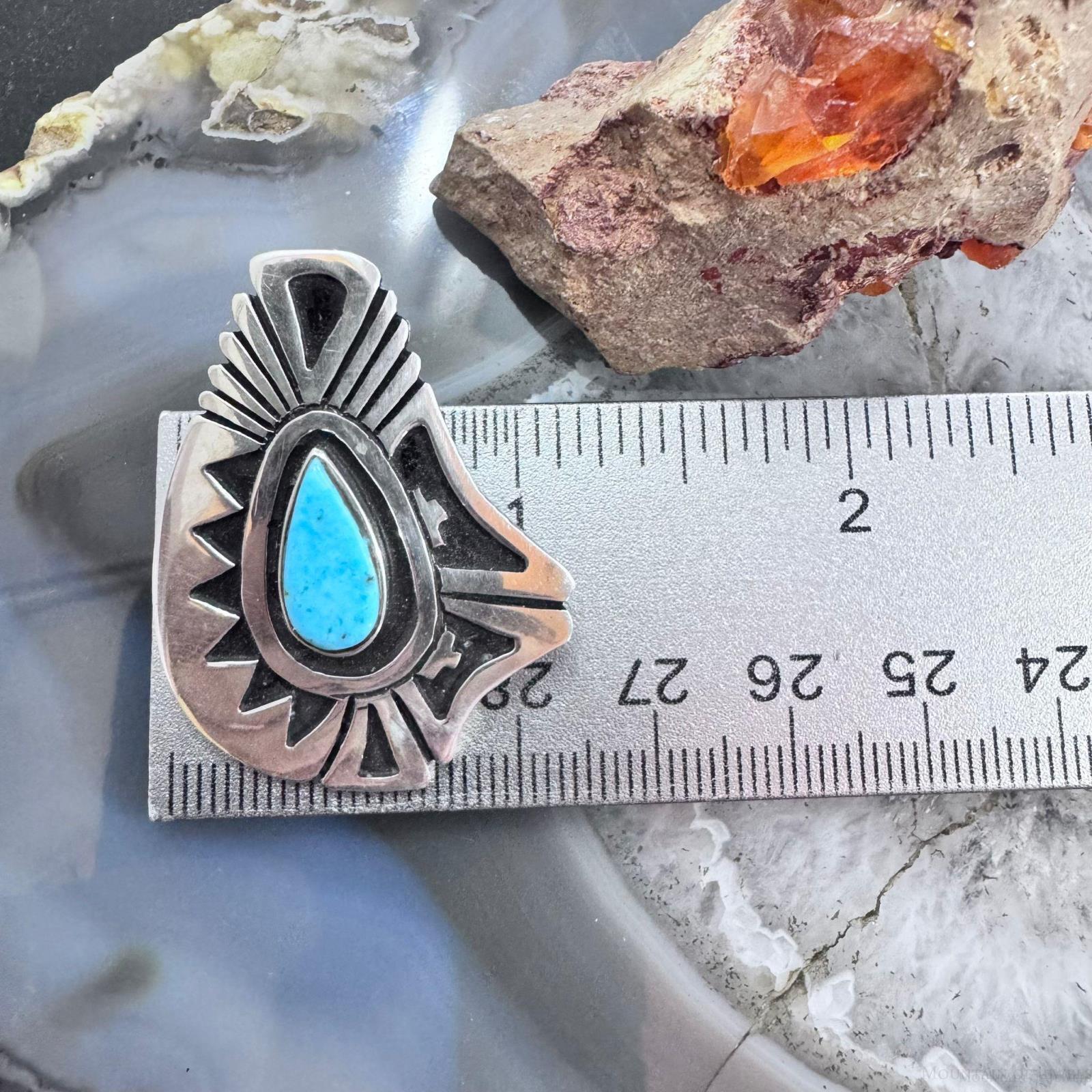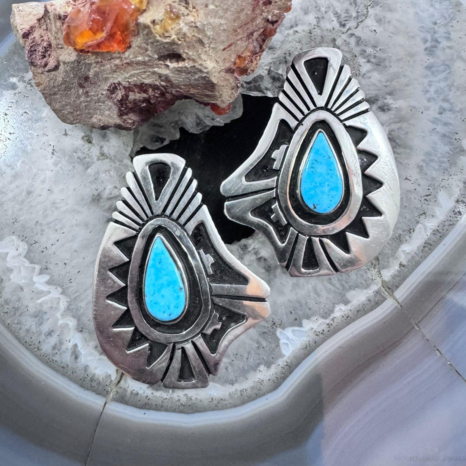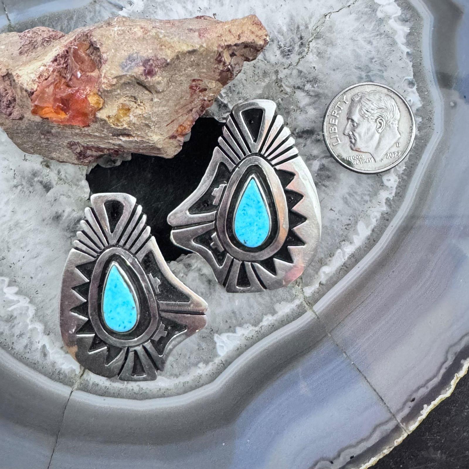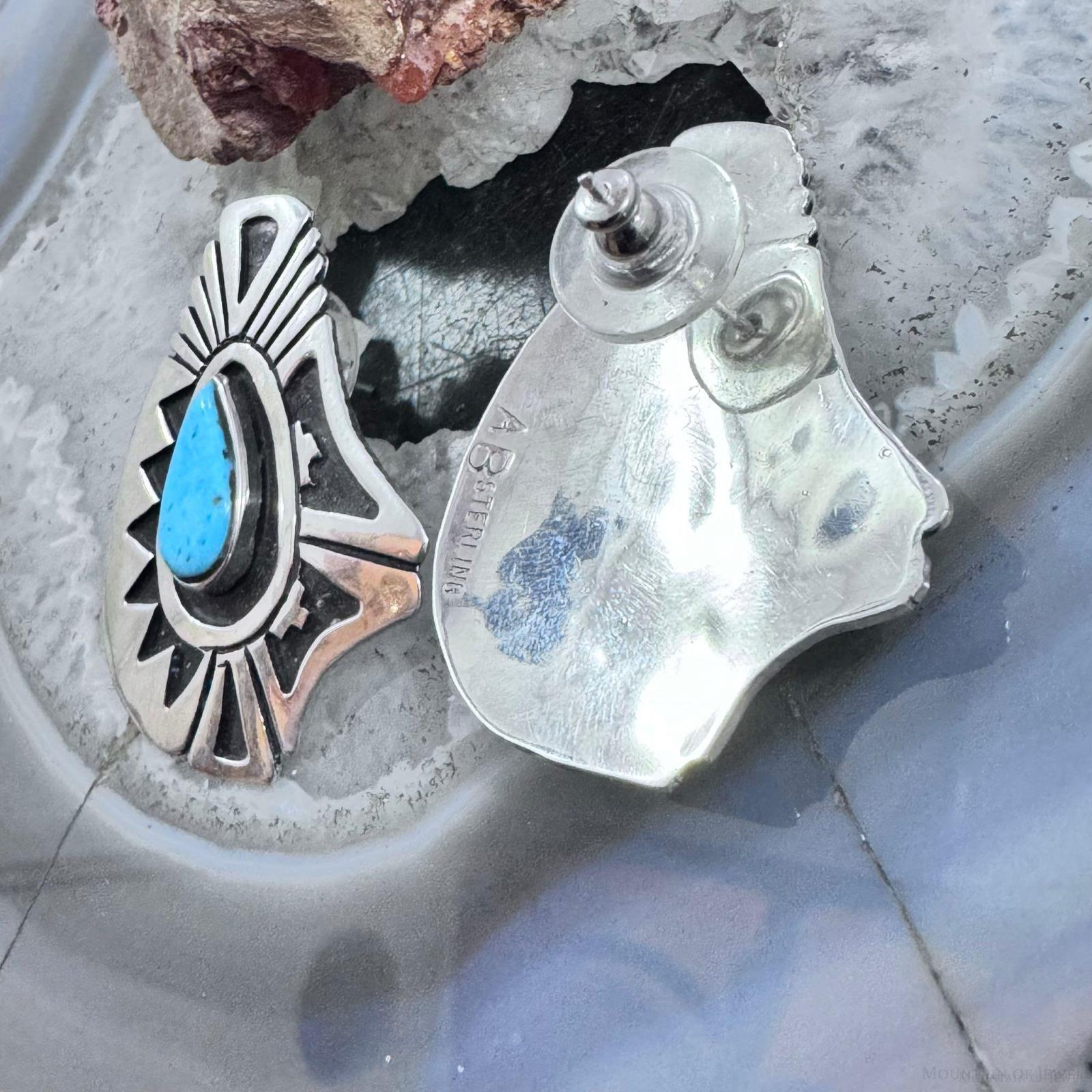 Abraham Begay Native American Sterling Silver Teardrop Turquoise Overlay Post Earrings For Women