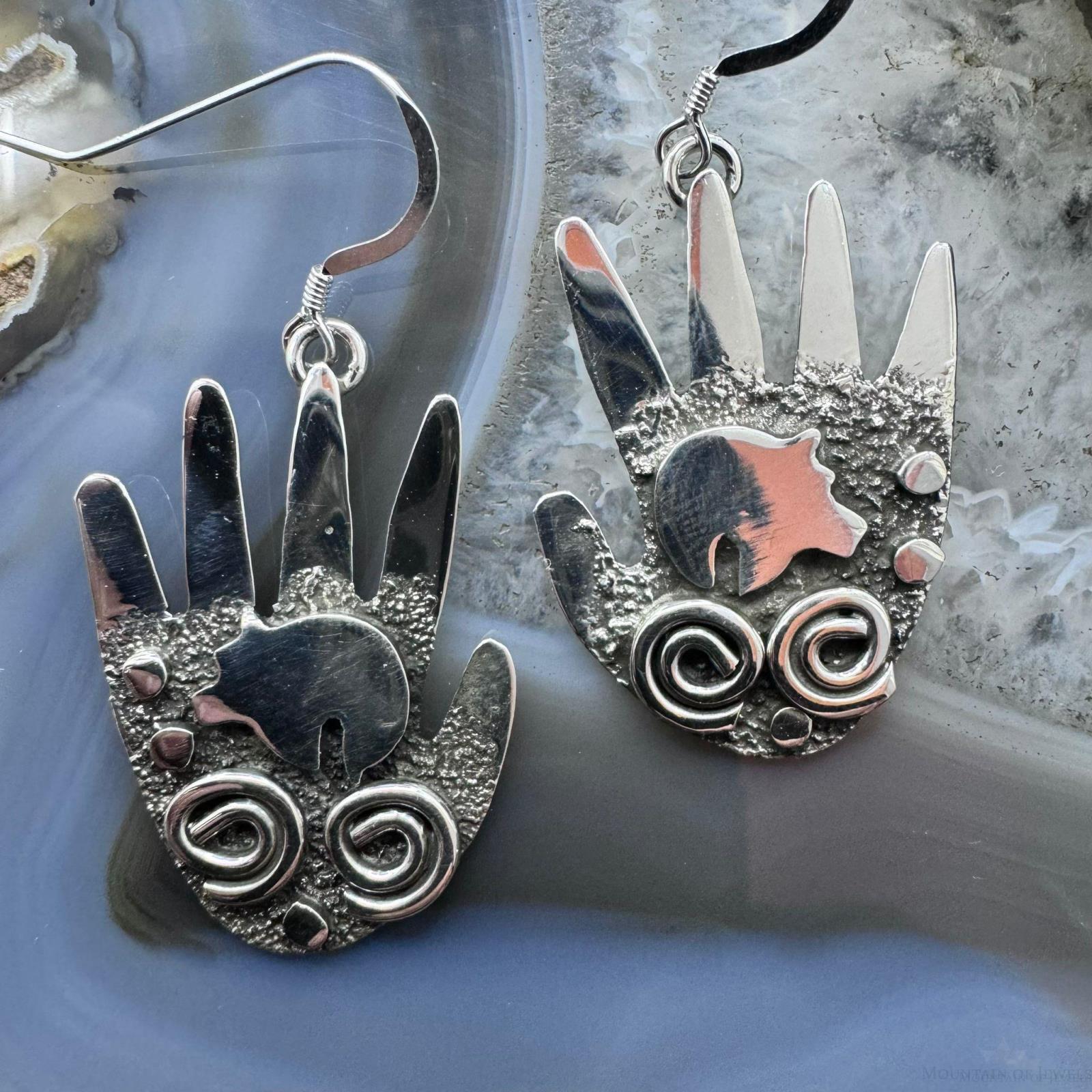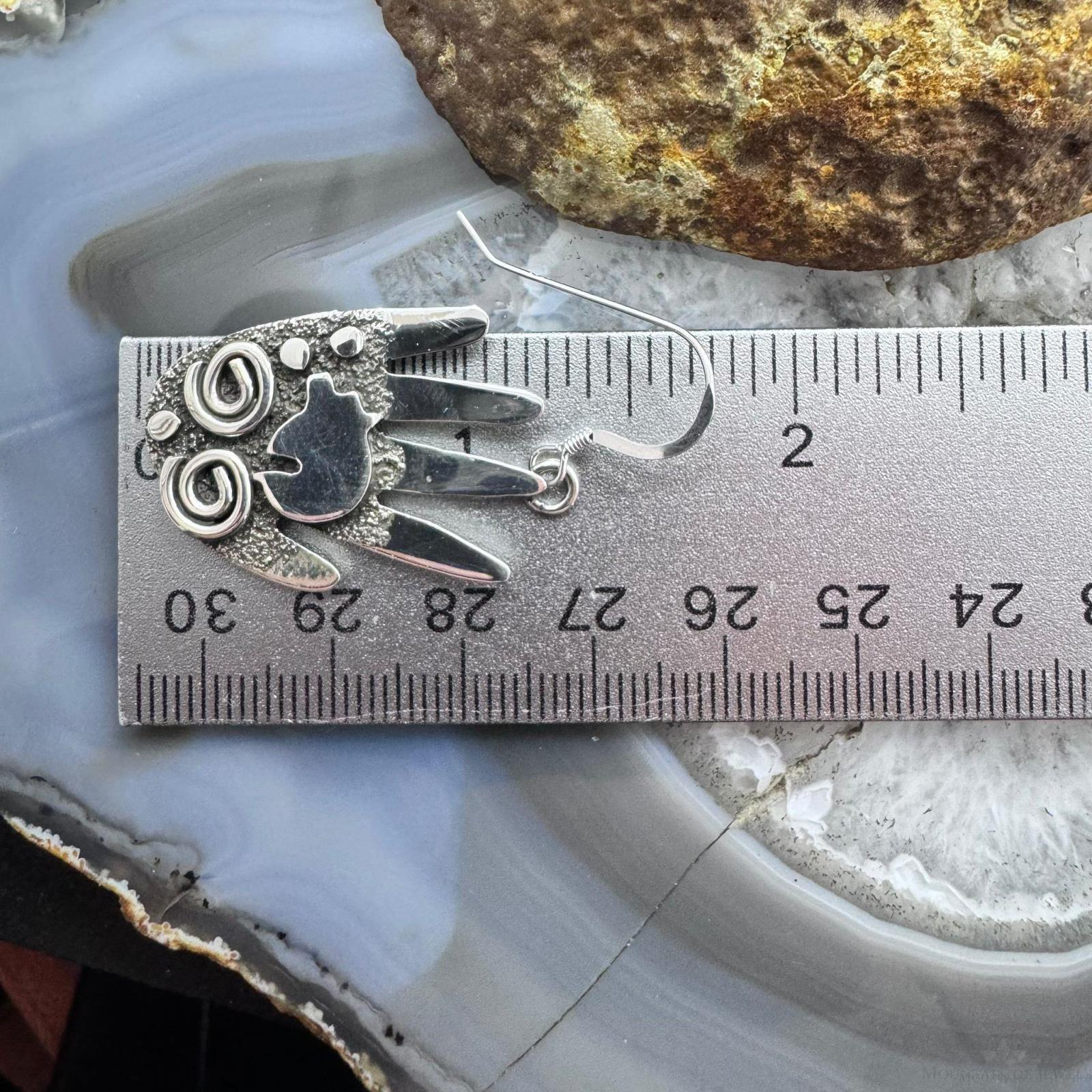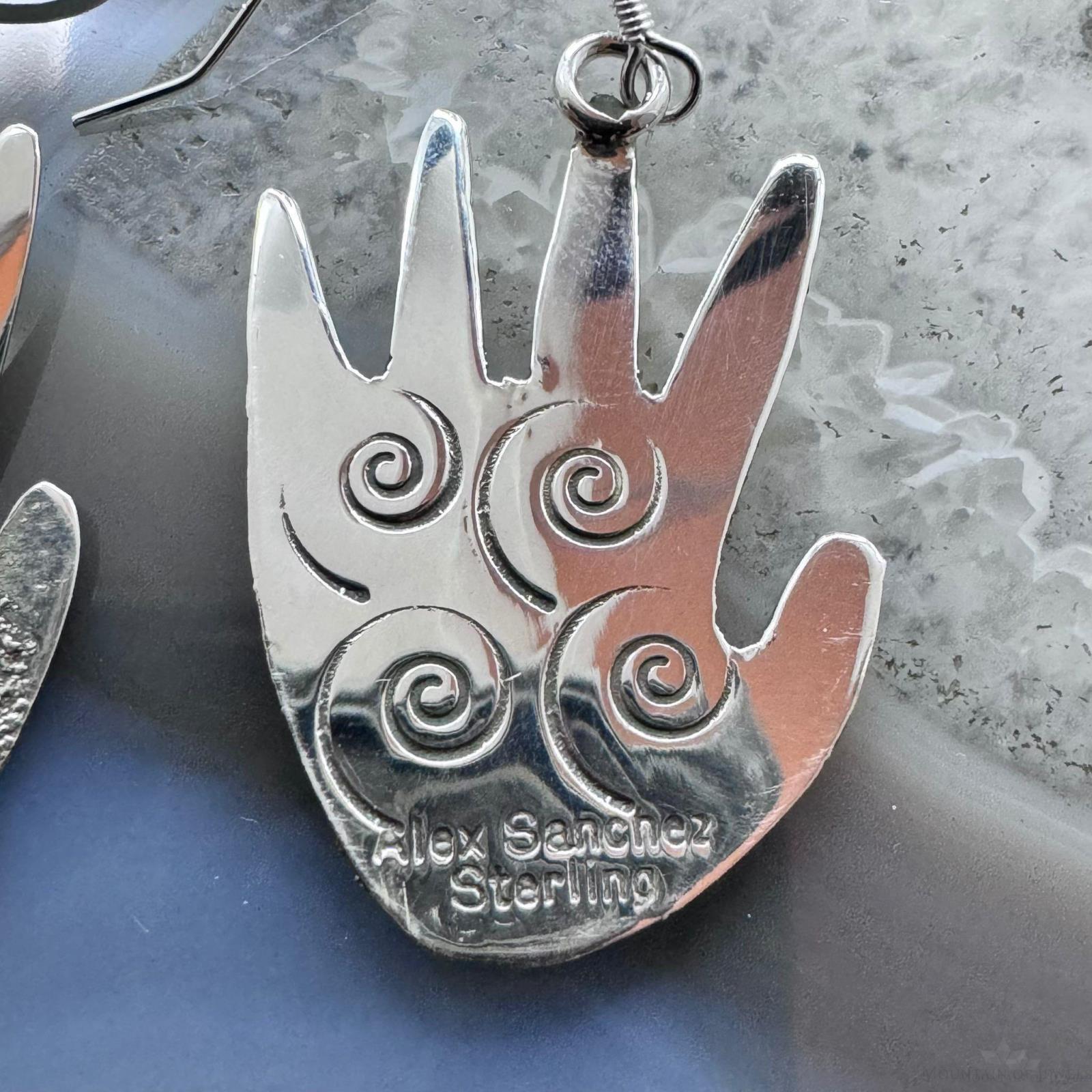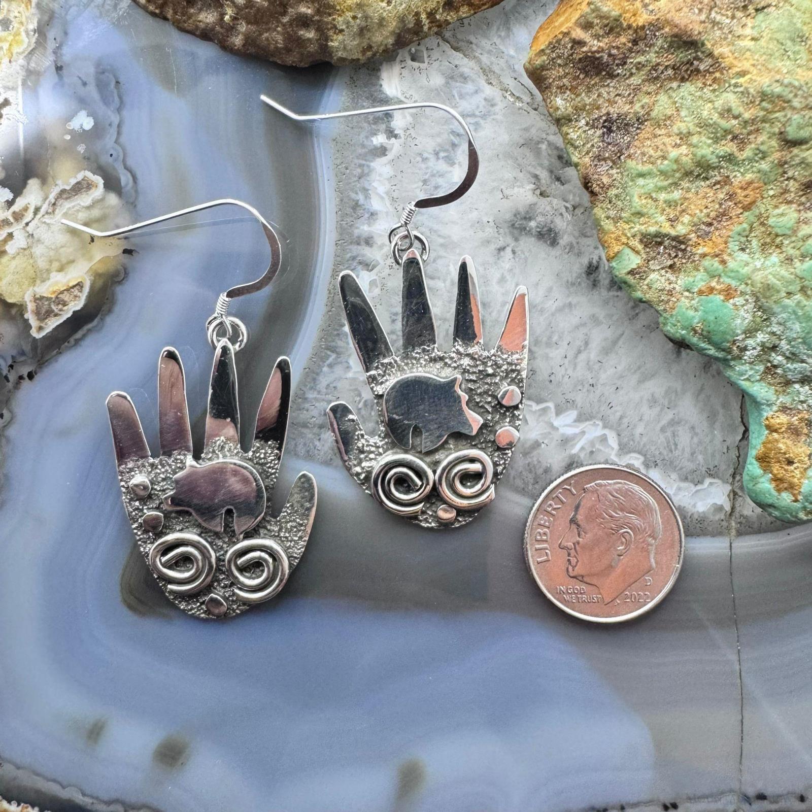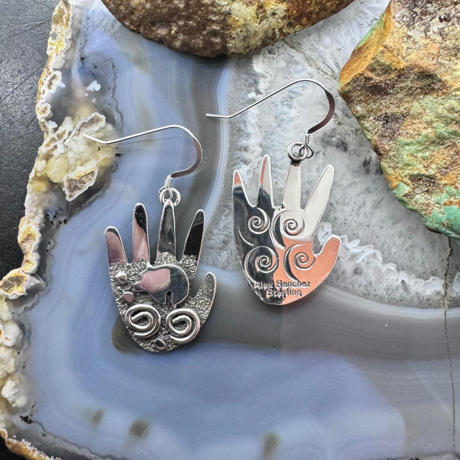 Alex Sanchez Sterling Silver Ancestors Hand Petroglyph Dangle Earrings For Women