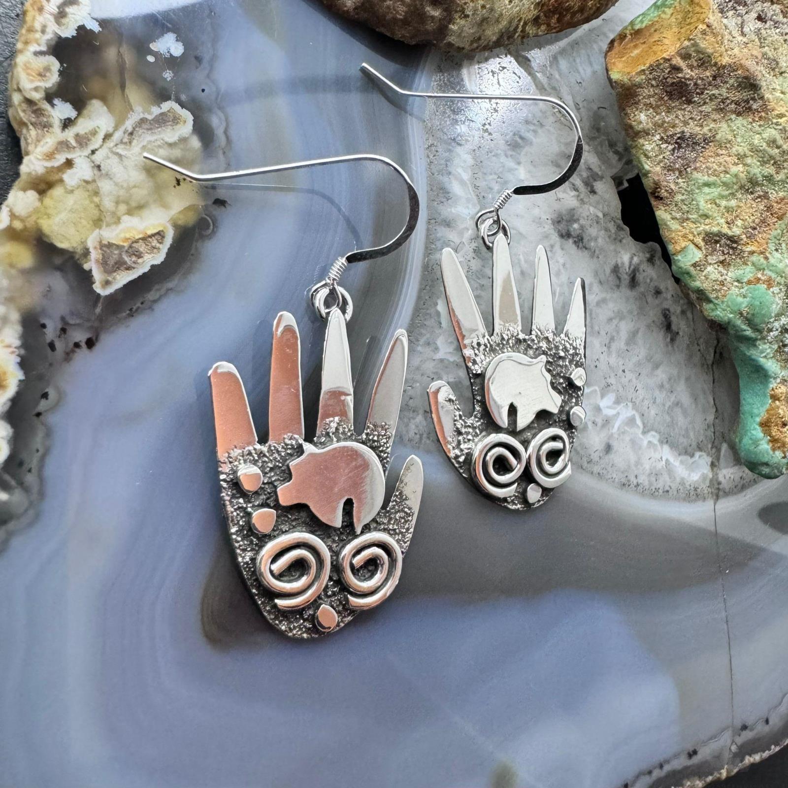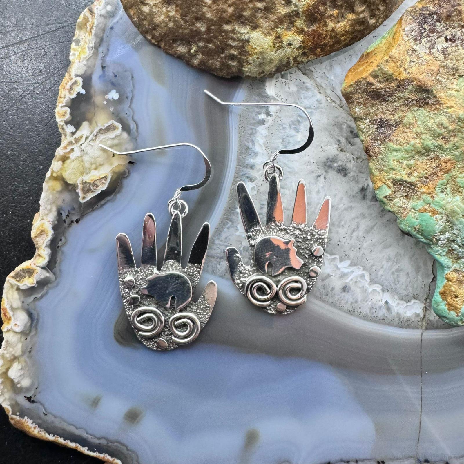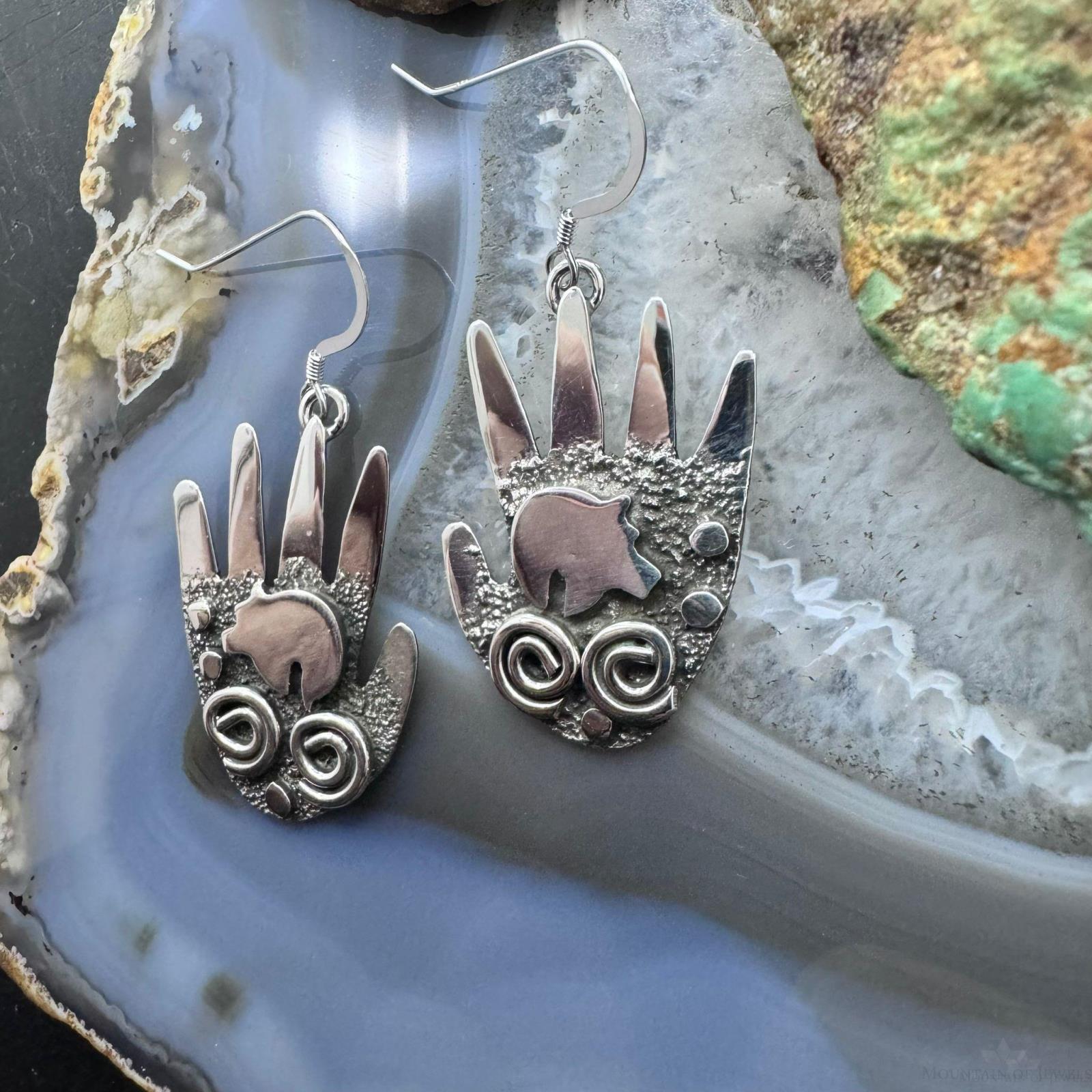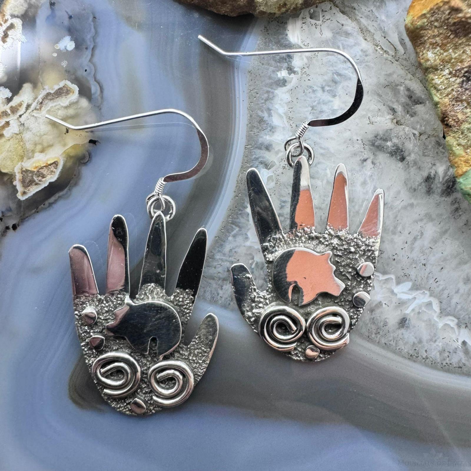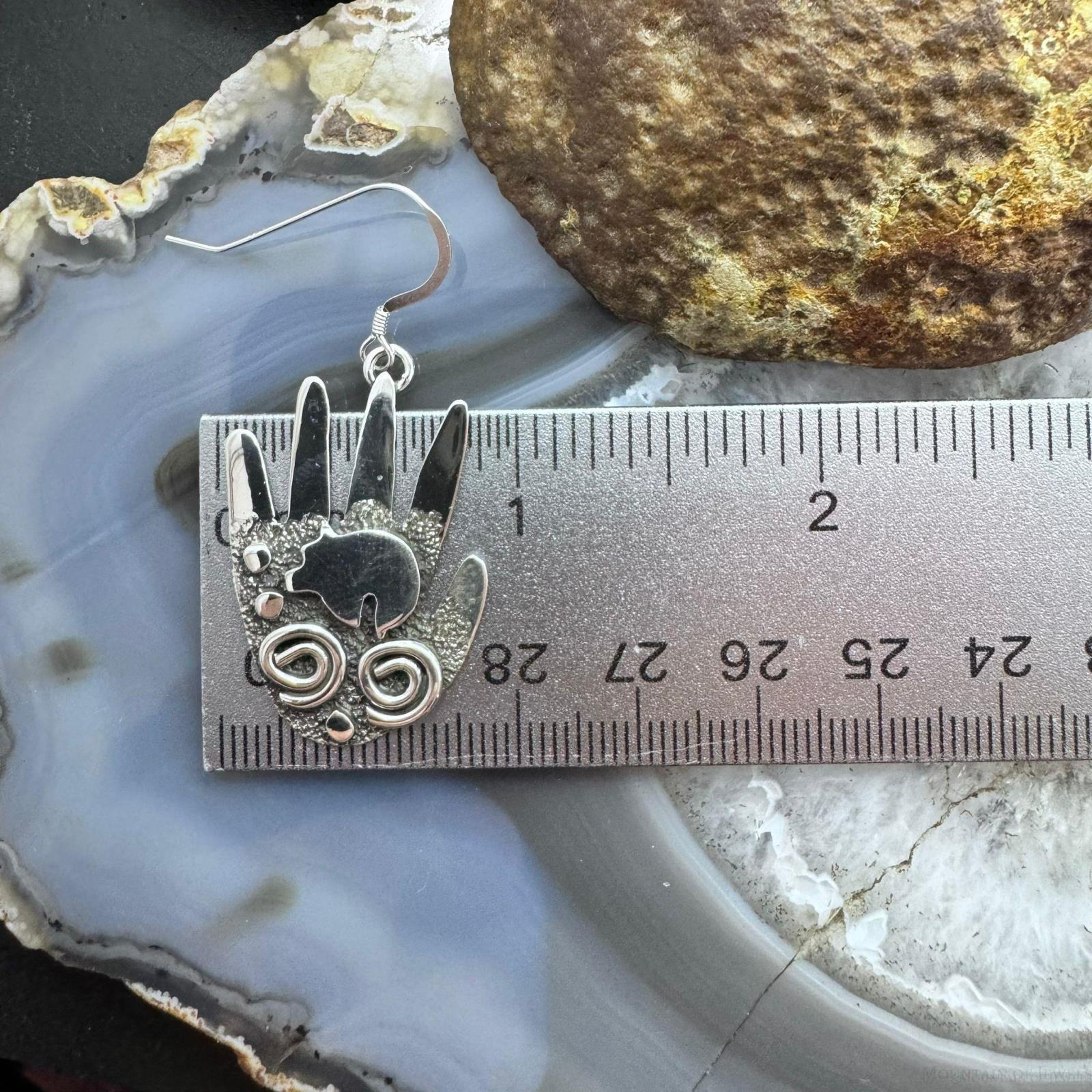 Alex Sanchez Sterling Silver Ancestors Hand Petroglyph Dangle Earrings For Women