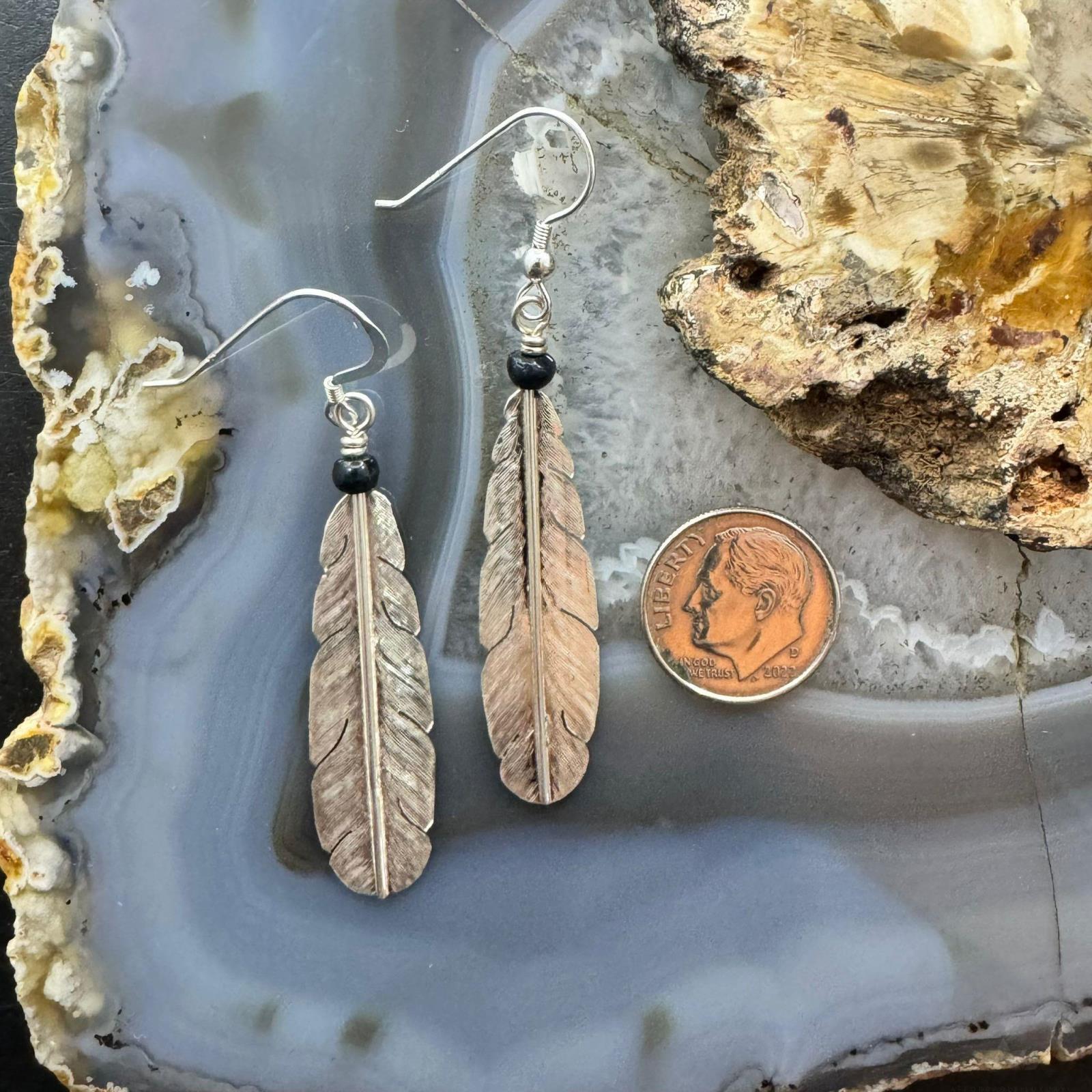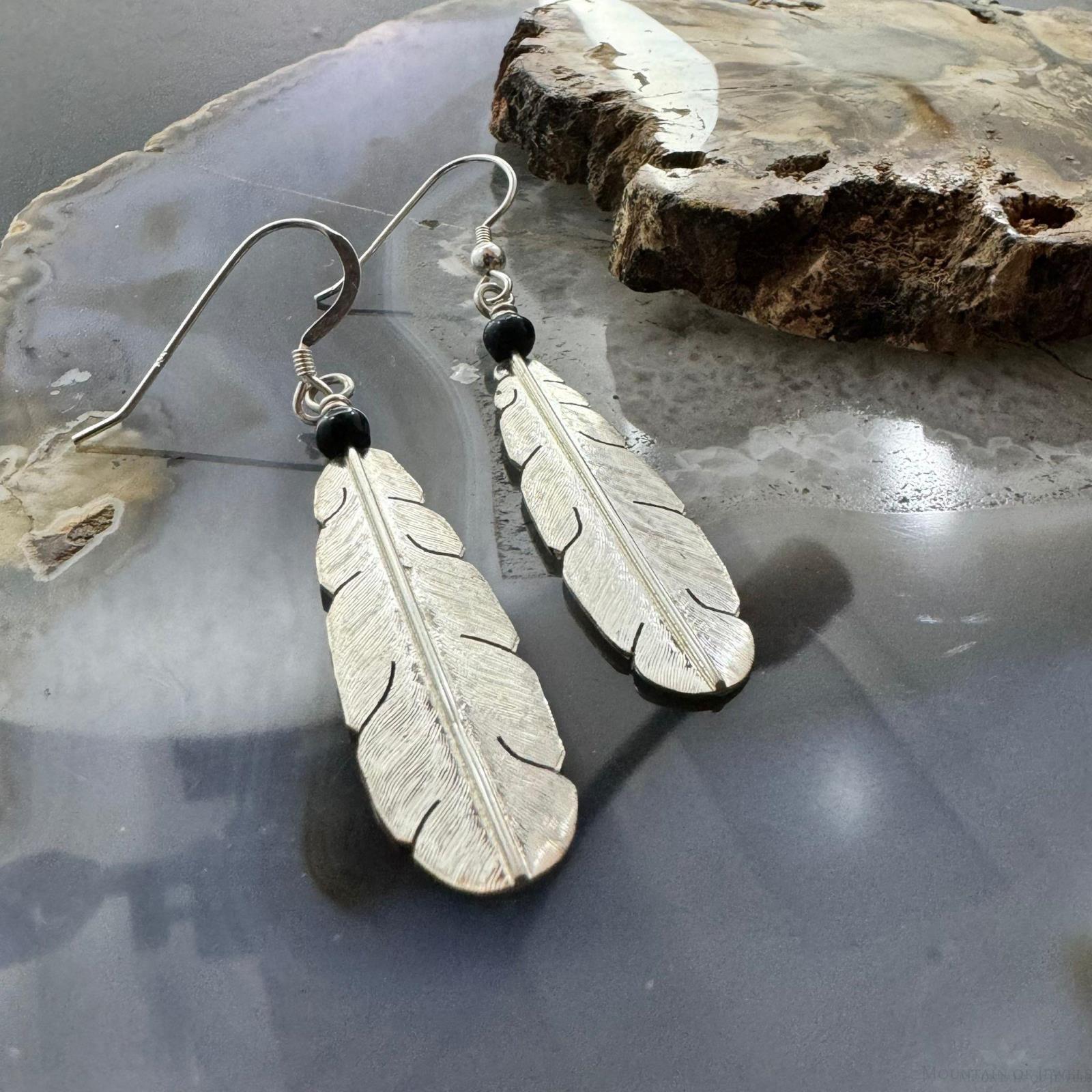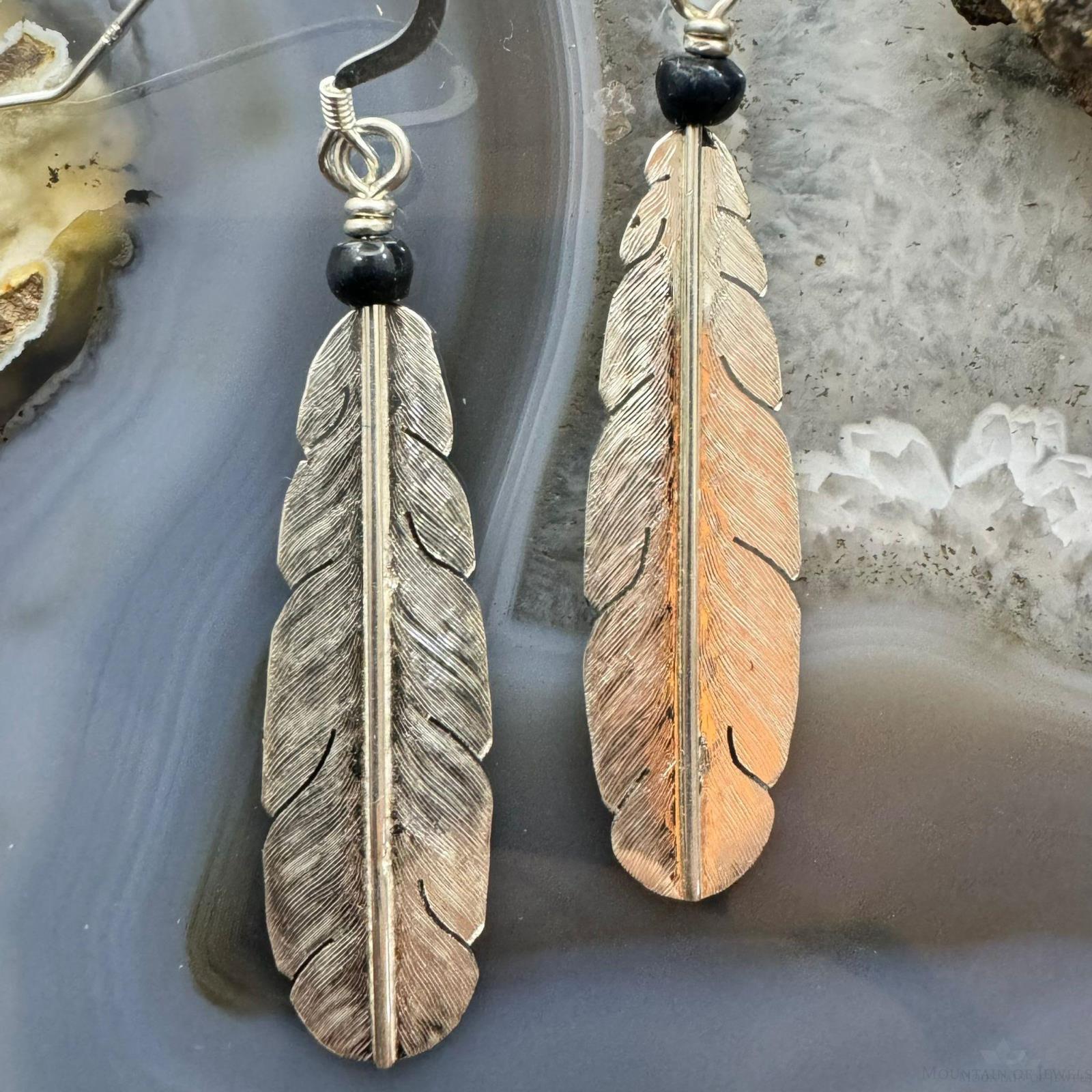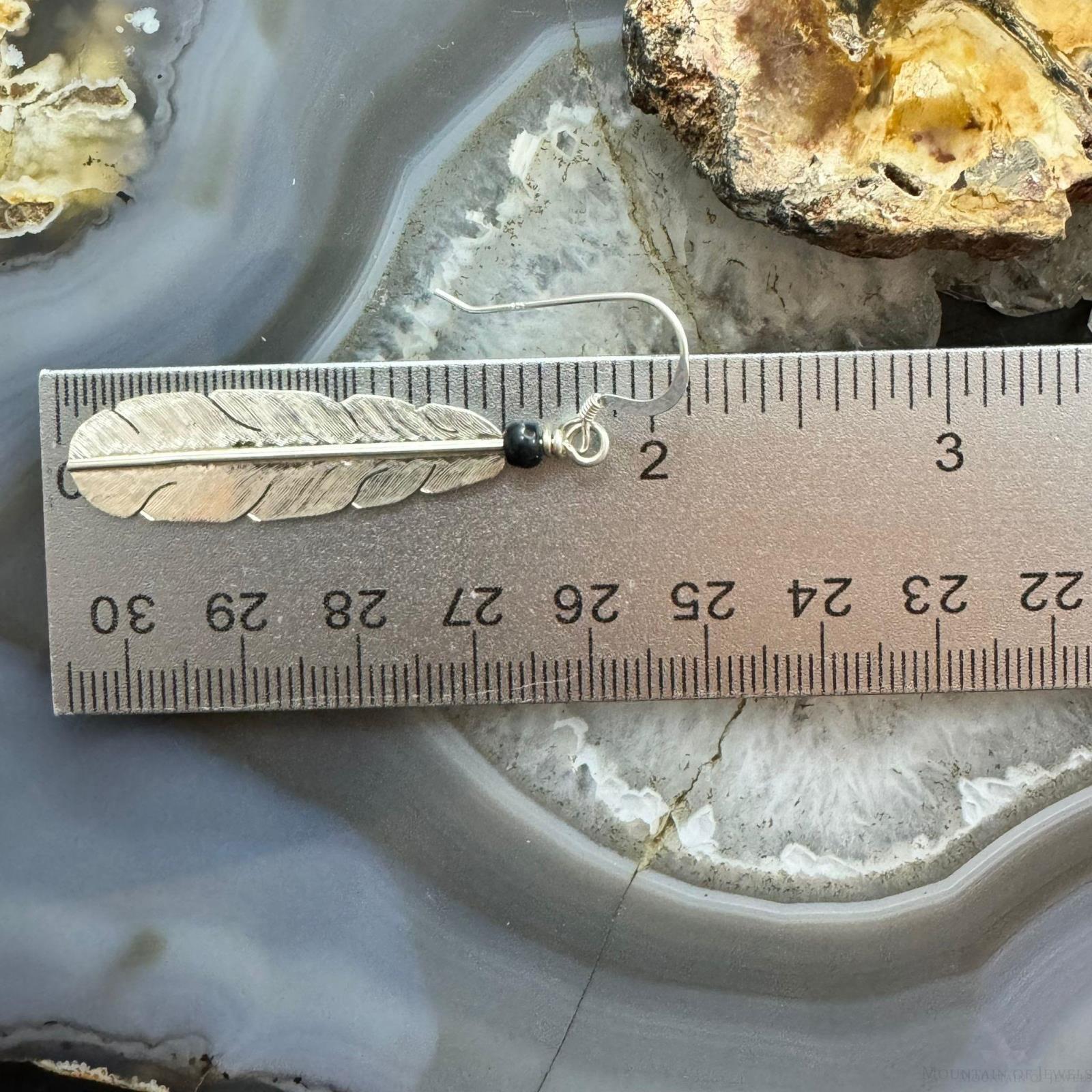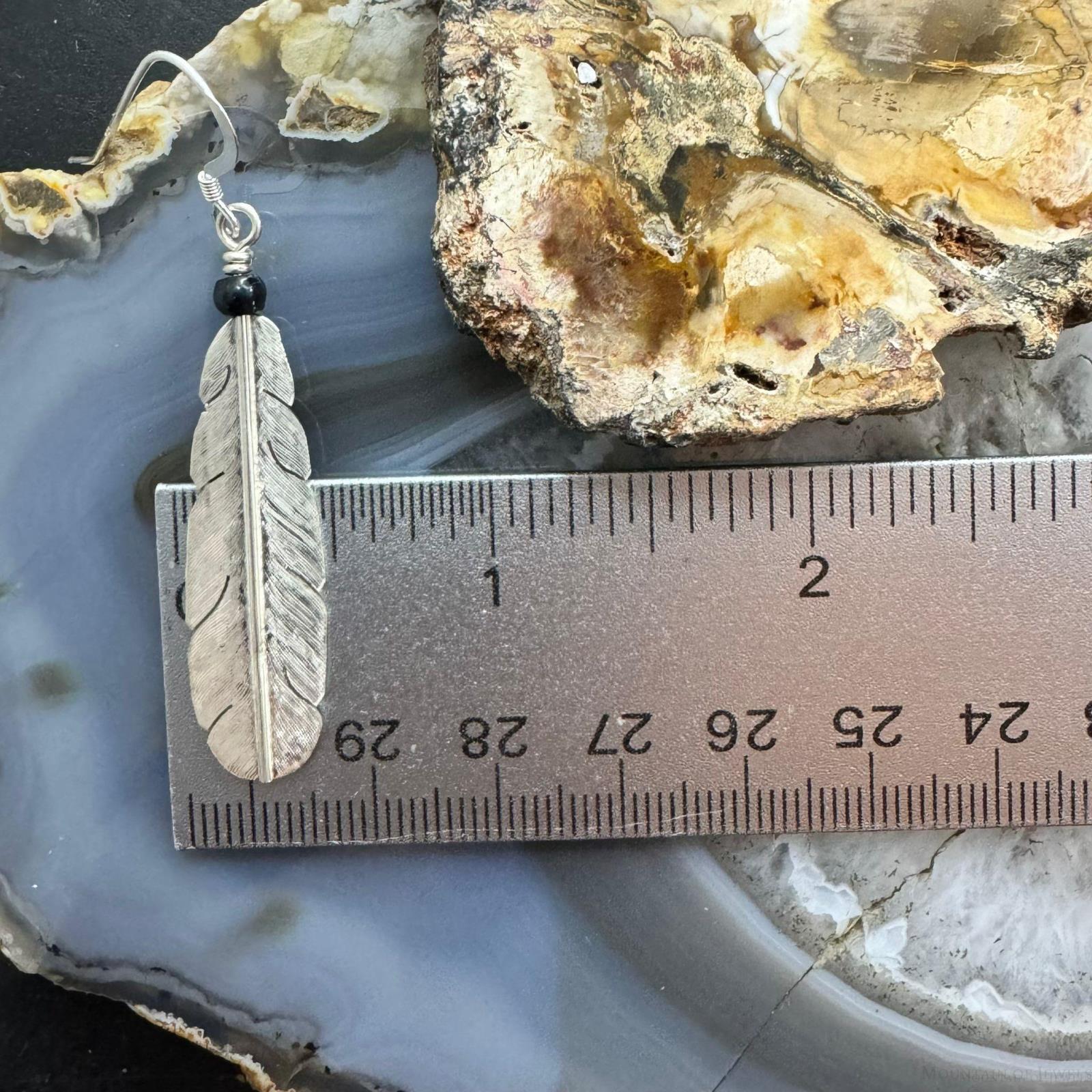Anthony Gatewood Sterling Silver & Onyx Bead Feather Dangle Earrings For Women