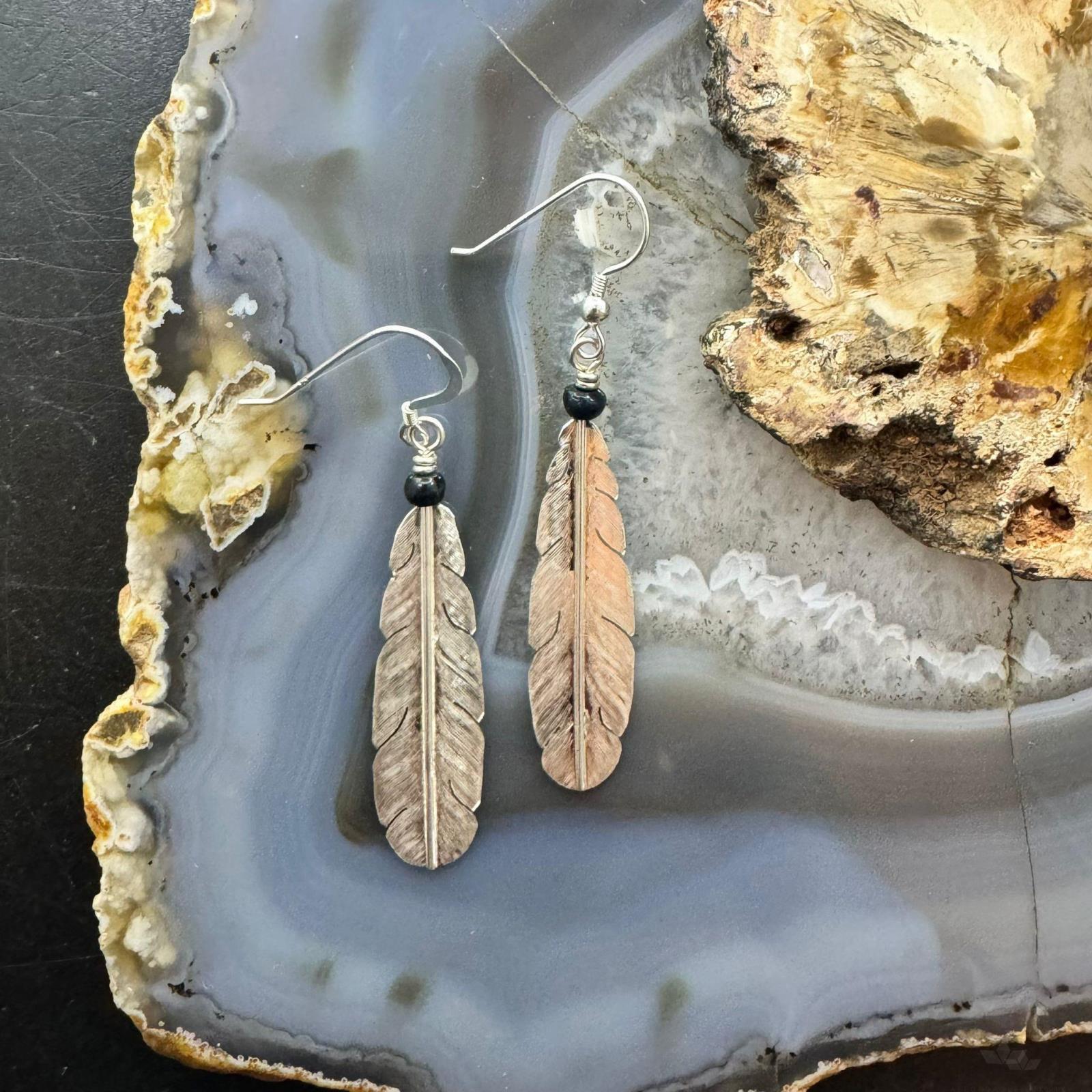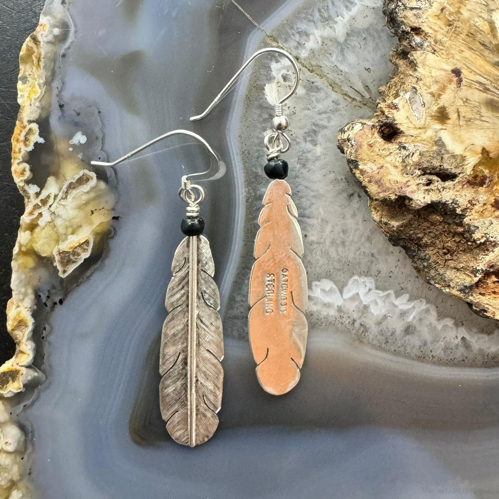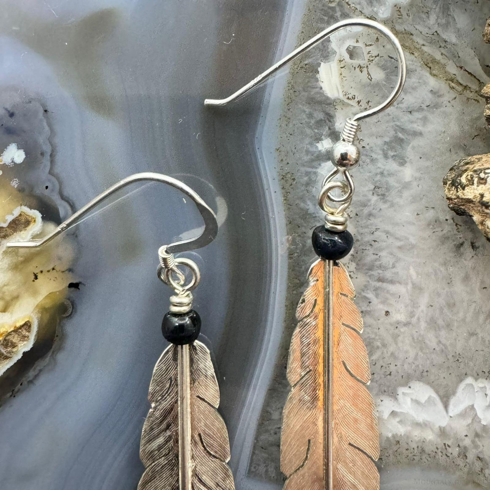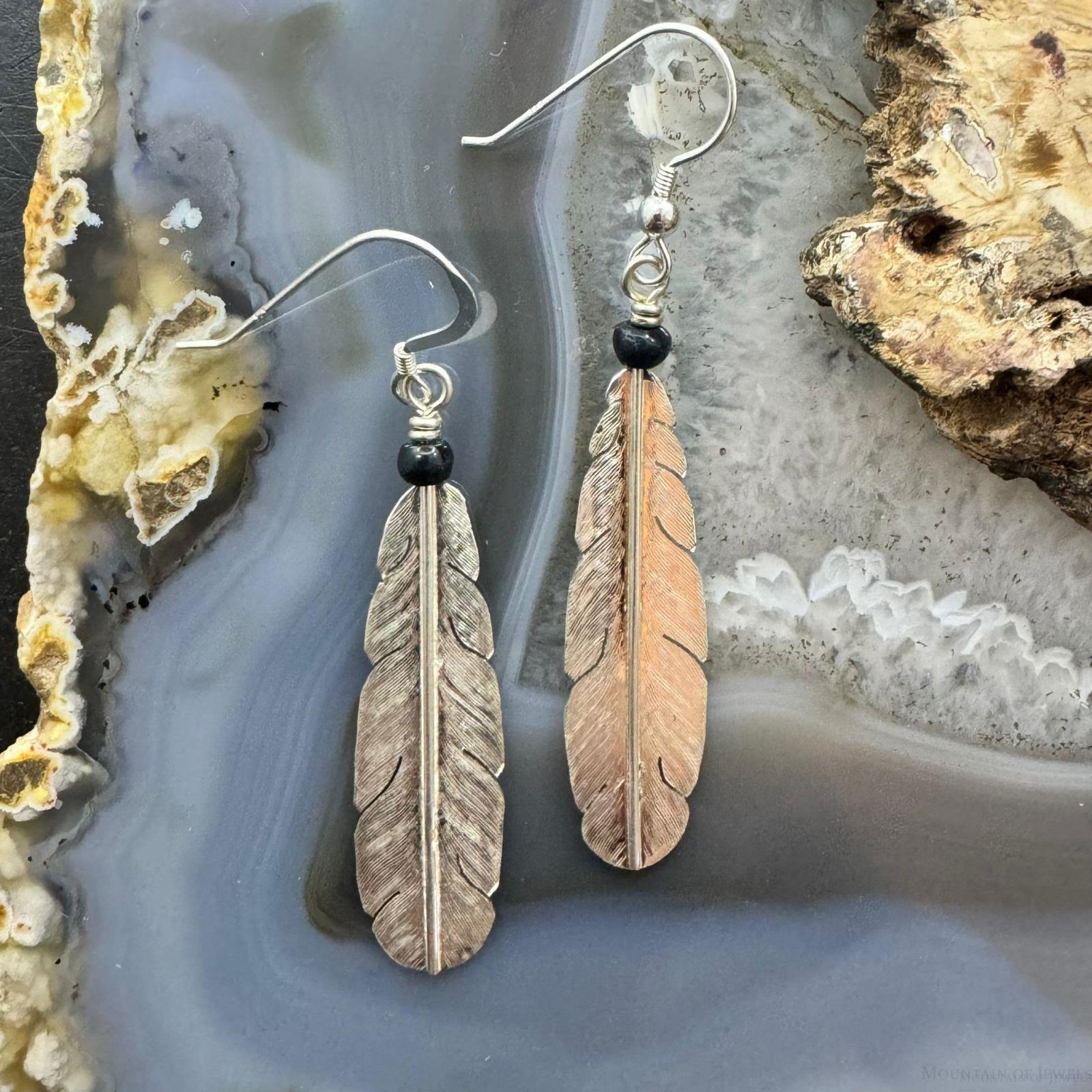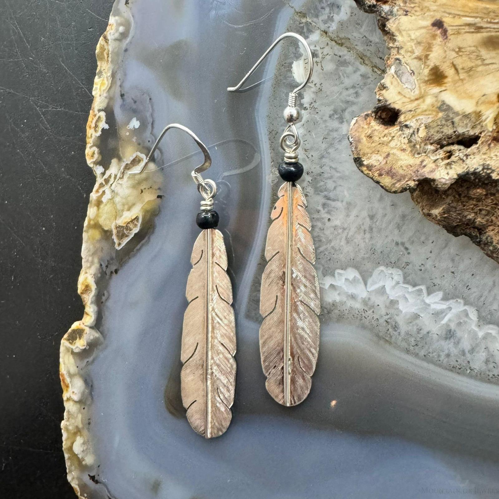 Anthony Gatewood Sterling Silver & Onyx Bead Feather Dangle Earrings For Women