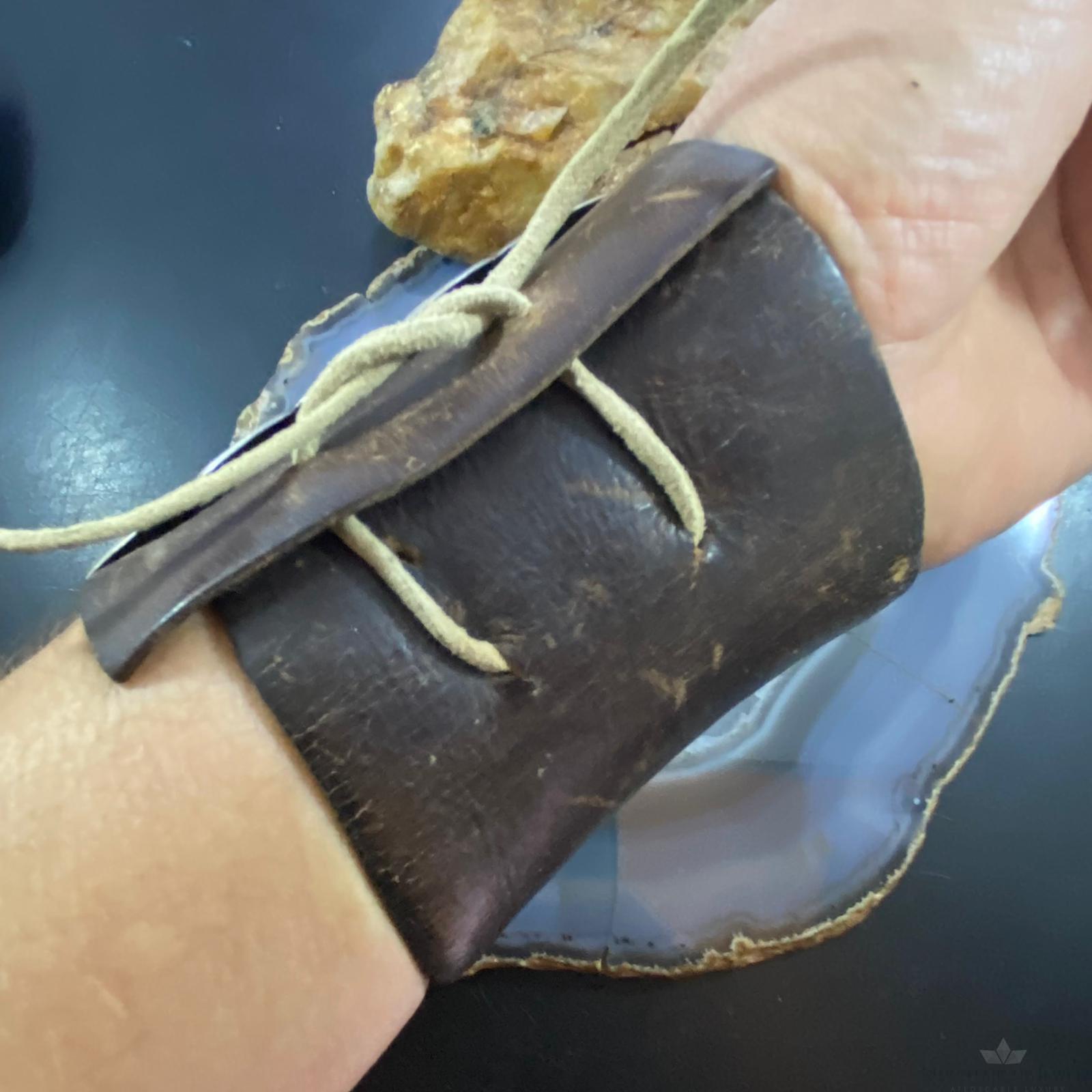 This Incredible Bow Guard Bracelet Features Gorgeous Stones and Intricate Silver Work on an Attractive Piece of Leather. This Stunning Rustic Piece Displays Signs That it Was Worn and Used. A Perfect Gift For That Very Special Man.