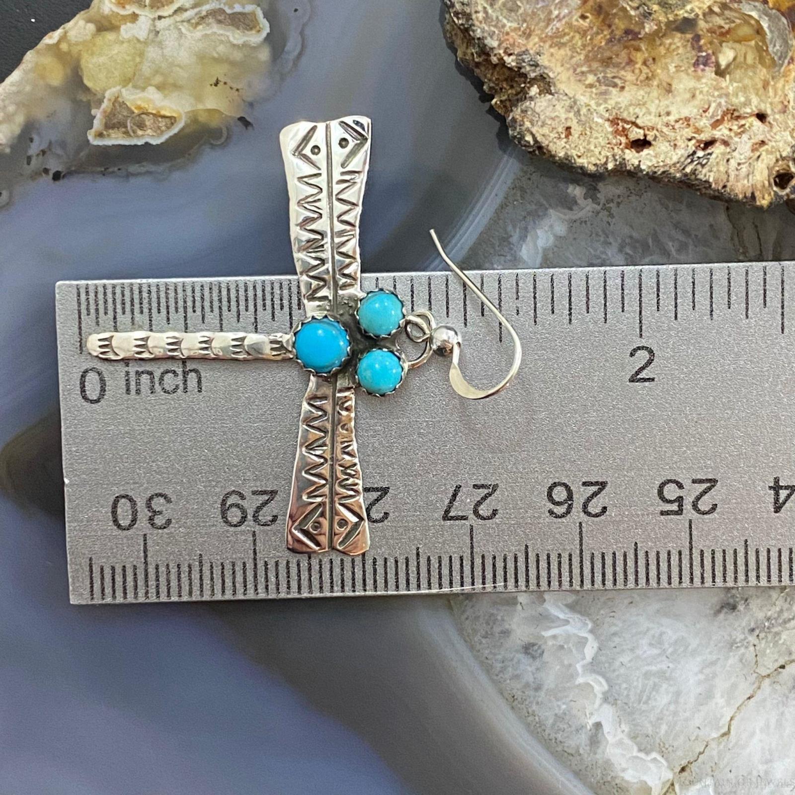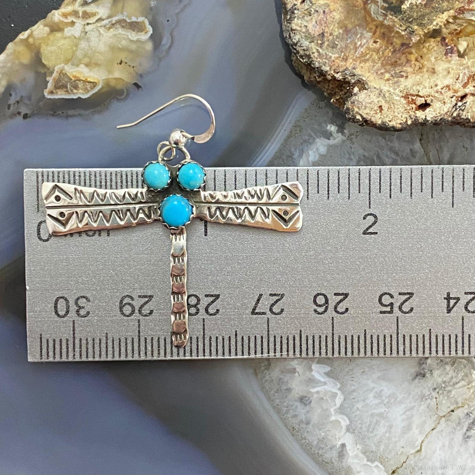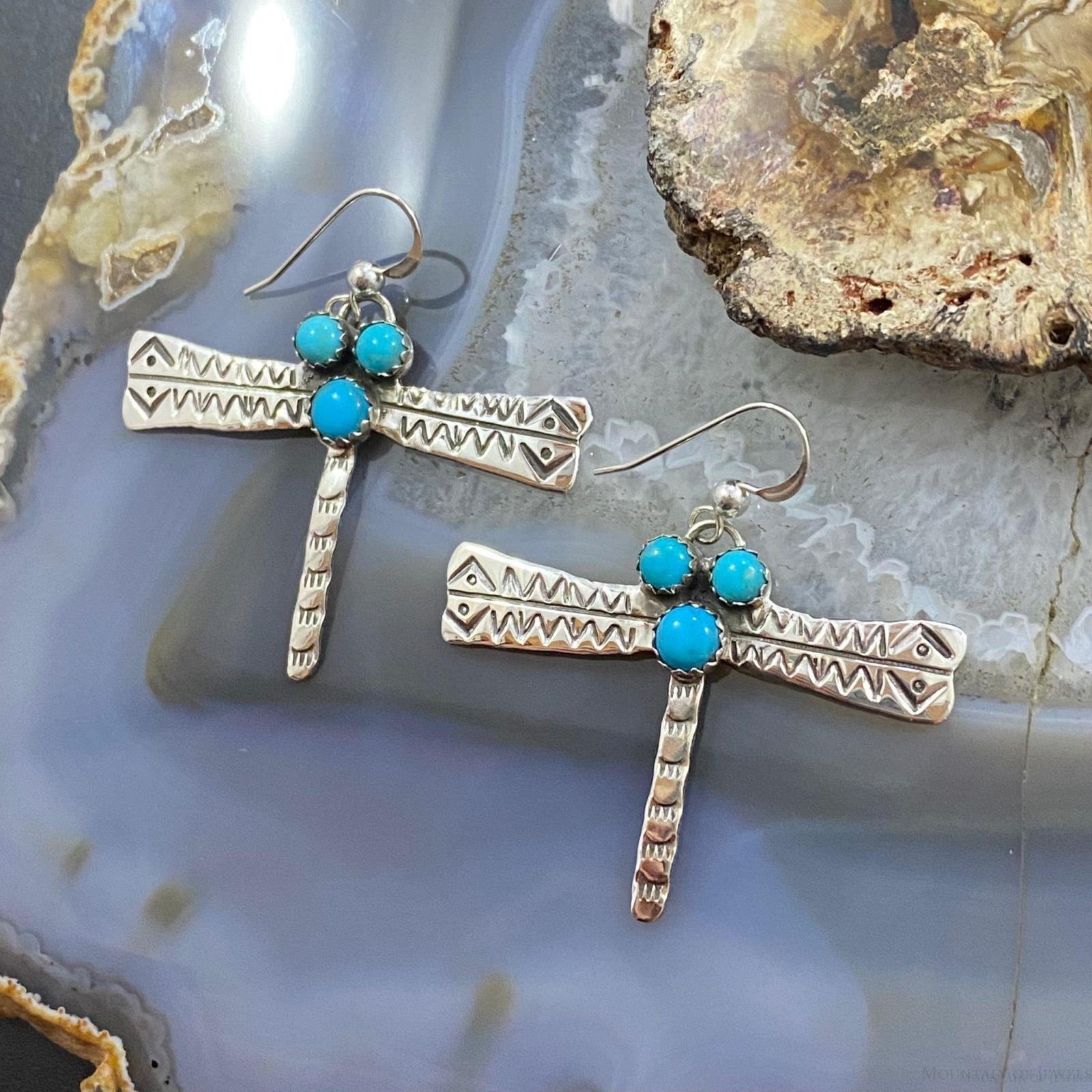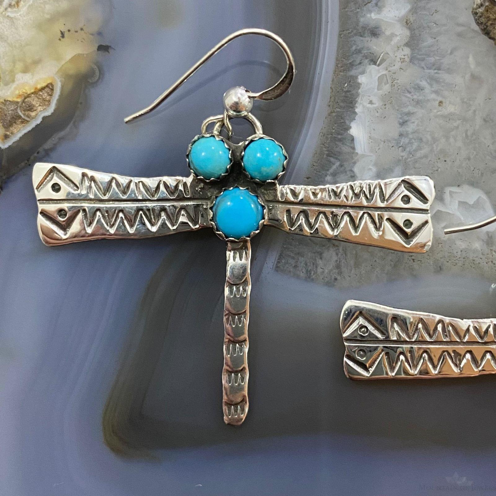 Brad Panteah Sterling Dragonfly w/3 Sleeping Beauty Turquoise Dangle Earrings For Women