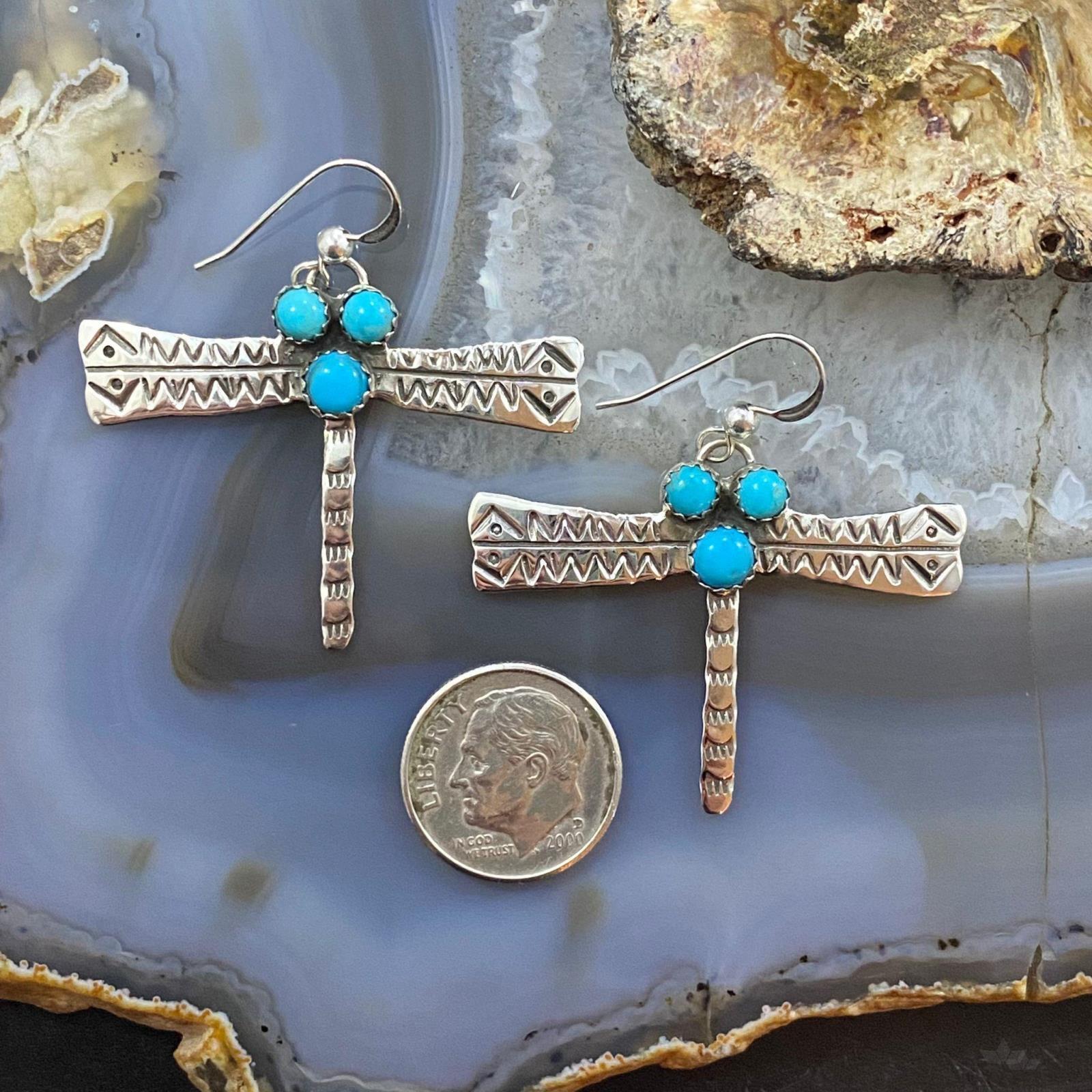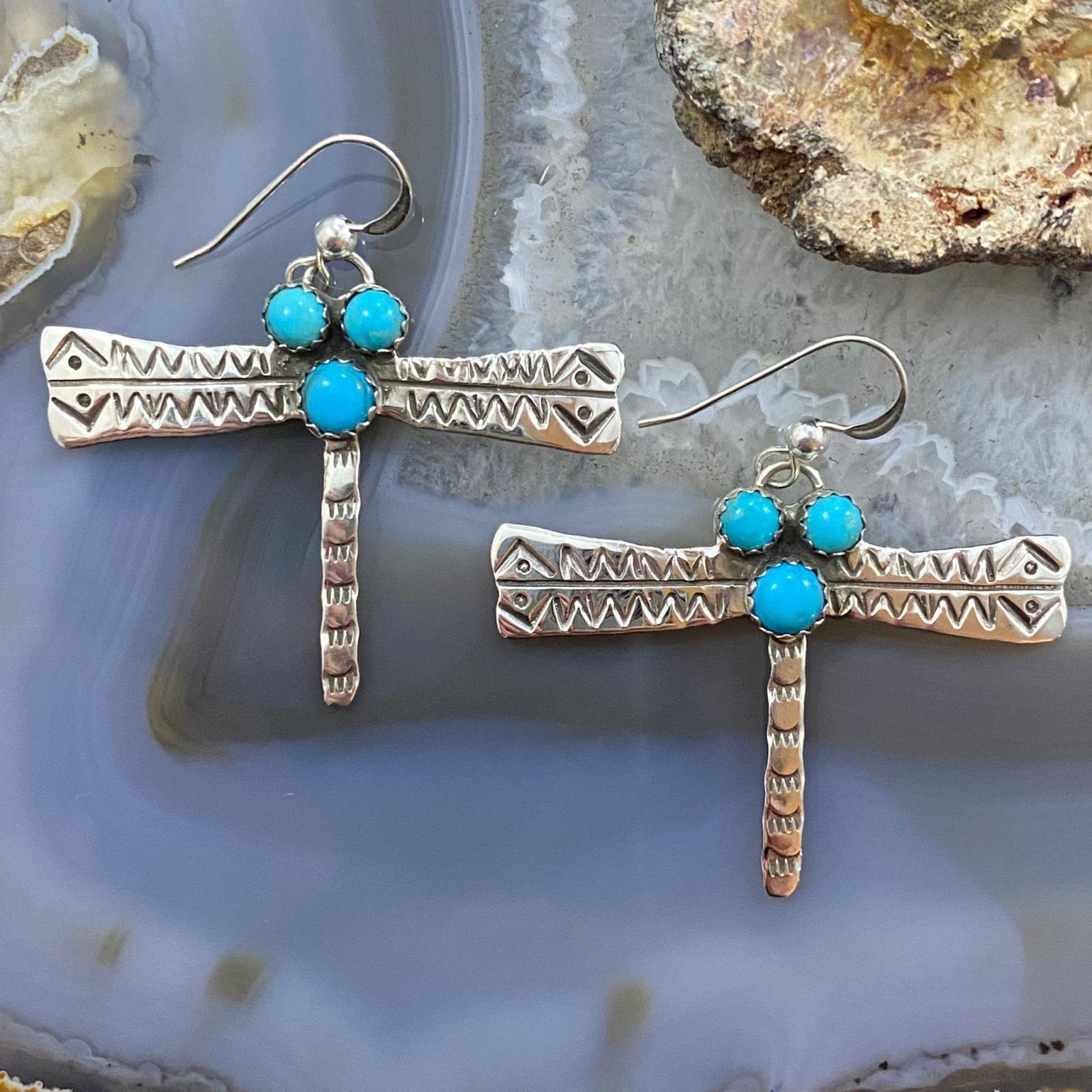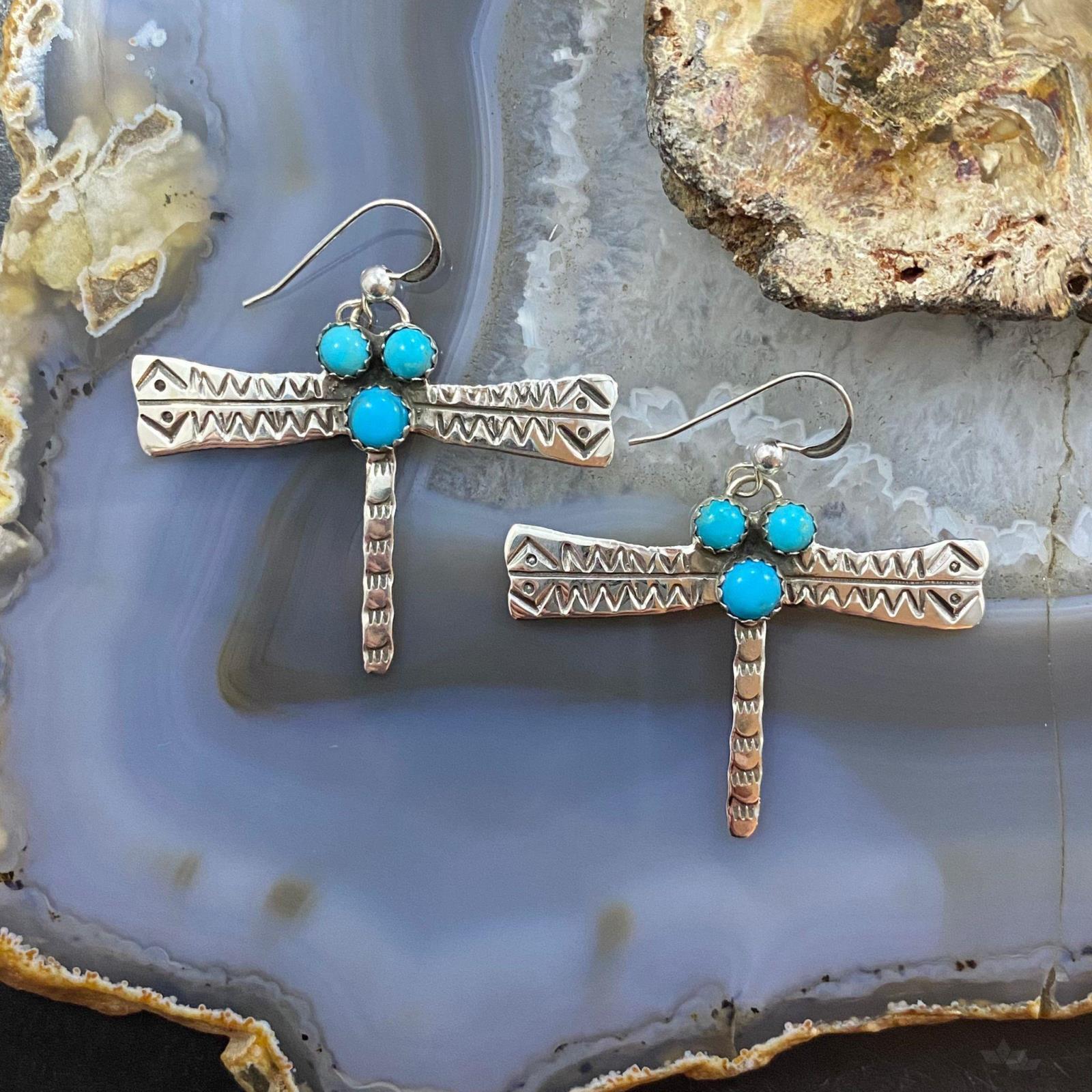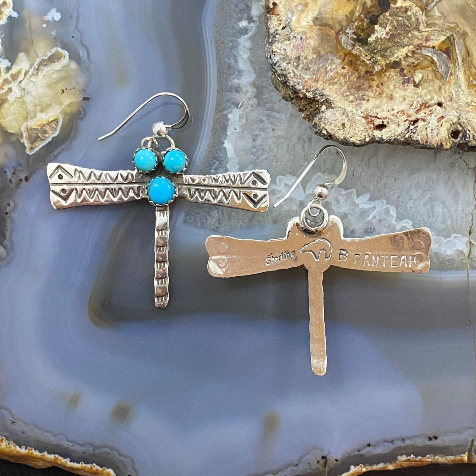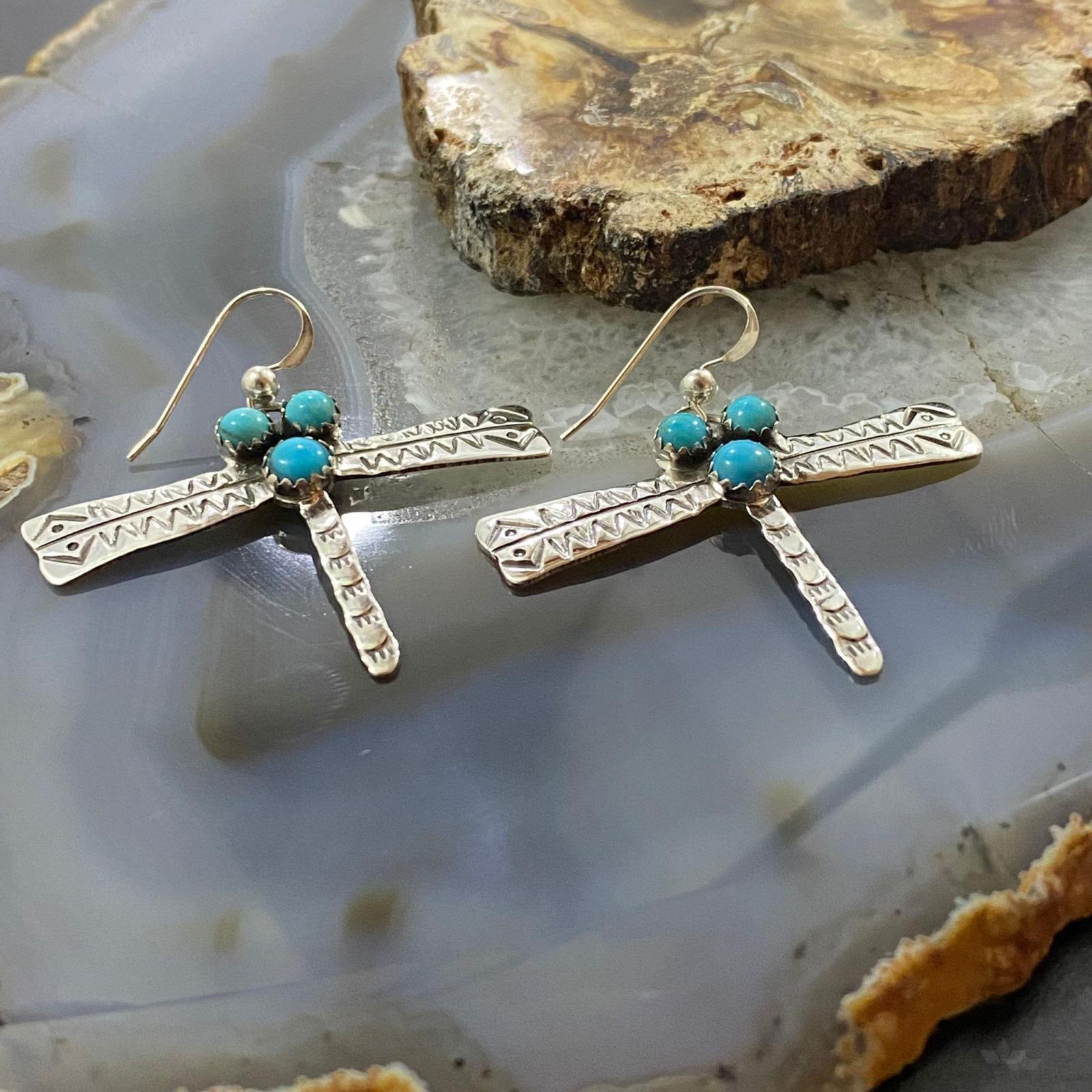 Brad Panteah Sterling Dragonfly w/3 Sleeping Beauty Turquoise Dangle Earrings For Women
