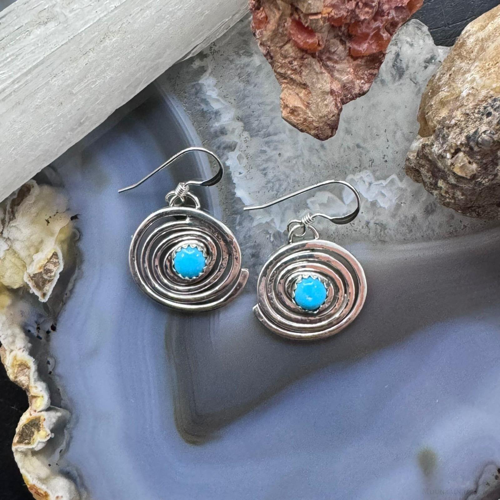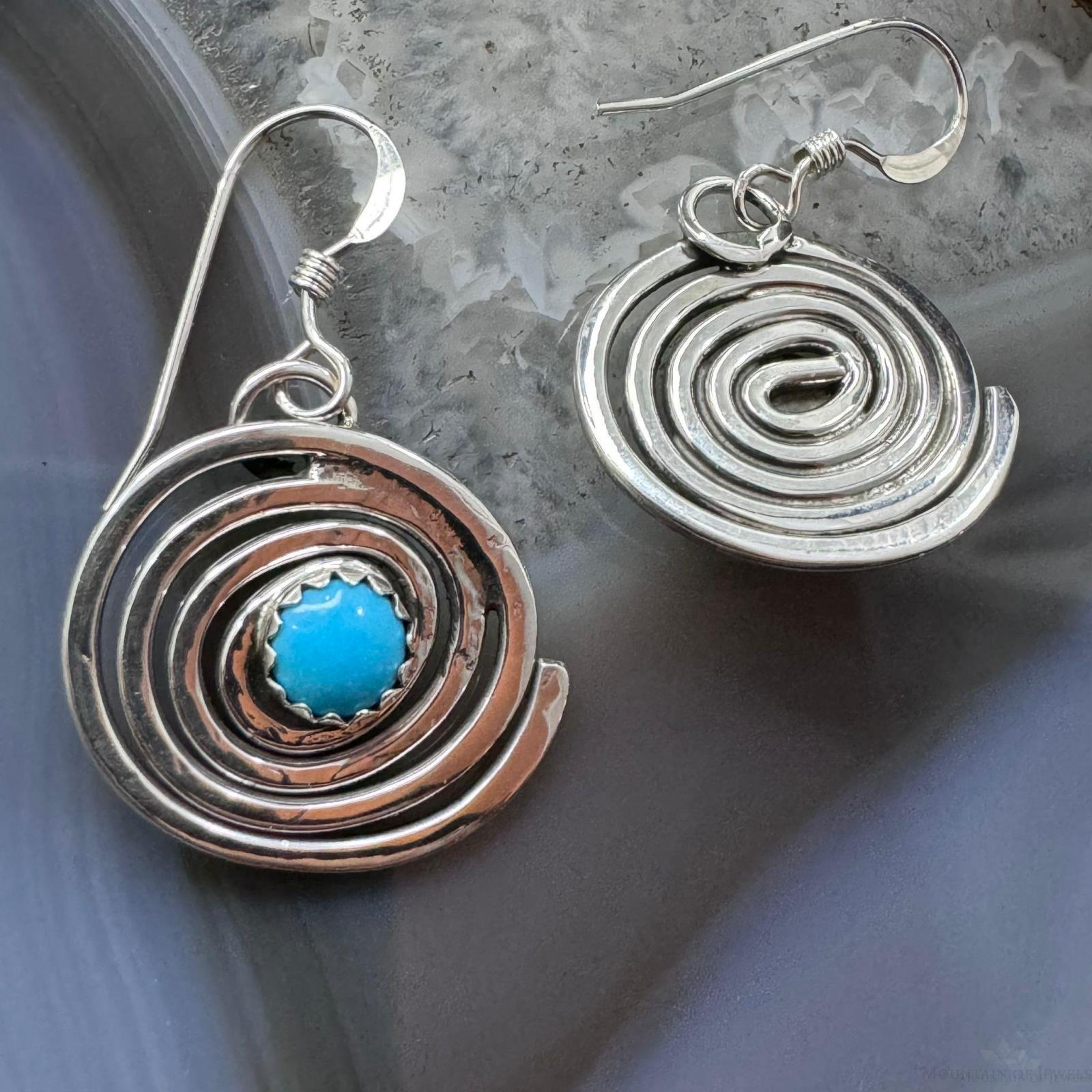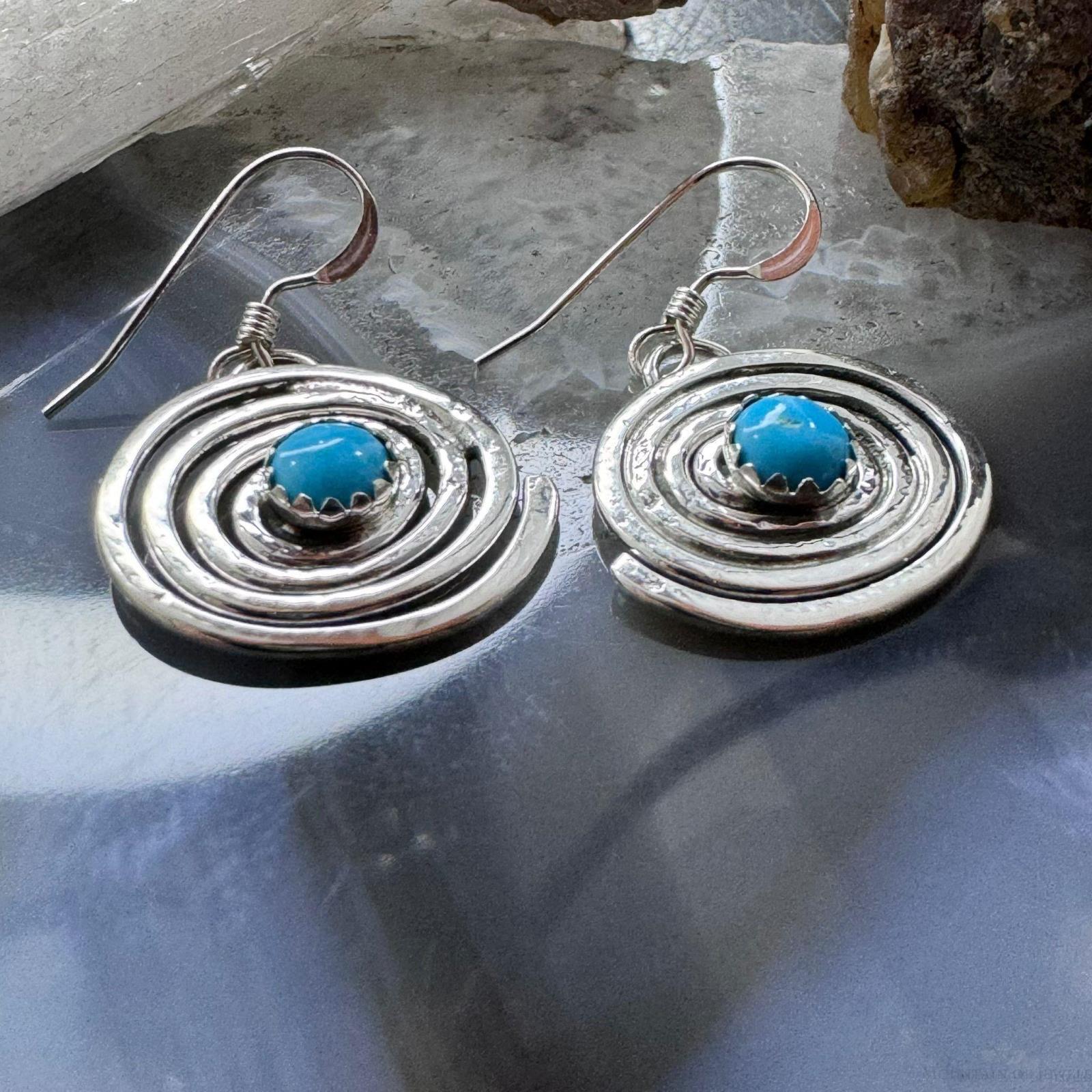 Brad Panteah Sterling Silver Circle of Life Turquoise Dangle Earrings For Women