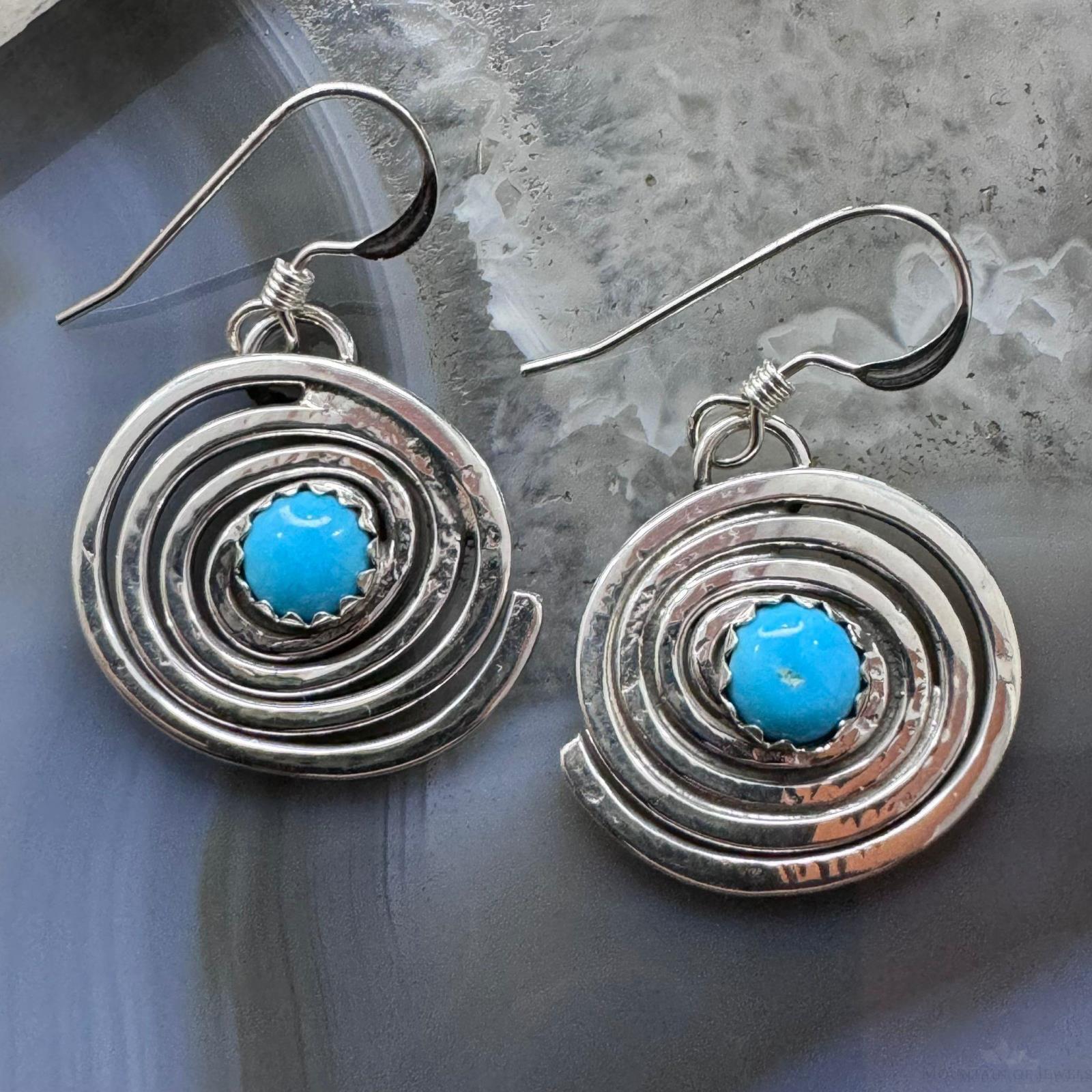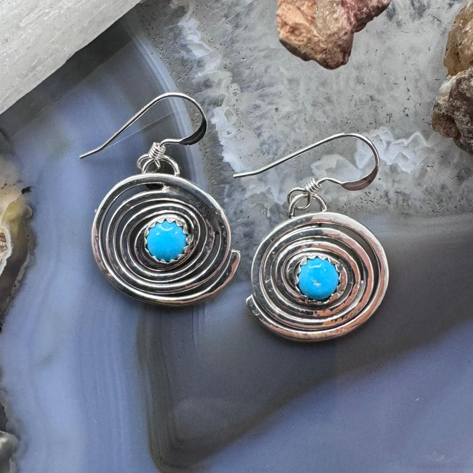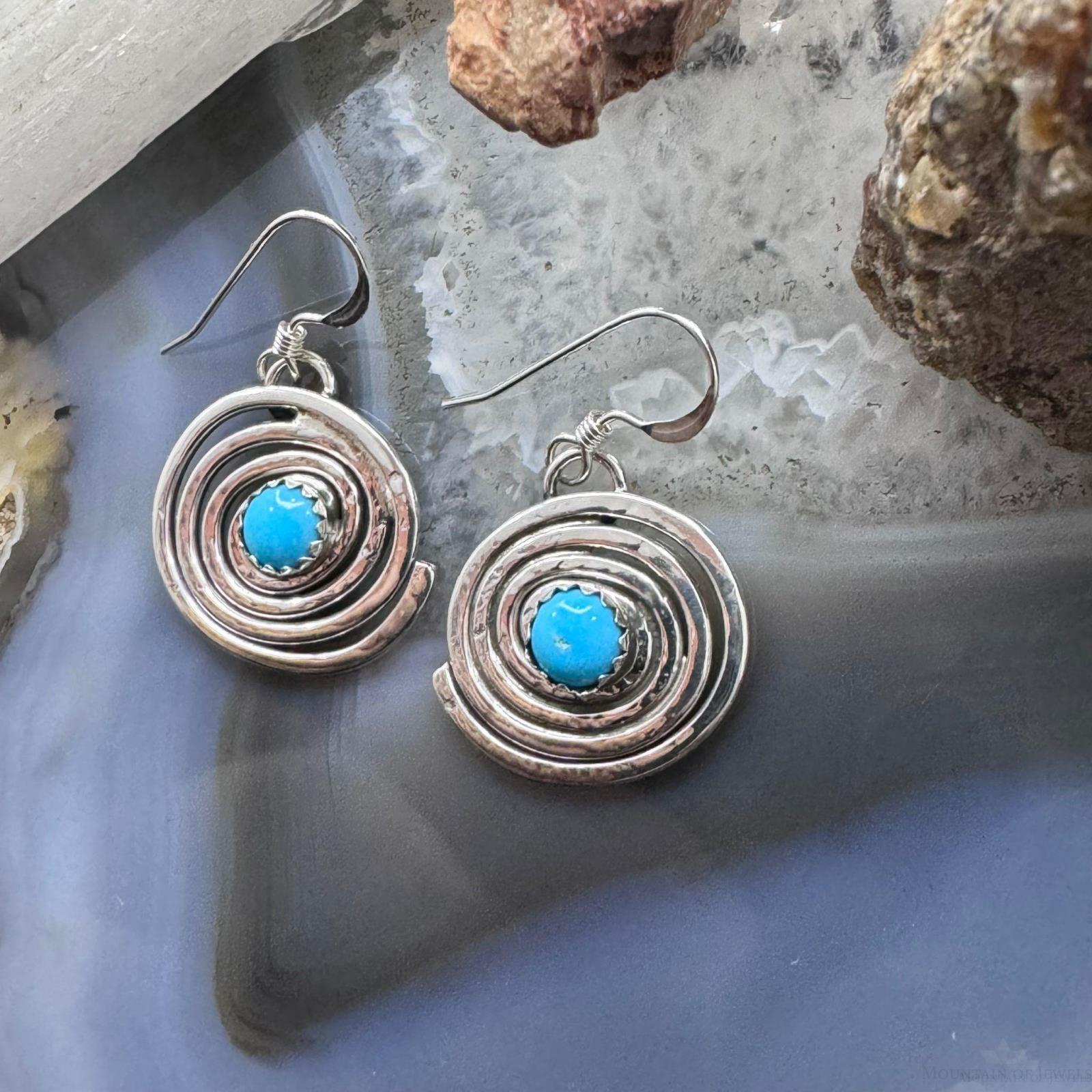 Brad Panteah Sterling Silver Circle of Life Turquoise Dangle Earrings For Women