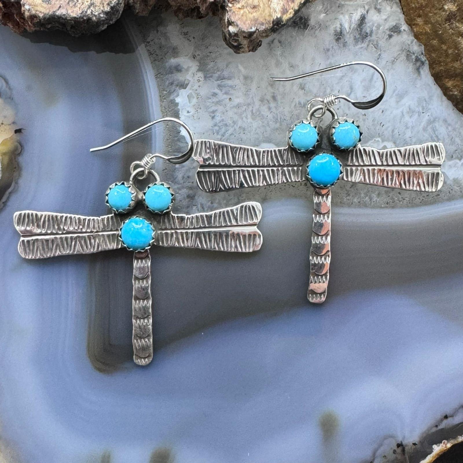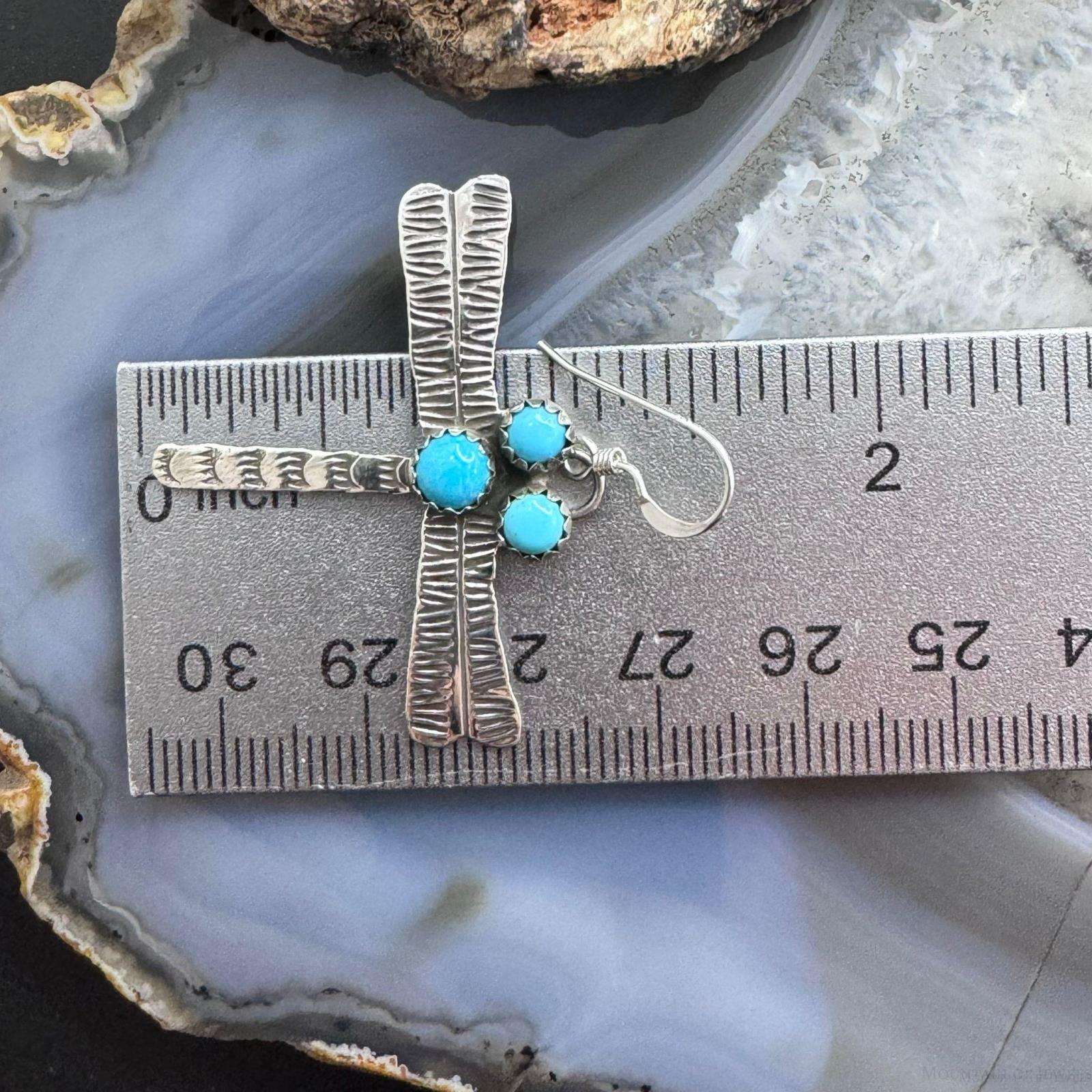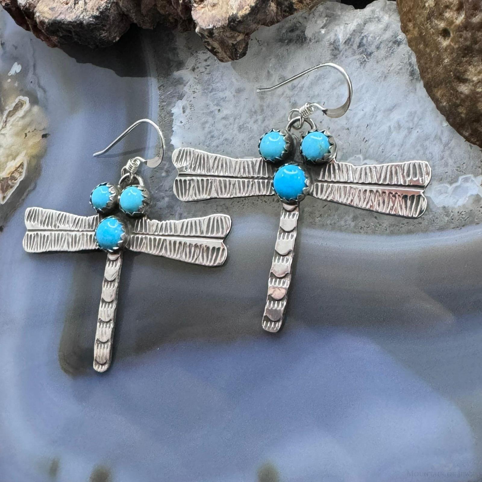 Brad Panteah Sterling Silver Dragonfly w/3 Turquoise Dangle Earrings For Women