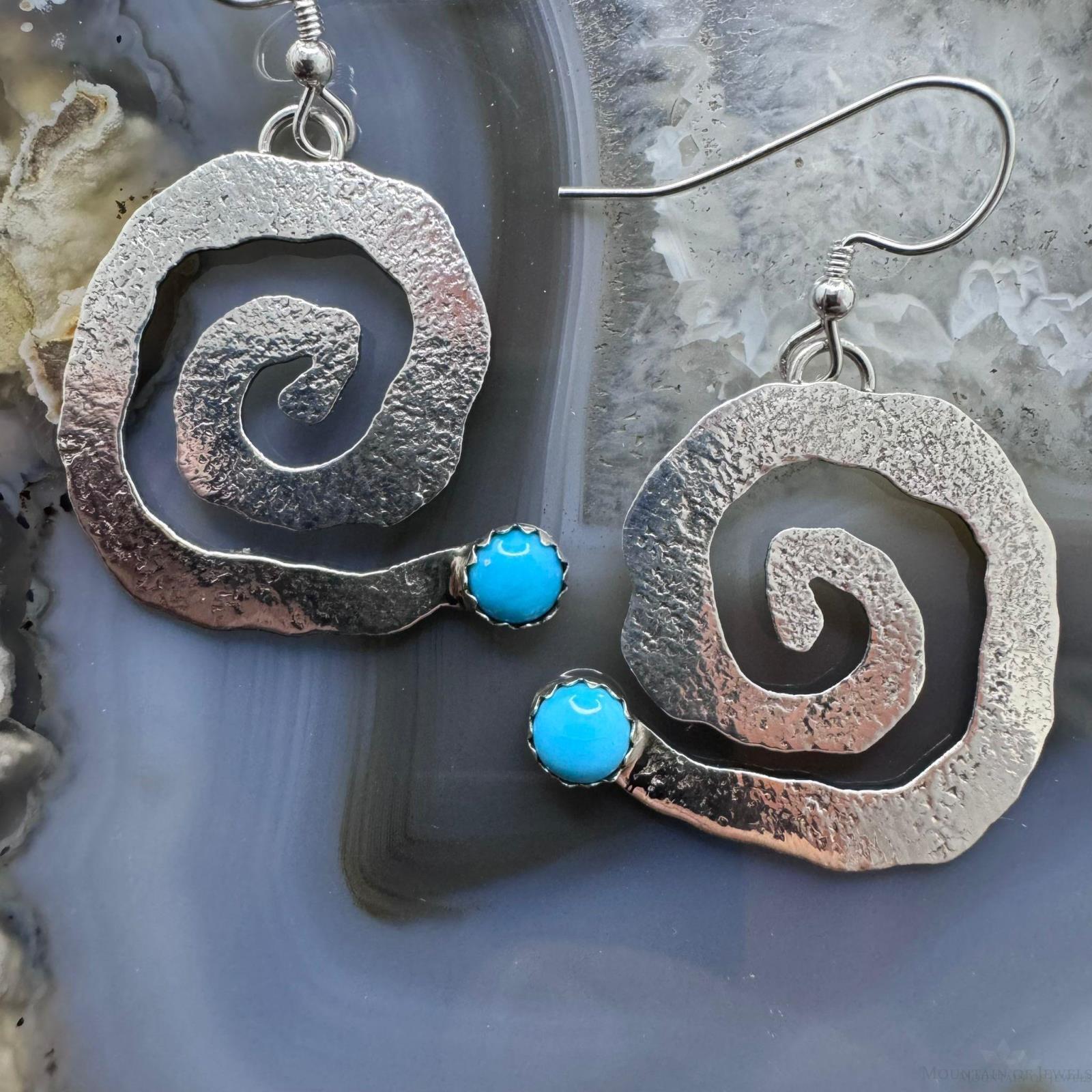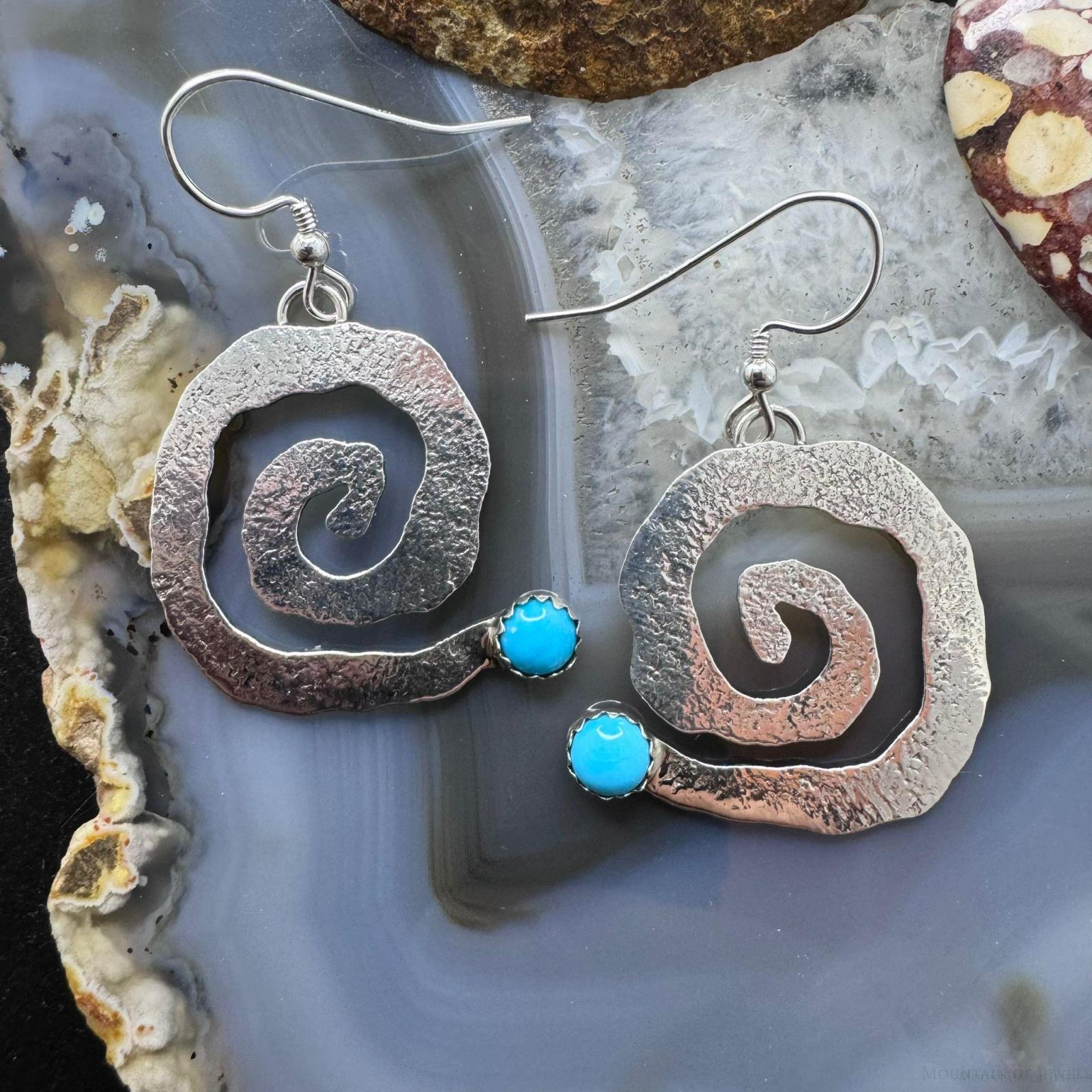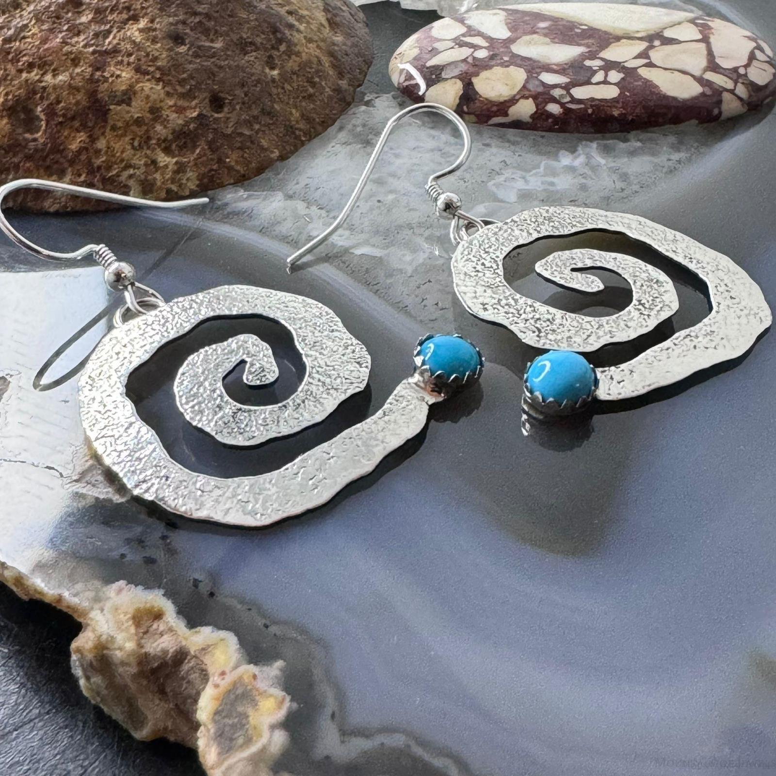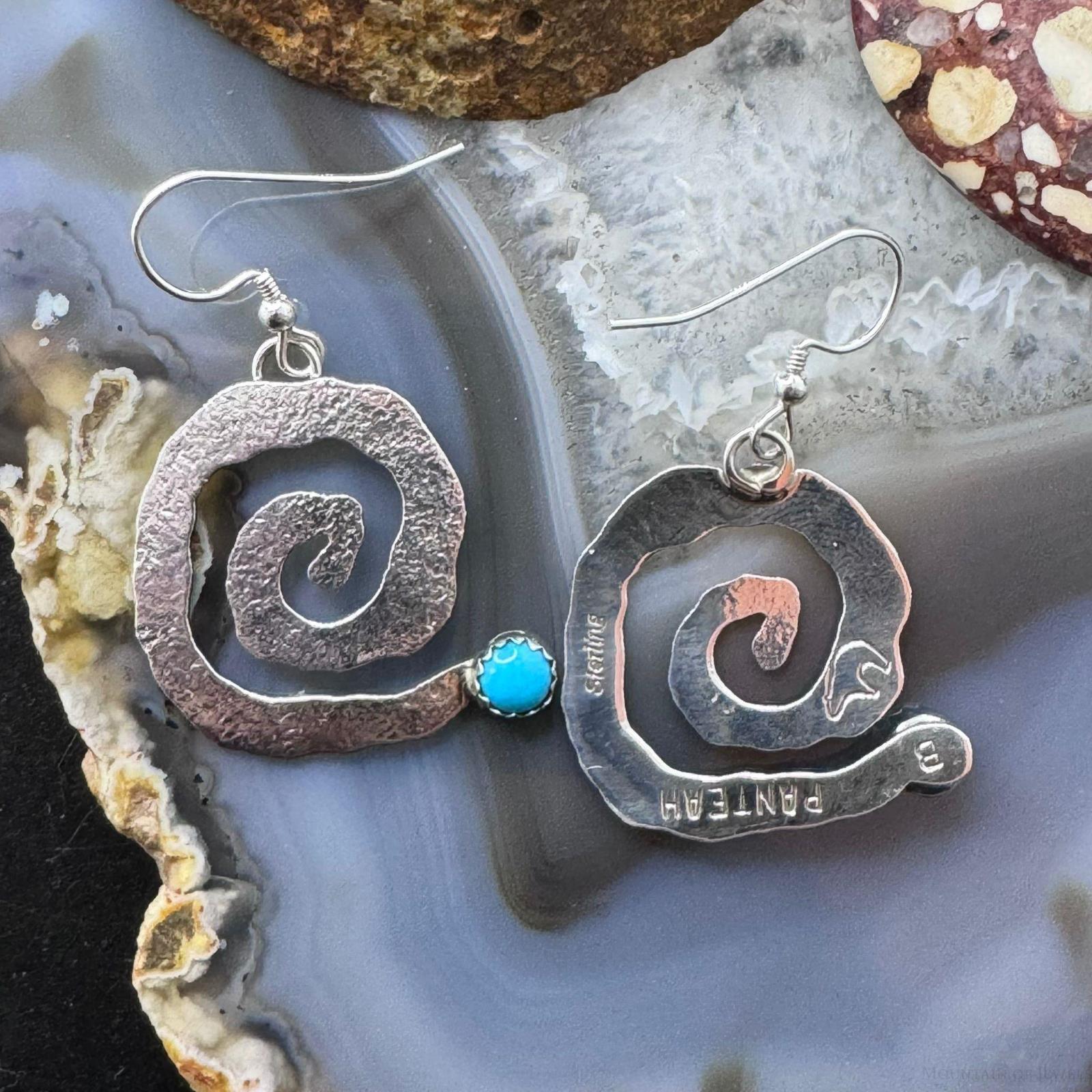 Brad Panteah Sterling Silver Turquoise Hammered Spiral Dangle Earrings For Women