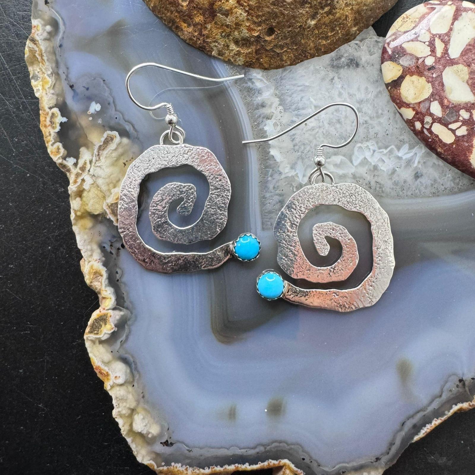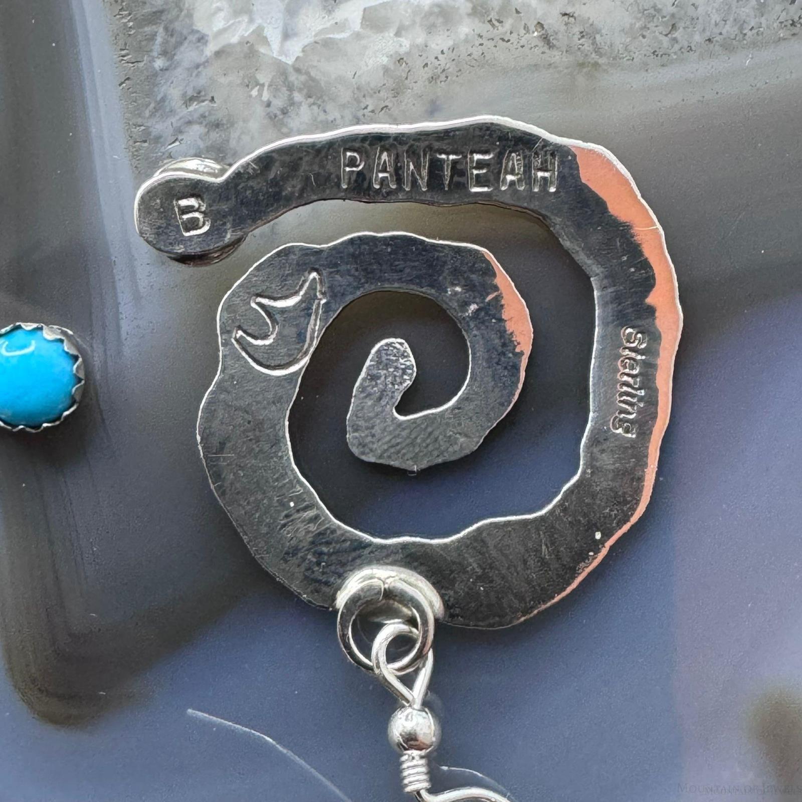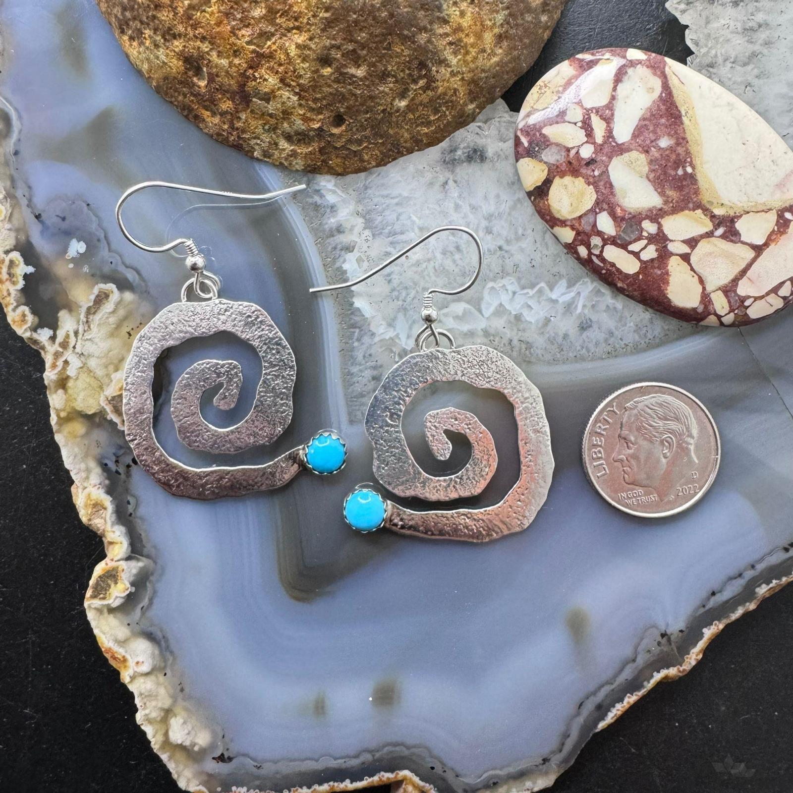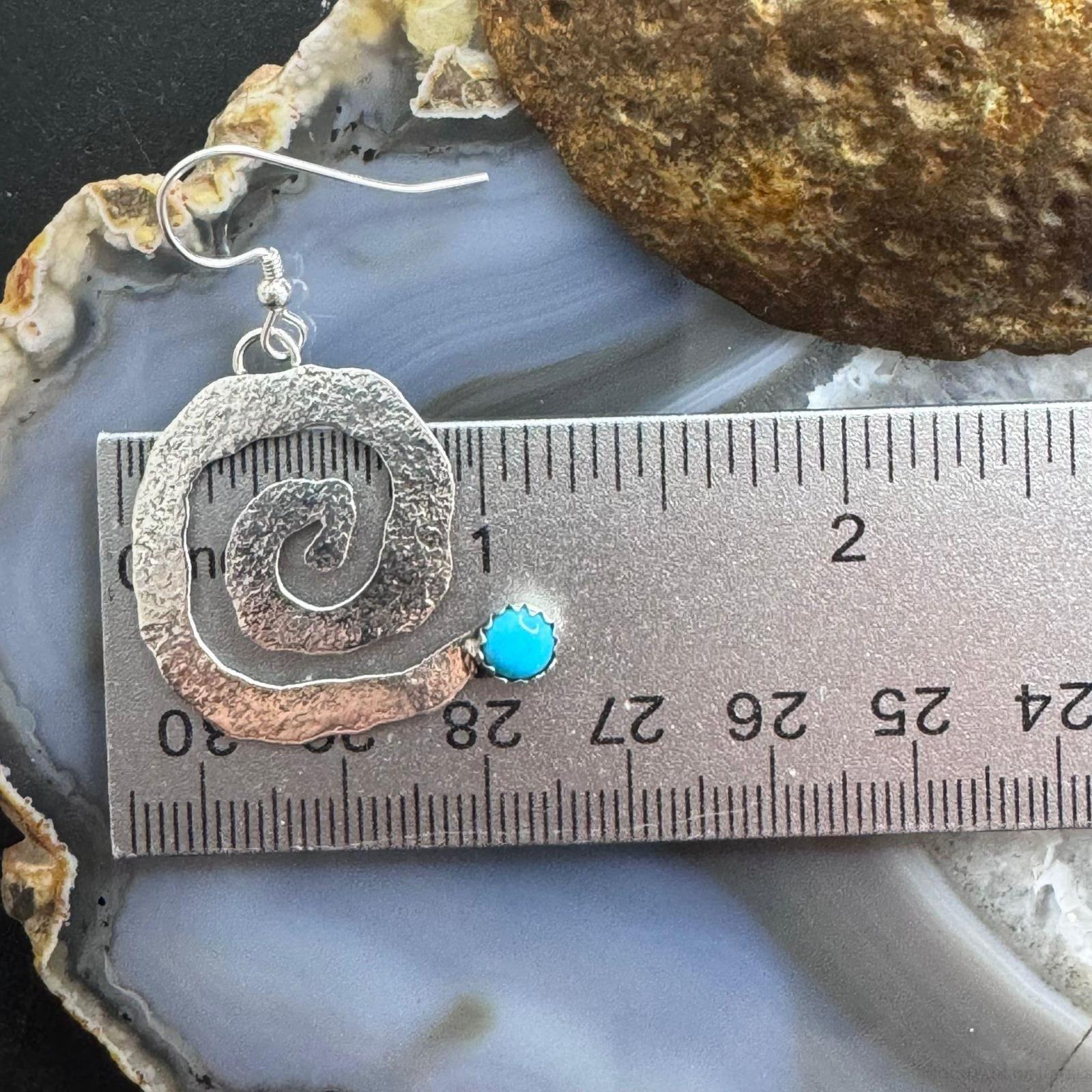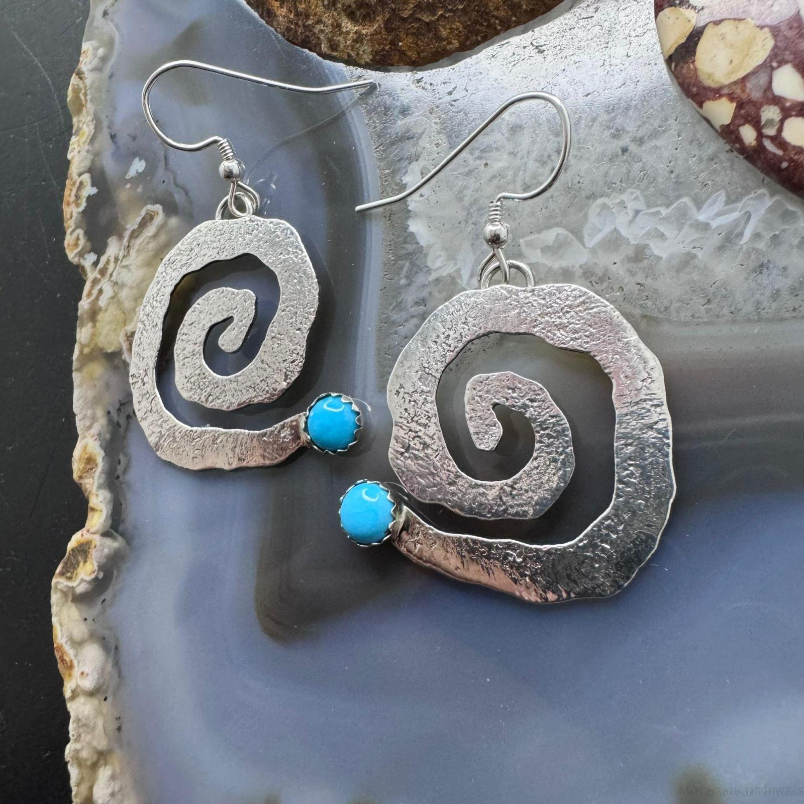 Brad Panteah Sterling Silver Turquoise Hammered Spiral Dangle Earrings For Women