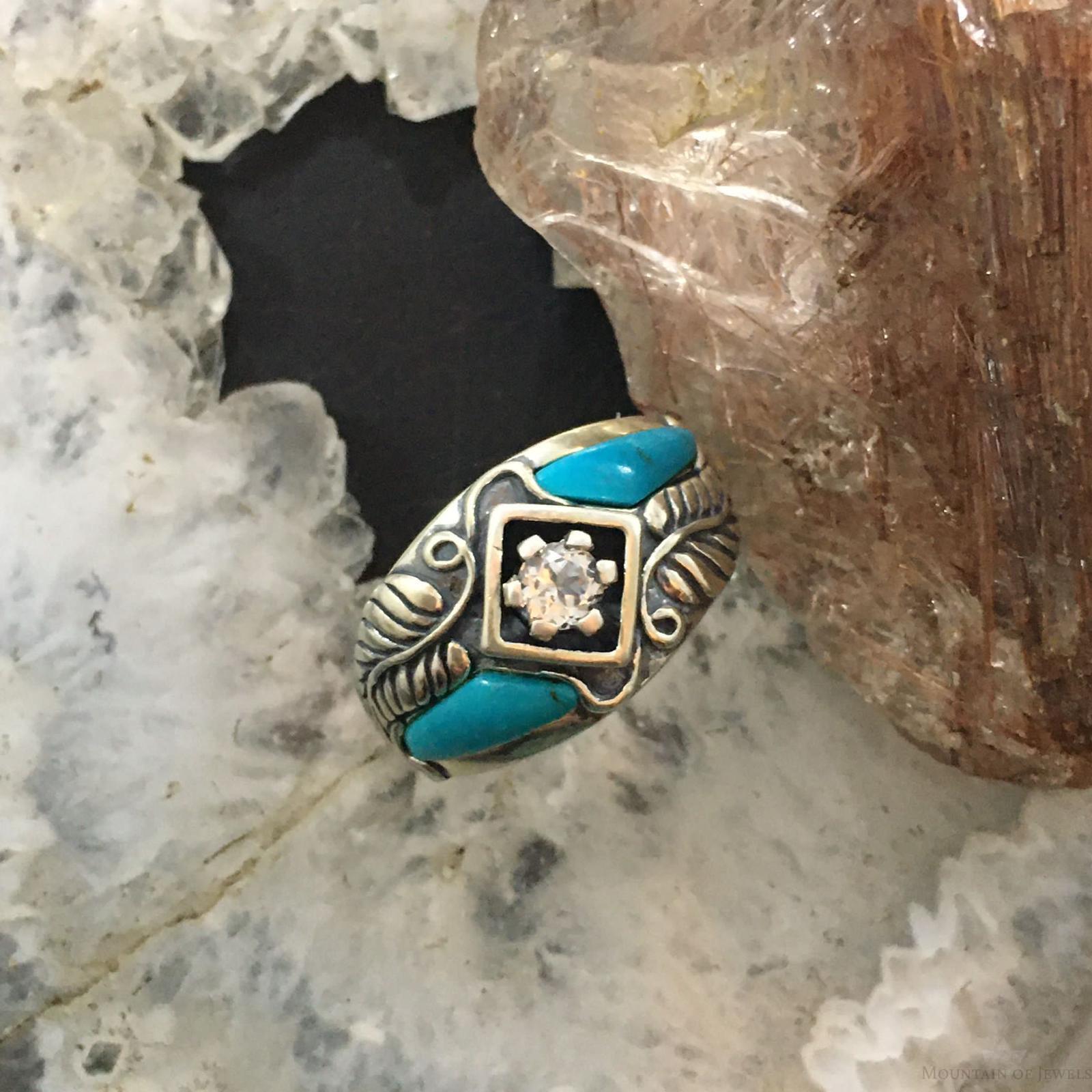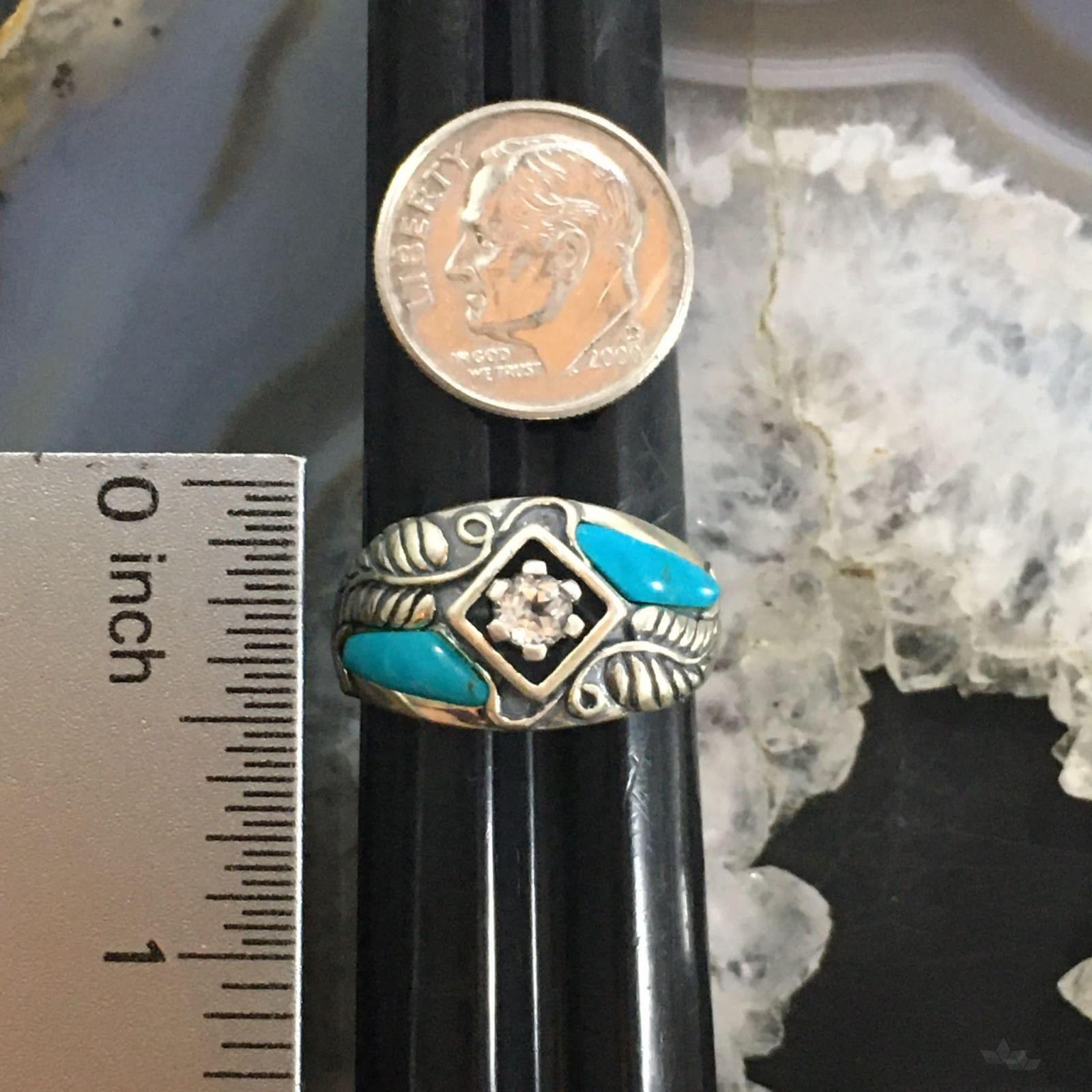 Carolyn Pollack Southwestern Style Sterling Silver Turquoise & White Topaz Decorated Ring