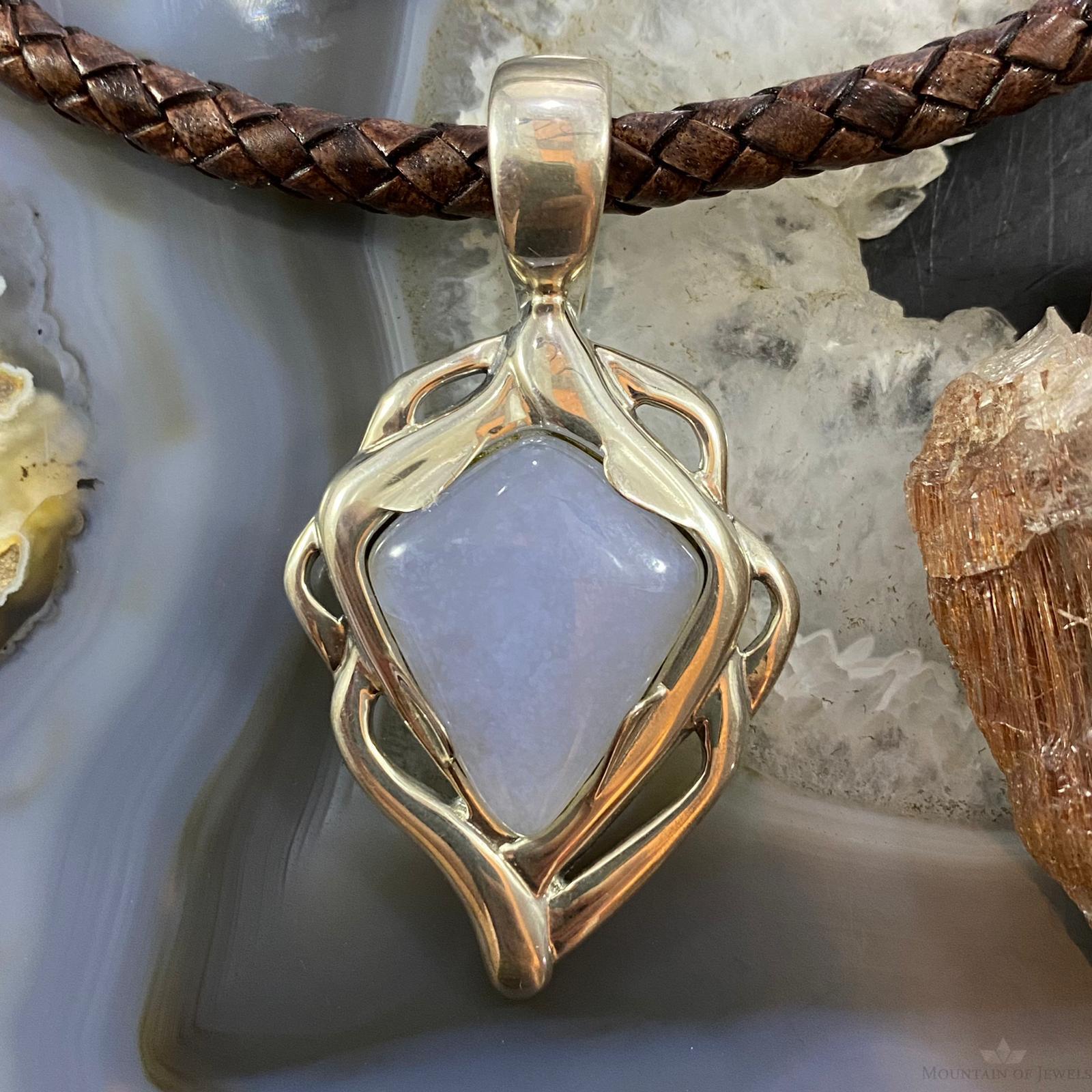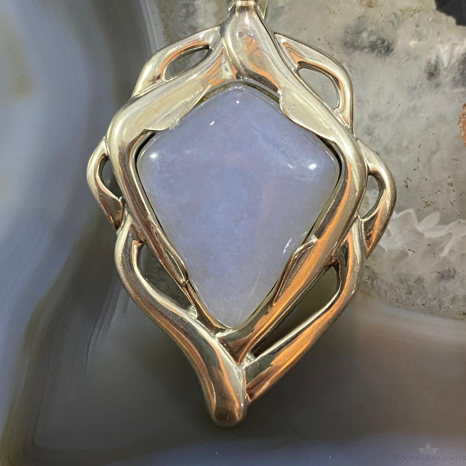 Carolyn Pollack Southwestern Style Sterling Silver Blue Lace Agate Decorated Pendant For Women