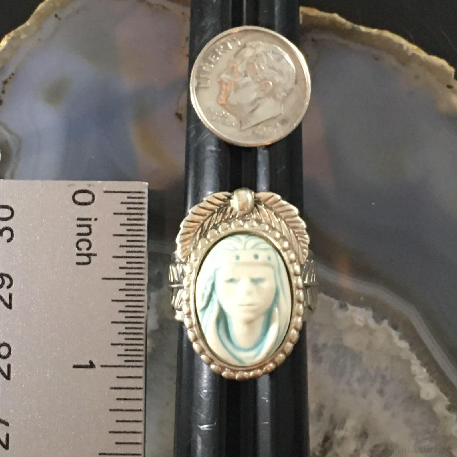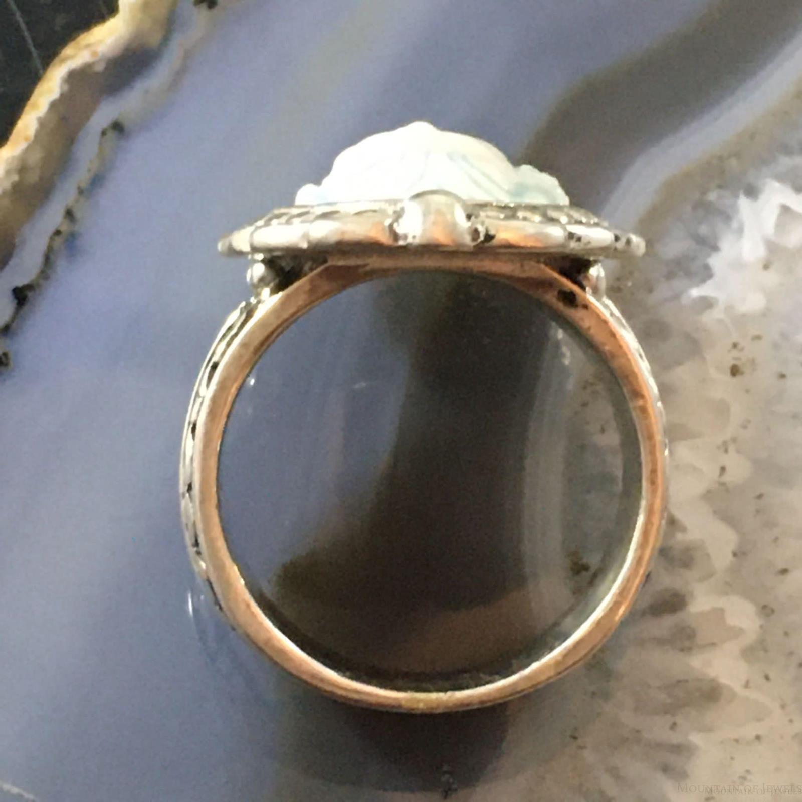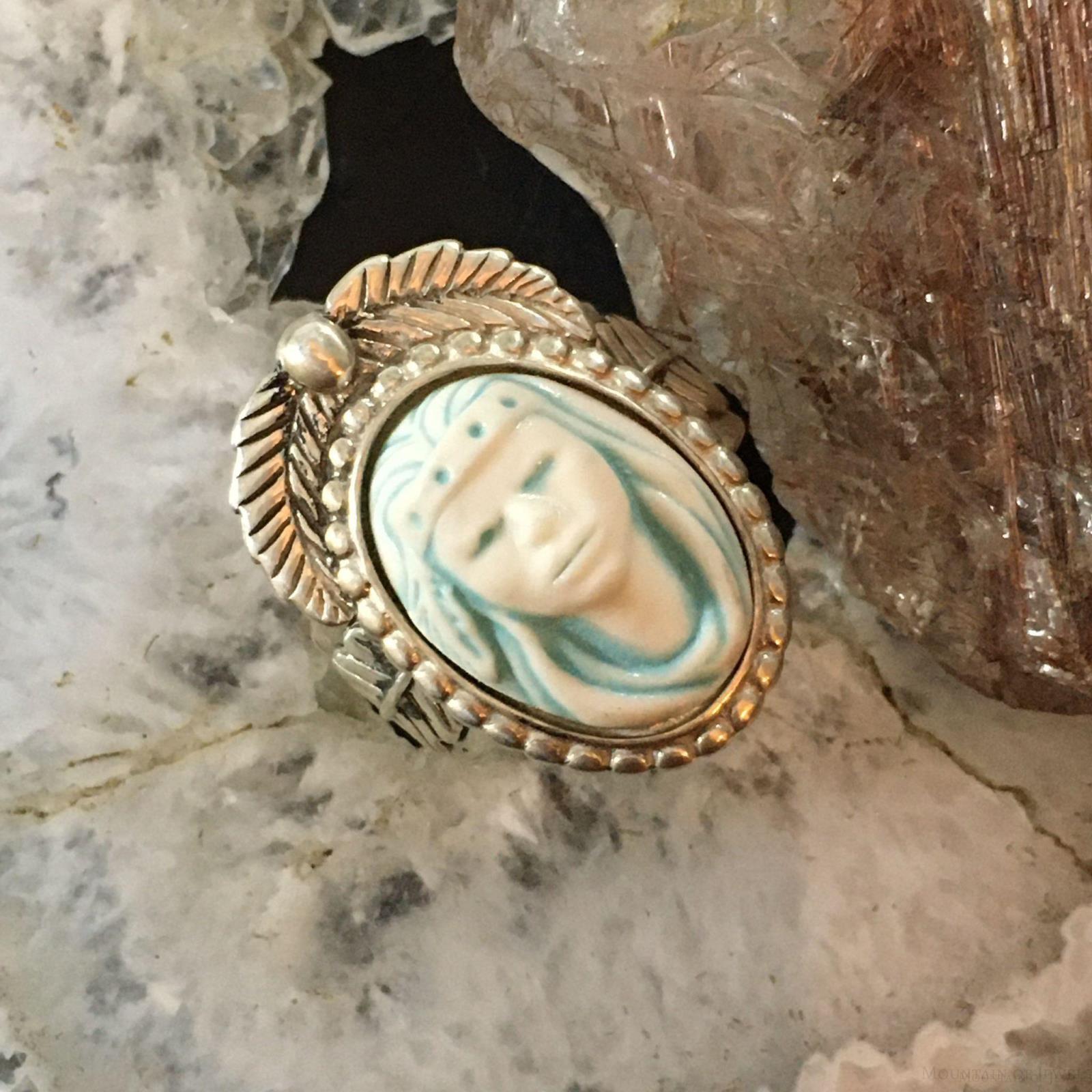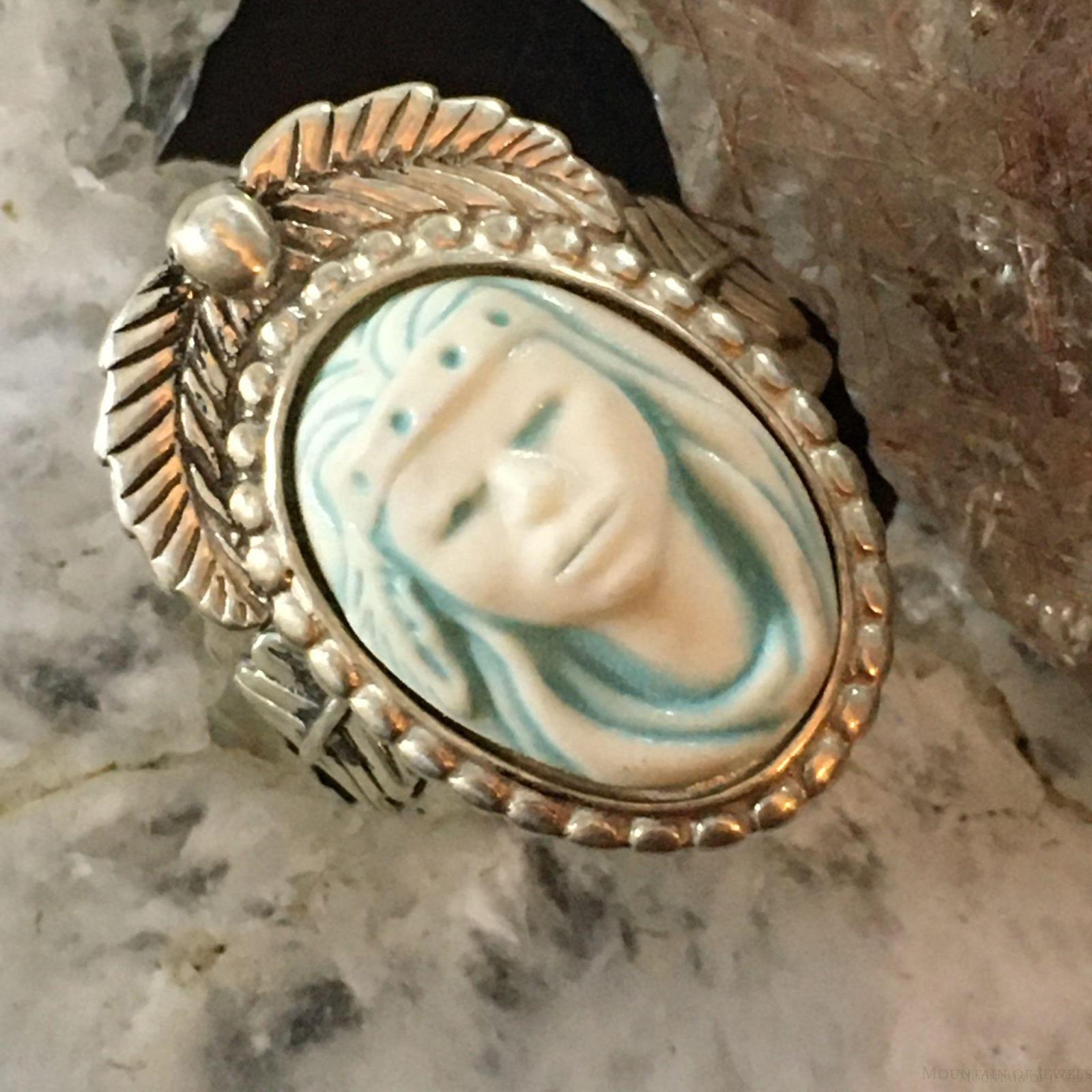 Intricately Beautiful Carolyn Pollack Vintage Southwestern Style Sterling Silver Porcelain Maiden Cameo Decorated Ring For Women.