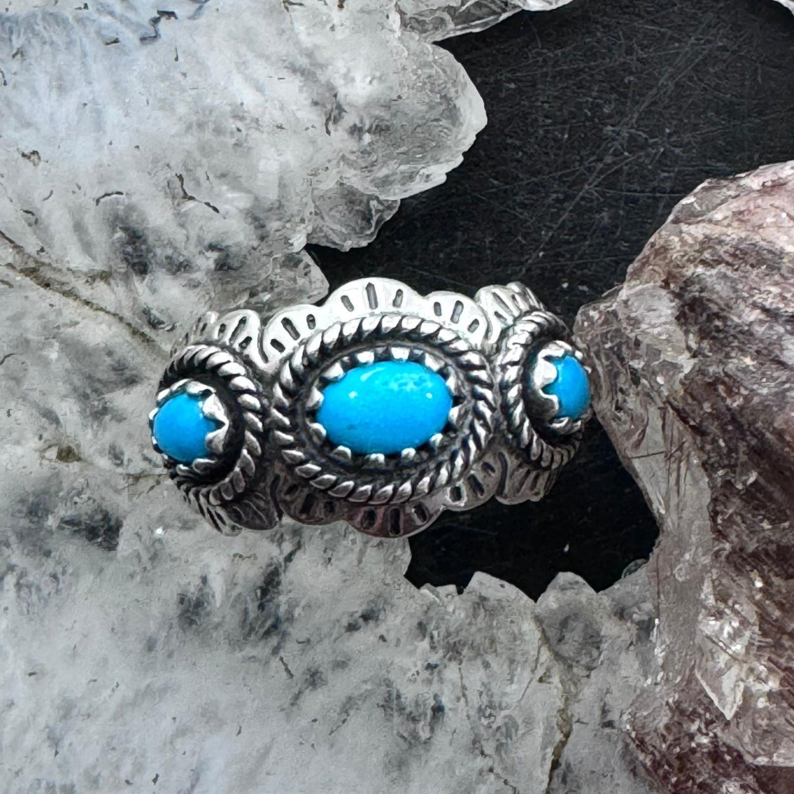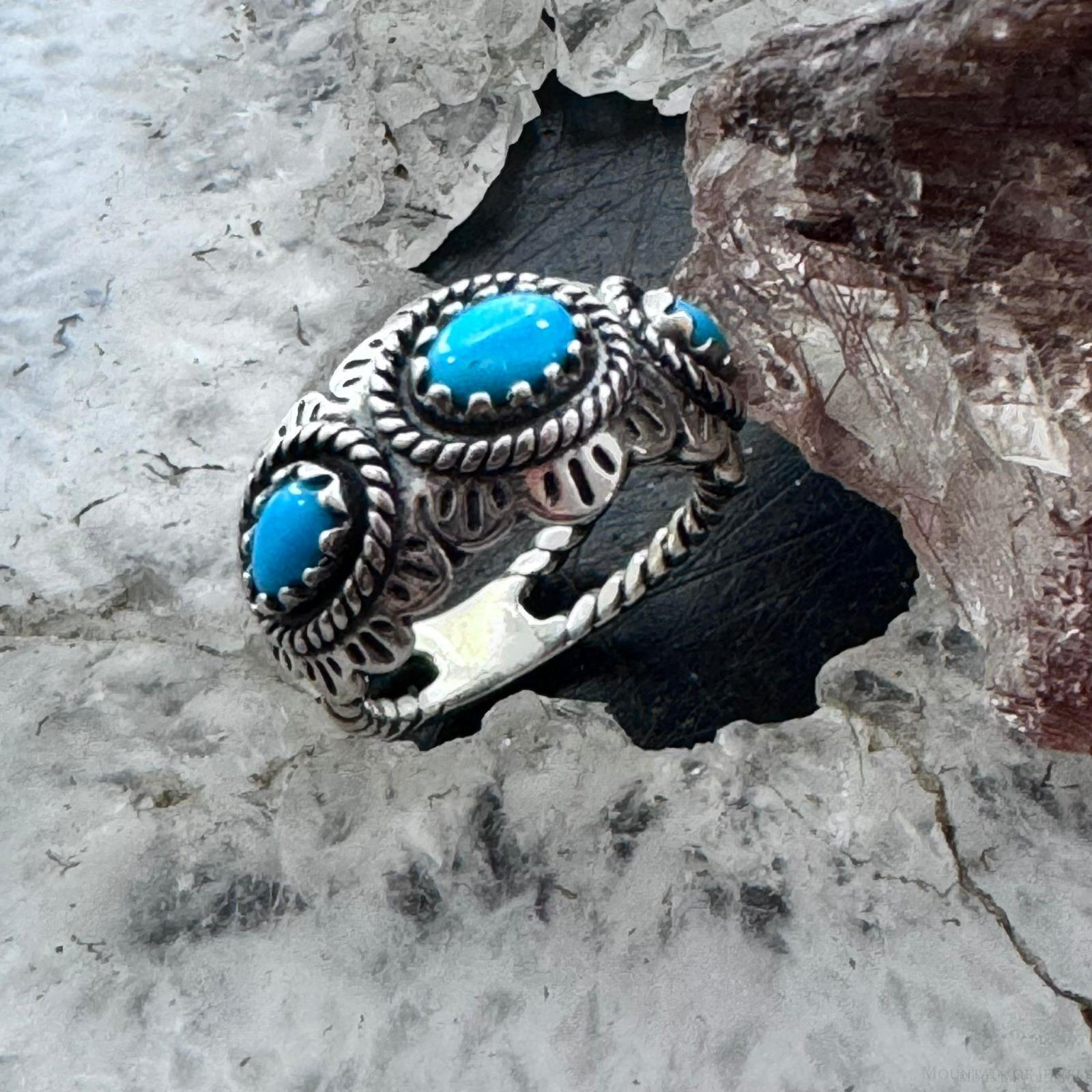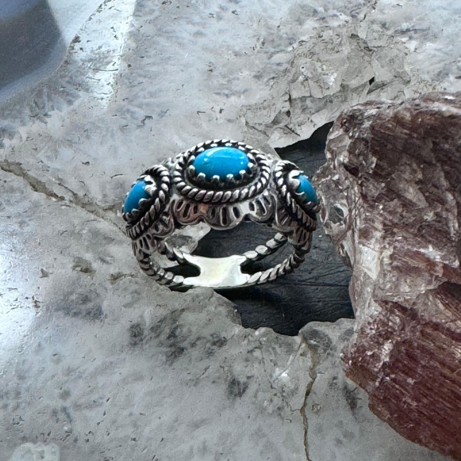 Carolyn Pollack Sterling Silver 3 Sleeping Beauty Turquoise Ring Size 4.25 For Women
