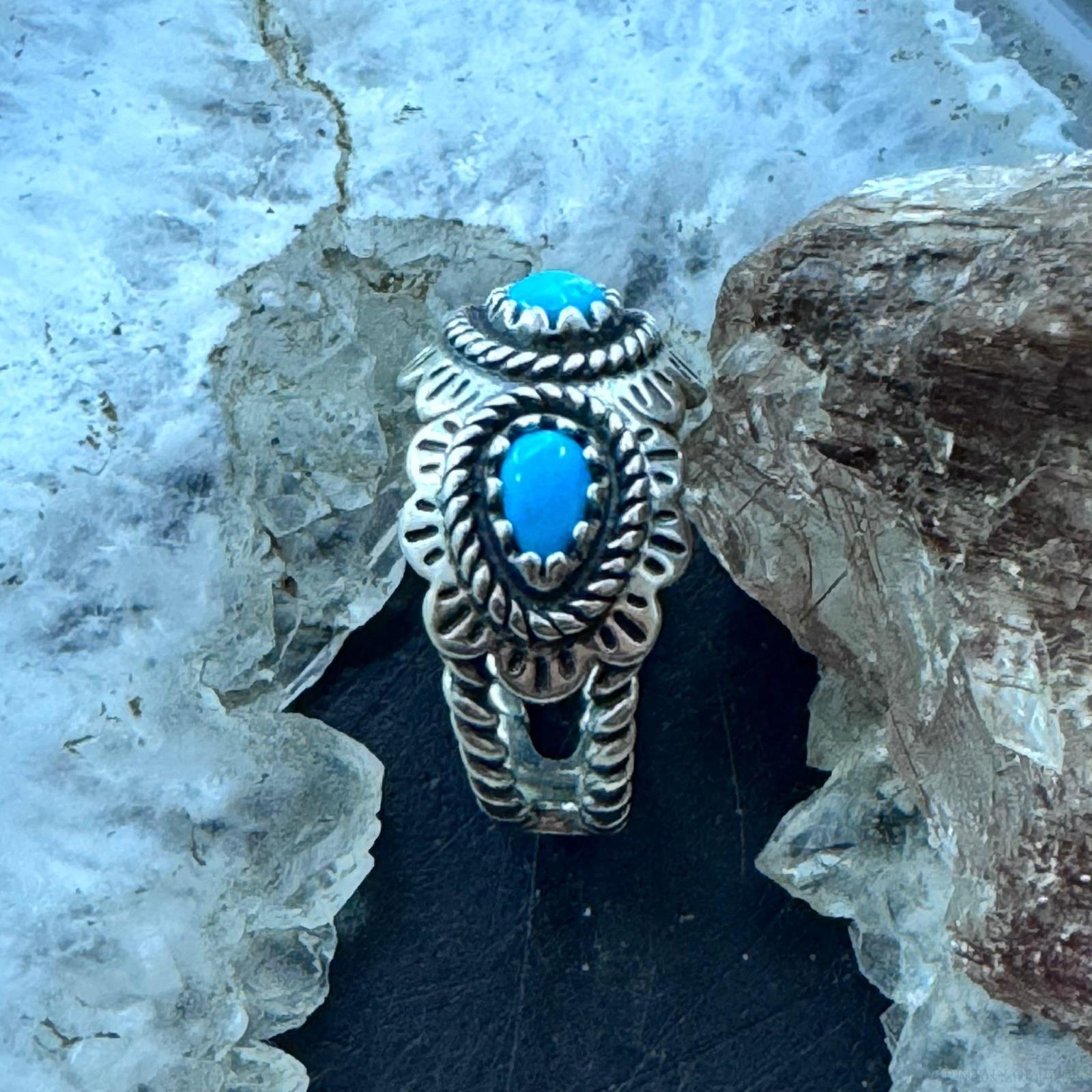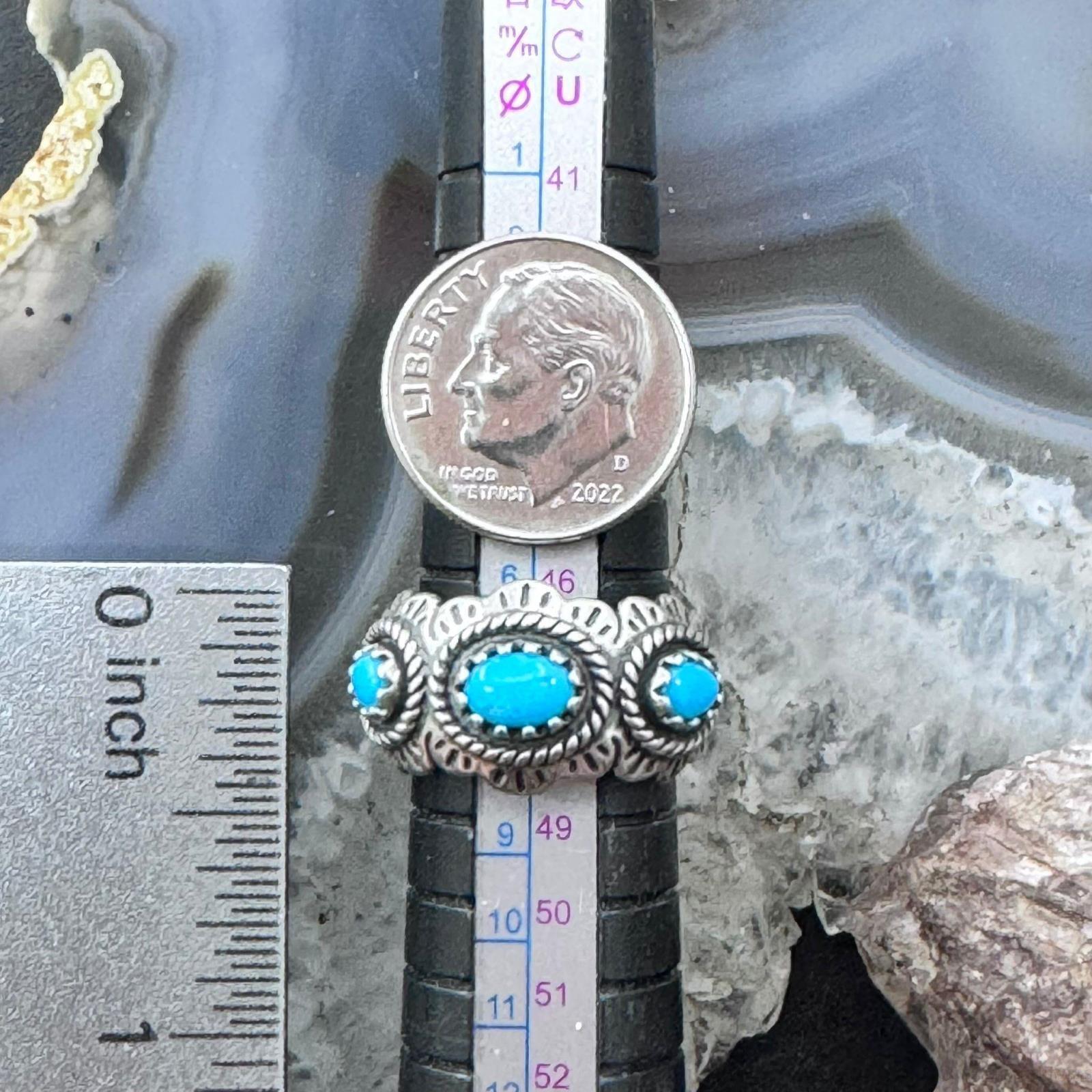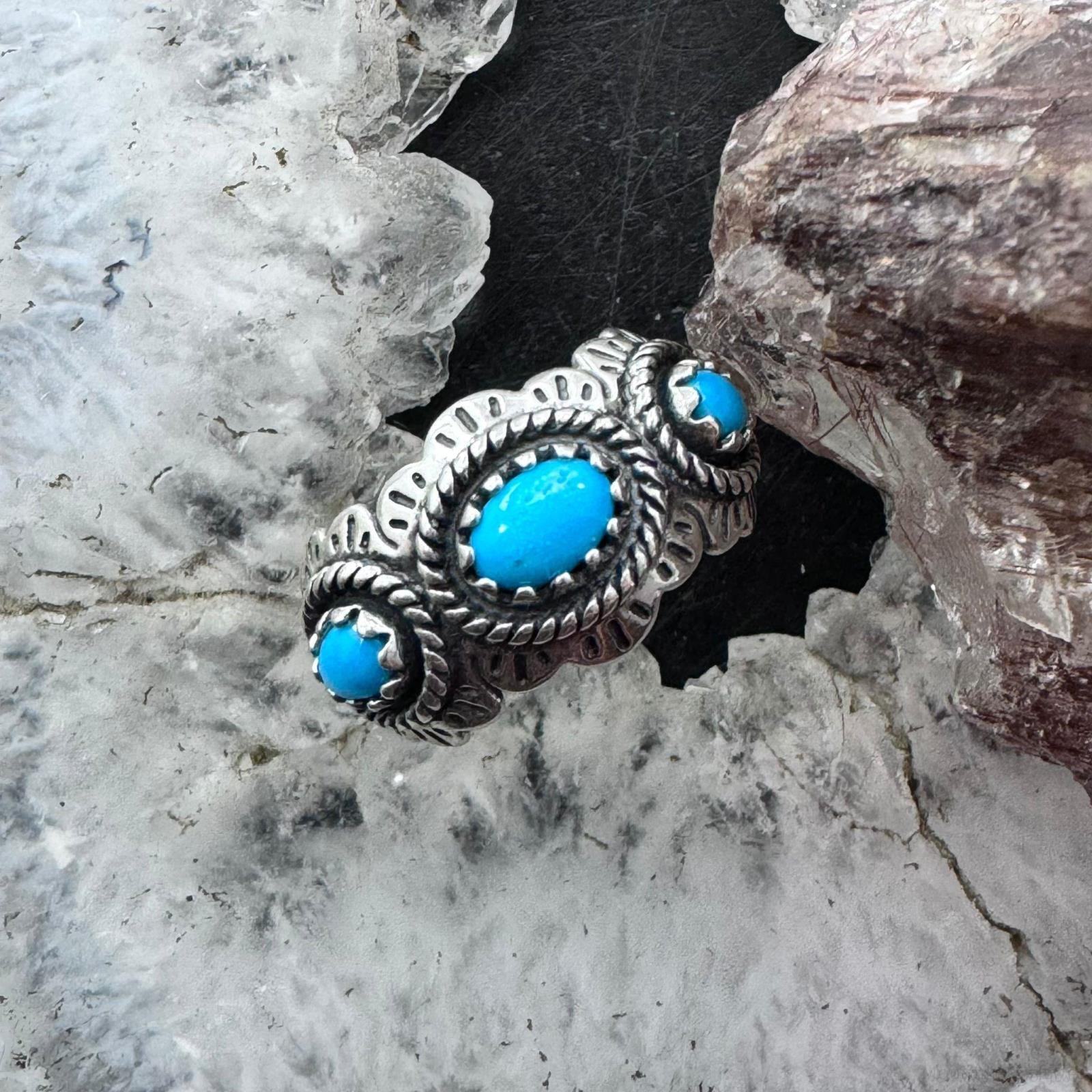 Carolyn Pollack Sterling Silver 3 Sleeping Beauty Turquoise Ring Size 4.25 For Women