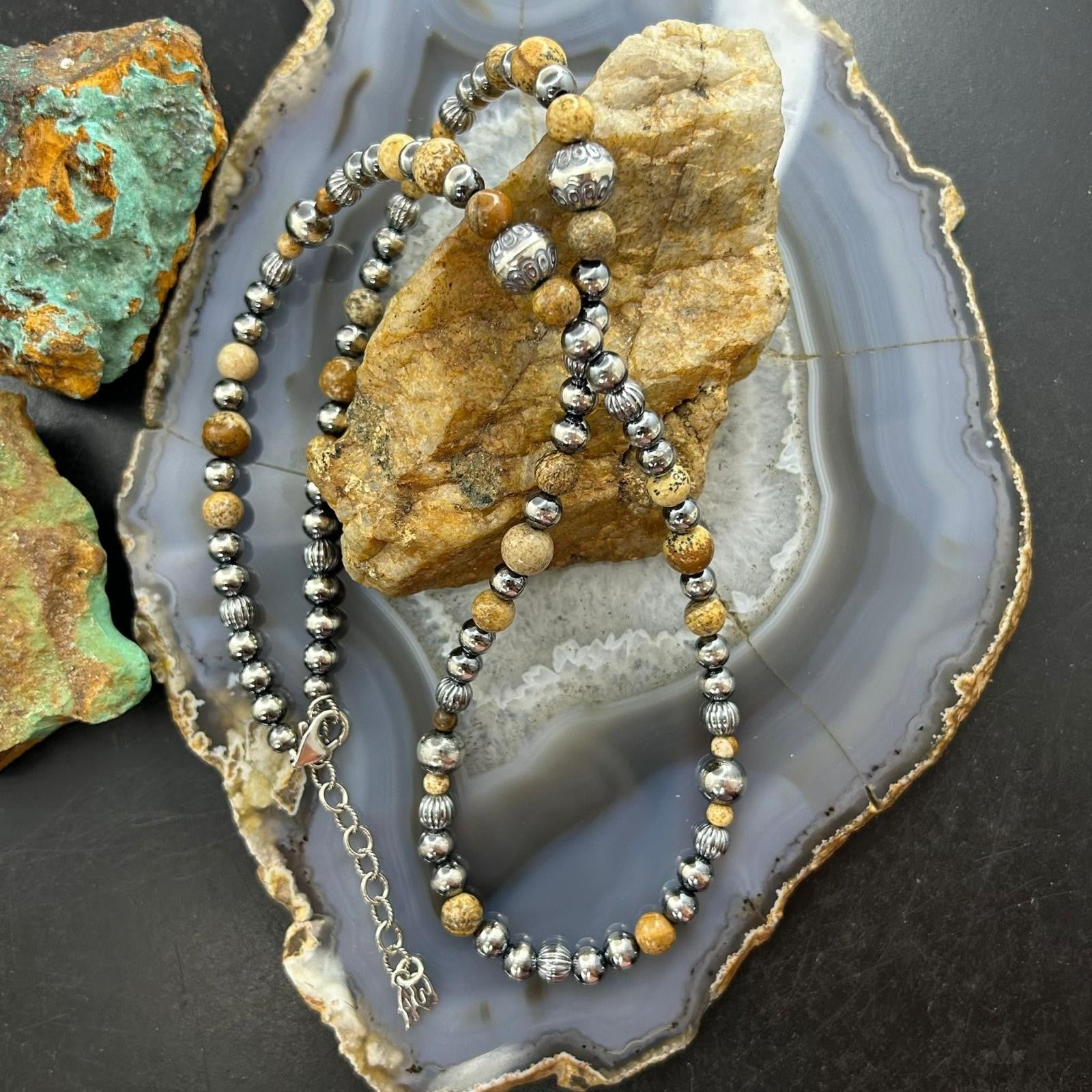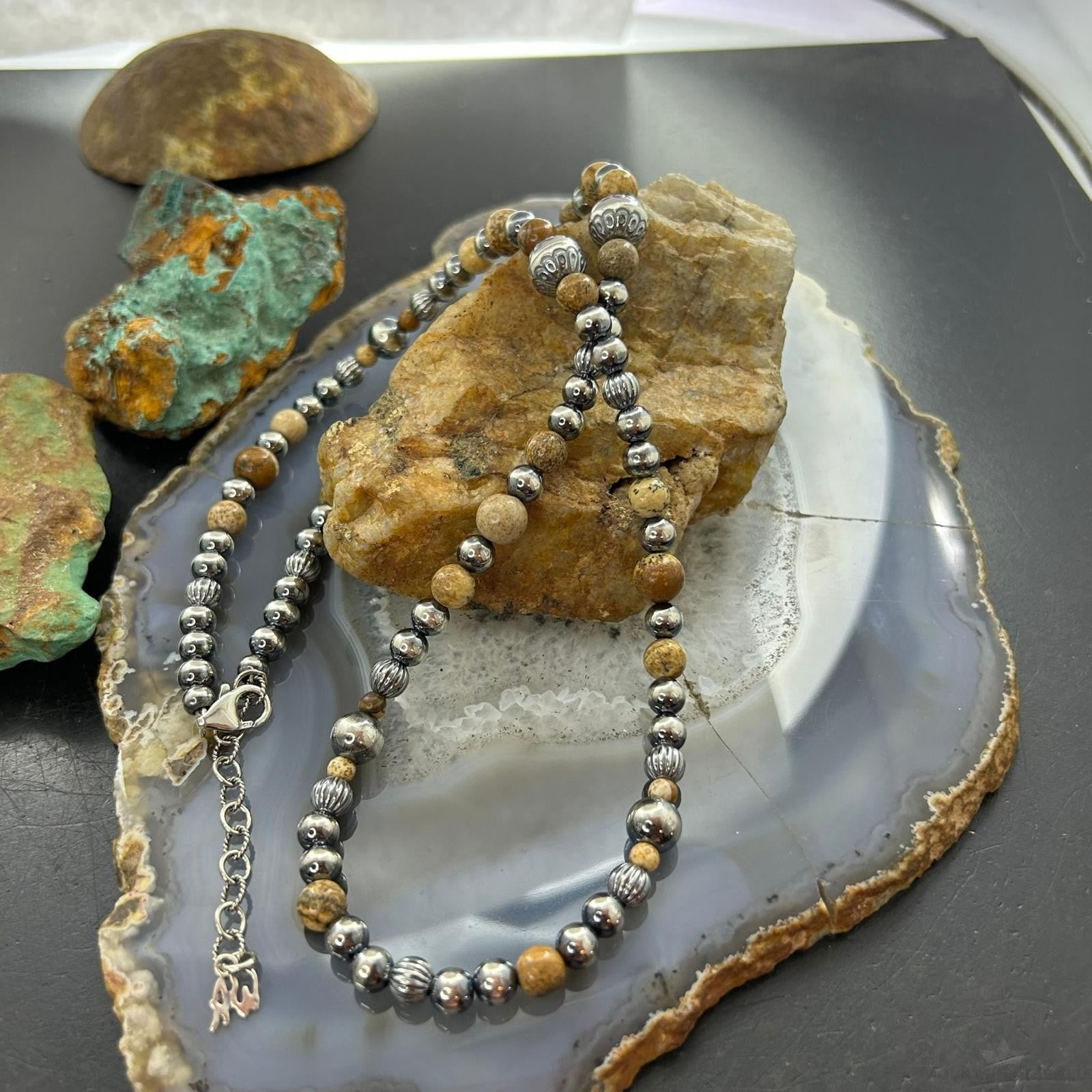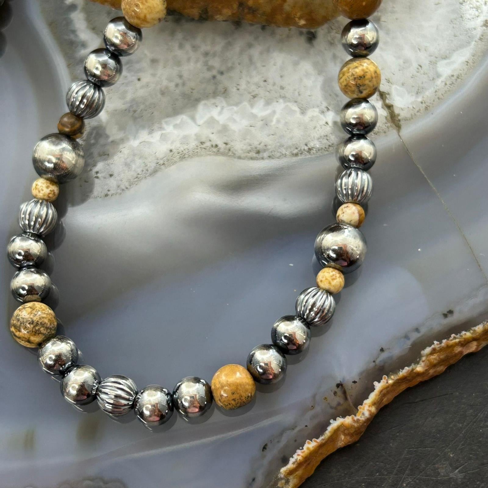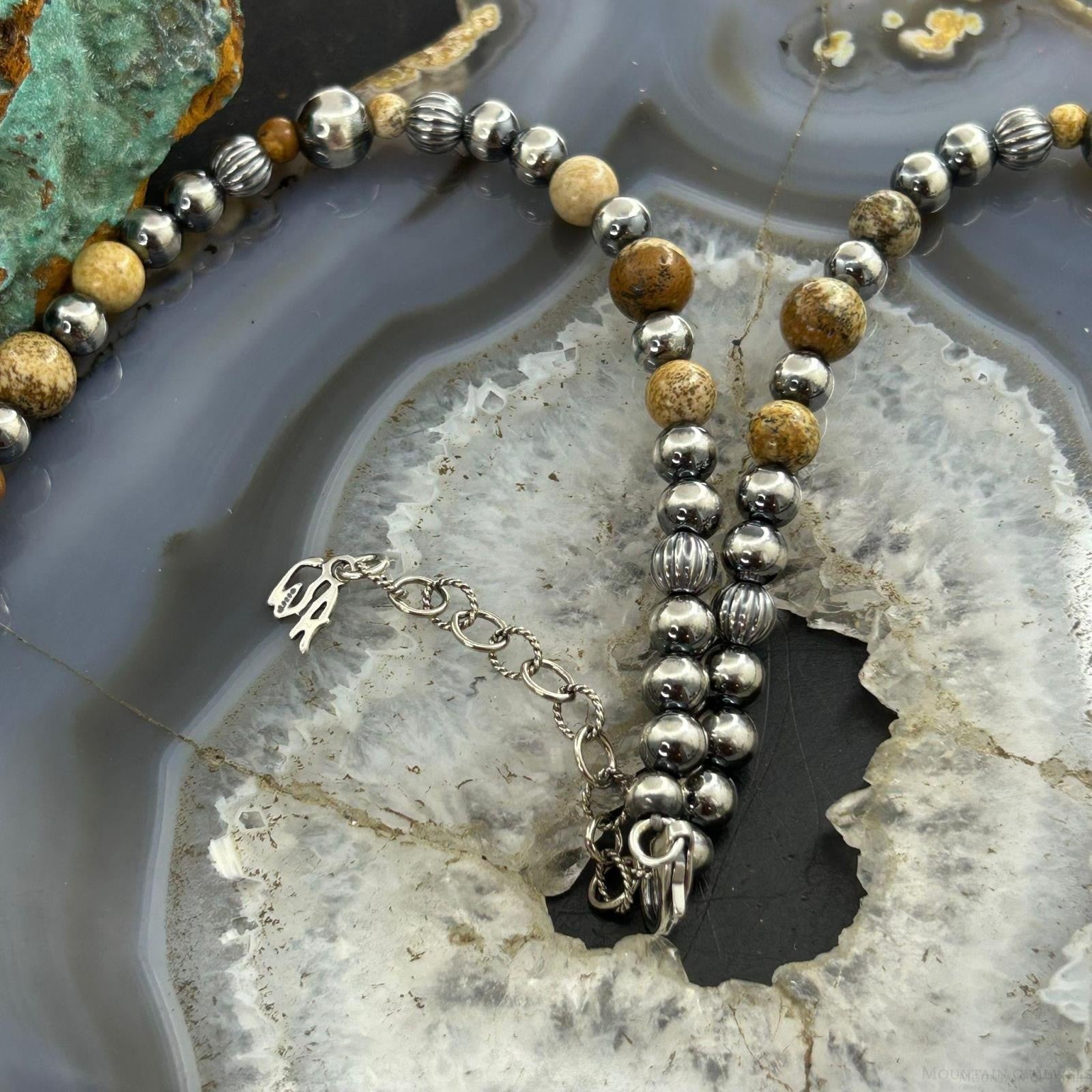 Carolyn Pollack Sterling Silver Decorated Beaded & Picture Jasper Necklace For Women